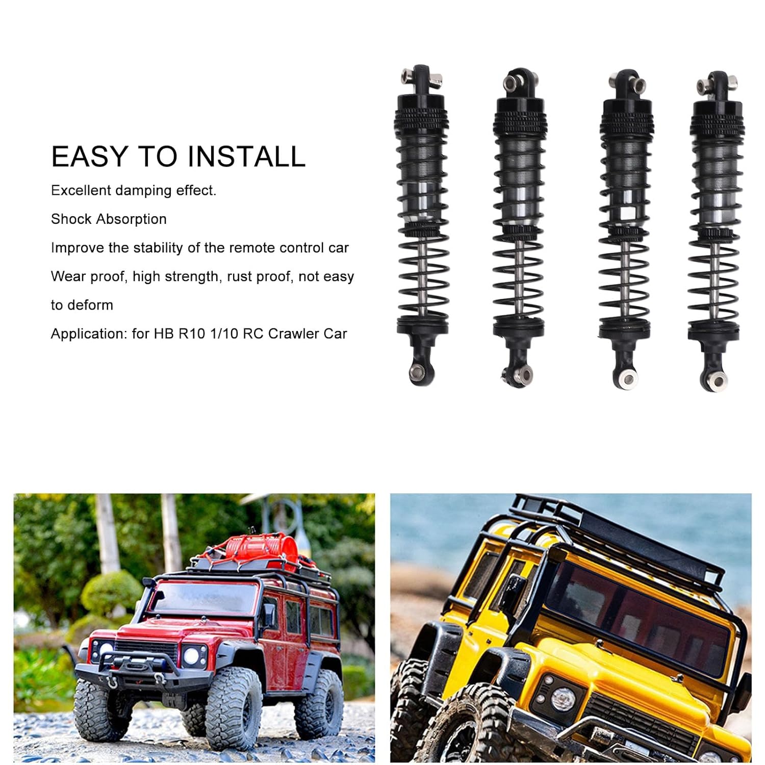 1. Costruzione robusta e durevole realizzata con materiali in ferro e lega di alluminio per un uso a lungo termine in varie condizioni stradali, che mantiene stabile l'auto RC e previene gli urti. 2. Le efficienti proprietà di assorbimento degli urti assorbono e disperdono rapidamente gli urti del terreno, fornendo un'esperienza di guida più fluida e confortevole per il veicolo RC. 3. Forte adattabilità per prestazioni eccellenti su strade di montagna irregolari, strade sterrate sconnesse o autostrade pianeggianti, fornendo aderenza stabile su diversi terreni. 4. La messa a punto precisa consente di regolare la durezza e l'altezza in base alle esigenze del ciclista e alle condizioni stradali, migliorando la flessibilità di manovrabilità per i diversi stili di guida. 5. Maggiore sicurezza con ammortizzatori in metallo che proteggono l'auto RC dagli urti e riducono il rischio di incidenti, consentendo un piacere di guida senza preoccupazioni.