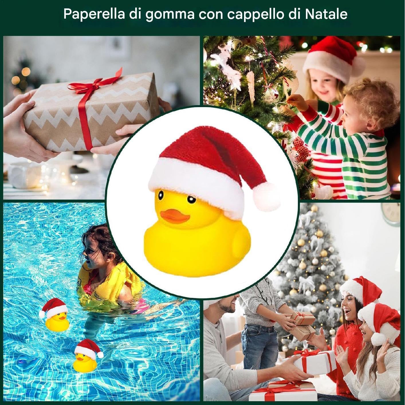 UTILIZZO A LUNGA DURATA: Con un po' di elasticità e finitura, le nostre paperelle di realizzate in materiale robusto sono ideali per un utilizzo a lungo termine. Le papere non sono solo robuste, ma offrono anche una sensazione sicura e divertente, promettendoti un'esperienza senza pari senza usura e sbiadimento FACILE DA MANEGGIARE: questa paperella di è realizzata appositamente con un design ergonomico che la rende facile da tenere e perfetta per le mani piccole. Si adatta comodamente a tasche, borse e contenitori, fornendo un compagno di giochi divertente e portatile per le avventure del bambino FACILE APPLICAZIONE: puoi attaccare ogni cappello di Natale sull', aggiungendo facilmente gioia festosa poiché la papera di e gli sono separati, è facile da montare e aggiunge un elemento di divertimento alla tua giornata AMPIA APPLICAZIONE: Rendi memorabile ogni celebrazione con le nostre eccellenti papere di . Queste anatre possono essere utilizzate come regali di vacanza per amici e e sono perfette per Natale, feste di compleanno, matrimoni, feste in piscina e altro ancora SCELTA PERFETTA: le nostre paperelle di sono un'aggiunta perfetta alla tua routine del bagno. Con la loro capacità di galleggiare sull'acqua, emettere suoni divertenti e sono disponibili in colori vivaci e interessanti, sono perfetti per portare felicità e risate nella tua giornata