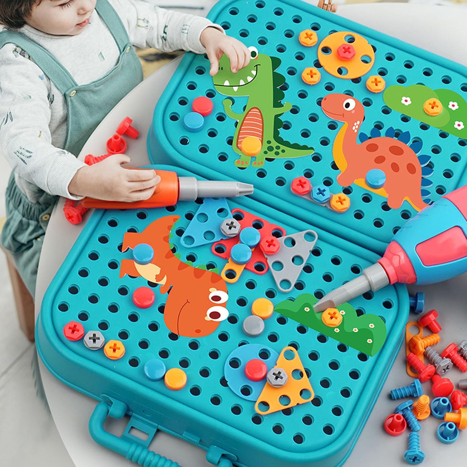 Per il gioco di simulazione: Caratteristica: stimola la creatività e l'immaginazione di tuo figlio. Questo giocattolo realistico consente l'apprendimento pratico e incoraggia le capacità di risoluzione dei problemi. PER SICURO E DUREVOLE: questa cassetta degli attrezzi è progettata pensando alla sicurezza. Offre forme di dinosauro ben realizzate per il gioco. Per trapano elettrico fai da te: con questo set di strumenti per trapano, i bambini possono migliorare il pensiero logico e le capacità di coordinazione manuale smontando e assemblando i pezzi del puzzle. Per l'istruzione -Giocattoli puzzle: educazione e divertimento: questo giocattolo puzzle offre un'esperienza di apprendimento divertente che consente ai bambini di esplorare e migliorare la loro comprensione della conoscenza meccanica. Per materiali eccellenti per gli strumenti: Materiale: realizzata in plastica resistente, questa cassetta degli attrezzi può resistere all'usura, consentendo un uso prolungato e ore di gioco.