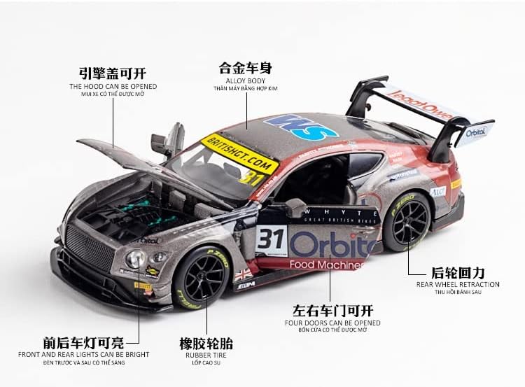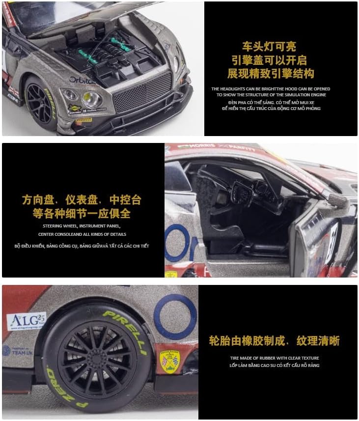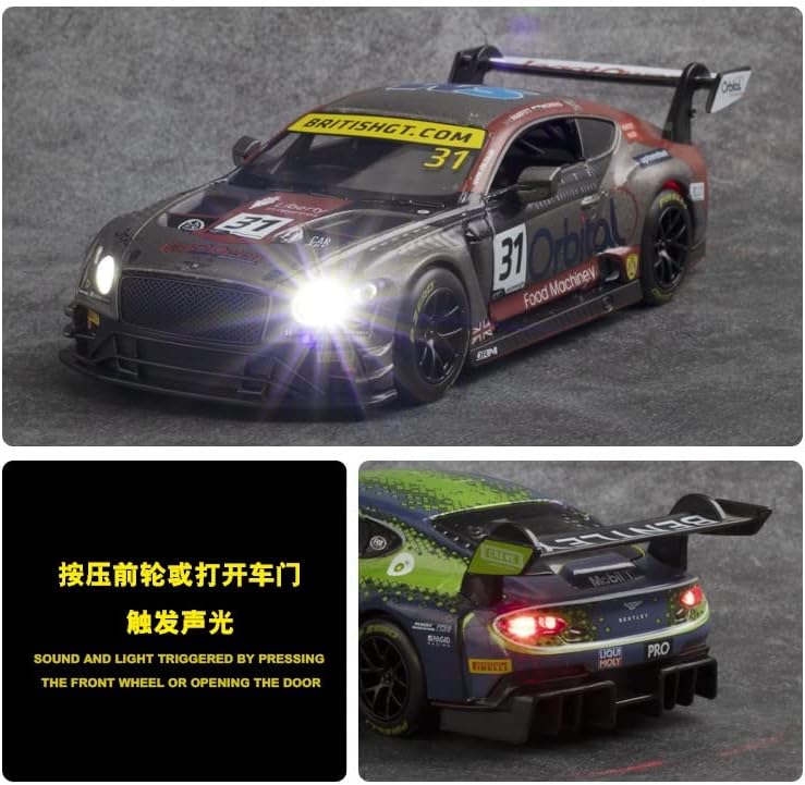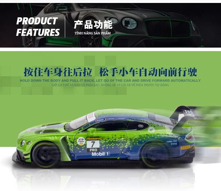 Concetto di design: i modelli di auto possono portare con sé la cultura e la storia dei marchi automobilistici. Ci sono una varietà di modelli di auto che vi aspettano per la vostra scelta, tranne che per il fatto che i modelli saranno anche progettati sulla base della vecchia auto classica del marchio di auto come prototipo, per mostrare l'evoluzione e l'eredità storica del marchio di auto attraverso il modello. Materiale robusto: questa auto modello giocattolo è realizzata in puro materiale in lega di zinco con una purezza del 99,99%. Il processo di elettroloplating, il rivestimento protettivo finale, con elevata durezza, ha una struttura vera e forte che migliora significativamente la sua protezione e resistenza all'usura. Infantile: Aprire lo sportello, il modello di auto giocattolo sarà accompagnato da luci e suoni, parcheggiare l'auto sul terreno, tenere premuto il corpo e tirare indietro, la macchina si muoverà in avanti, che attirerà l'attenzione dei bambini e portare una fantastica esperienza di gioco. Lasciate che i bambini si innamorano con esso. Regalo di festa: il modello di auto è vernice spray ecologico, sicuro ed affidabile, dopo il trattamento rigoroso, sentirsi a proprio agio. Se siete alla ricerca di compleanno e vacanze regali che qualsiasi ragazzo o ragazza ameranno? Questo 01:32 in lega modello di auto da corsa Bentley Continental GT3 diventerà un modello di auto giocattolo che adulti e bambini ameranno. Acquisto senza preoccupazioni: non dovete avere alcuna preoccupazione quando acquistate i nostri modelli di auto. Ogni modello è stato sottoposto a rigorosi controlli di qualità, dall'aspetto squisito agli interni delicati. Potete tenervi in contatto con noi attraverso Amazon se avete domande o suggerimenti per assicurarvi che tutti gli appassionati di auto possano avere una meravigliosa esperienza di acquisto.