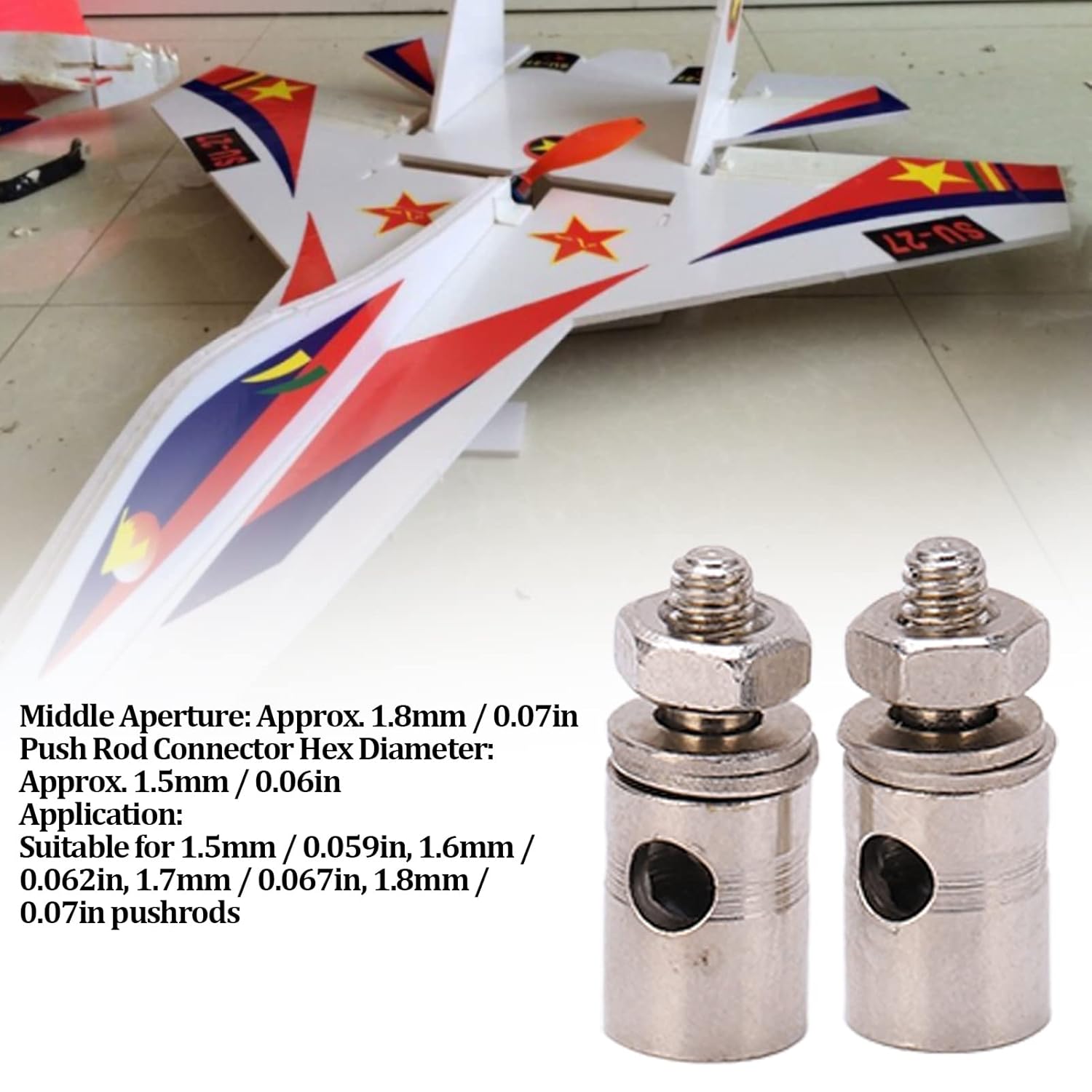 Strumento di regolazione della superficie del timone del timone di aeromobile Connettore rapido per il fissaggio della lunghezza dell'asta di tiro con facile installazione ideale per la manutenzione del modello di droni in piano RC e la manutenzione degli hobbisti utilizzano comode parti hardware durevole di debug per debug Connettore a bordo in acciaio inossidabile Connettore di collegamento resistente Parti di collegamento resistente all'usura Resistente alla corrosione Metal di alta qualità per attrezzatura meccanica Macchine industriali automobilistica Costruzione robusta per le prestazioni di lunga durata Modello leggero Aereo Connettori Pushrod Connettori Stoppers per il collegamento di controllo del controllo aeronautico RC design leggero per le prestazioni di volo fluide e un controllo avanzato Easy Installazione compatibile con vari modelli RC Accessori hobbisti Connettori PushRod con diametro del foro da 1,8 mm e dimensioni esagonali da 1,5 mm compatibili con 1,5 mm 1,6 mm 1,7 mm 1,8 mm Pushrod ideali ideali per le auto rc droni elicotteri modelli collegamenti di controllo dell'aeromo 10 d1 da 8 mm a push basta di collegamento servo Connettori servo per i pezzi di ricambio aeronautica modello RC Accessori di sostituzione dell'auto in barca per auto per auto