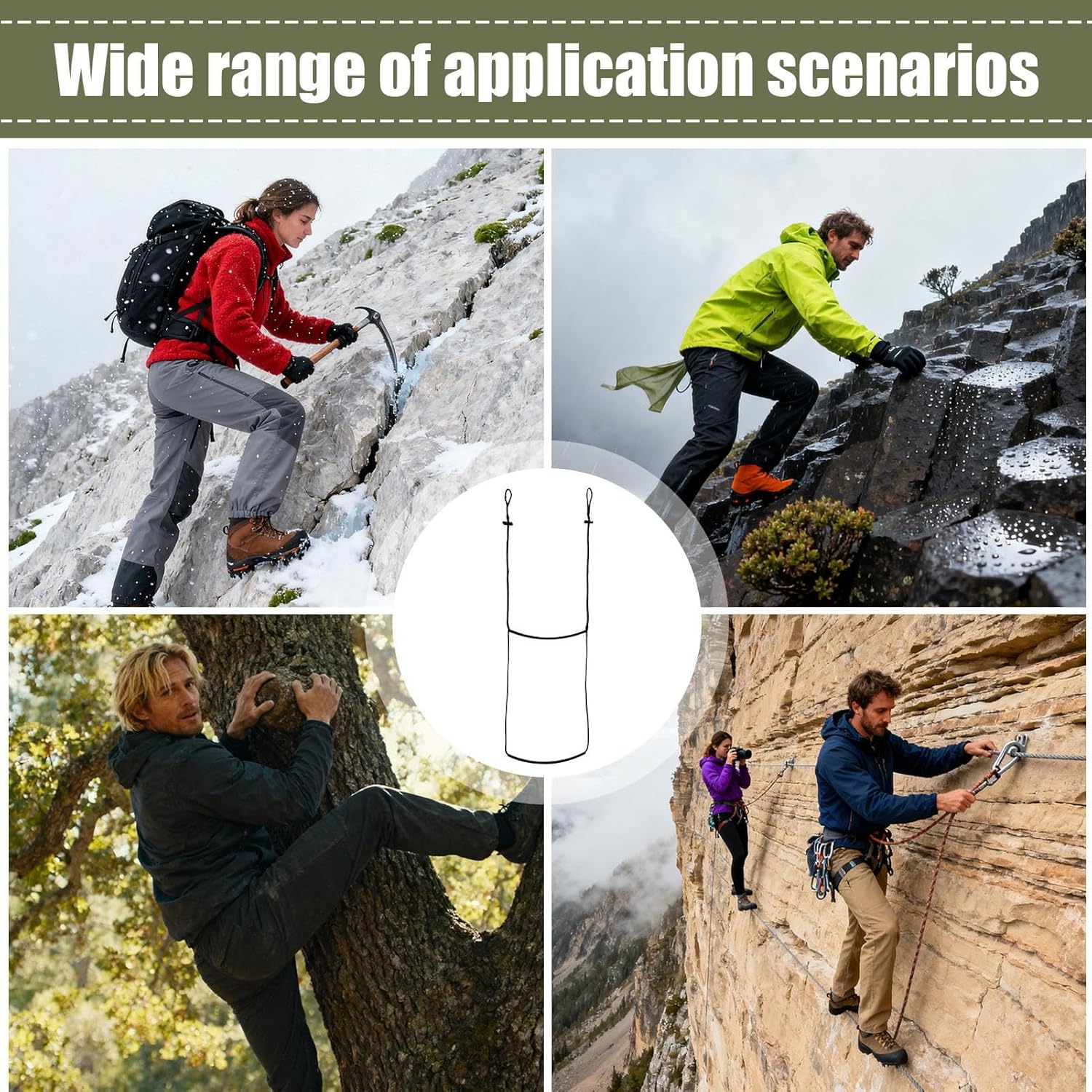 Affidabilità robusta: questa scaletta funziona perfettamente in ambienti difficili come condizioni di ghiaccio e rocce scivolose. Resiste ai danni UV e all'usura e mantiene la funzionalità durante le operazioni prolungate in scenari impegnativi di caccia o arrampicata. Sicurezza ottimizzata: grazie all'ampia imbottitura in gomma, questa ferrata per alberi offre una presa migliore sulle superfici ghiacciate, riduce lo scivolamento pericoloso e fornisce un supporto affidabile durante l'arrampicata invernale Pratica funzione pieghevole: questa scala per alberi offre una leggera funzione di trasporto pieghevole per un montaggio rapido senza ingombro eccessivo, si adatta comodamente al palmo della mano e consente così un trasporto senza sforzo; la superficie antiscivolo garantisce una posizione sicura e migliora la maneggevolezza durante attività all'aperto come il taglio di alberi o Adattamento rapido della dimensione: la scala per albero con chiusure a catena consente una regolazione rapida, si adatta a qualsiasi diametro del tronco d'albero in modo efficiente e aumenta il comfort durante l'installazione o la realizzazione in ambienti di gioco all'aperto Attuazione sicura dell'attrezzatura: la struttura in fibra di polietilene intrecciata a mano garantisce una presa stabile per attrezzature pesanti e previene rotture anche su terreni ripidi, perfetto per avventure all'aria aperta e terreni impegnativi.