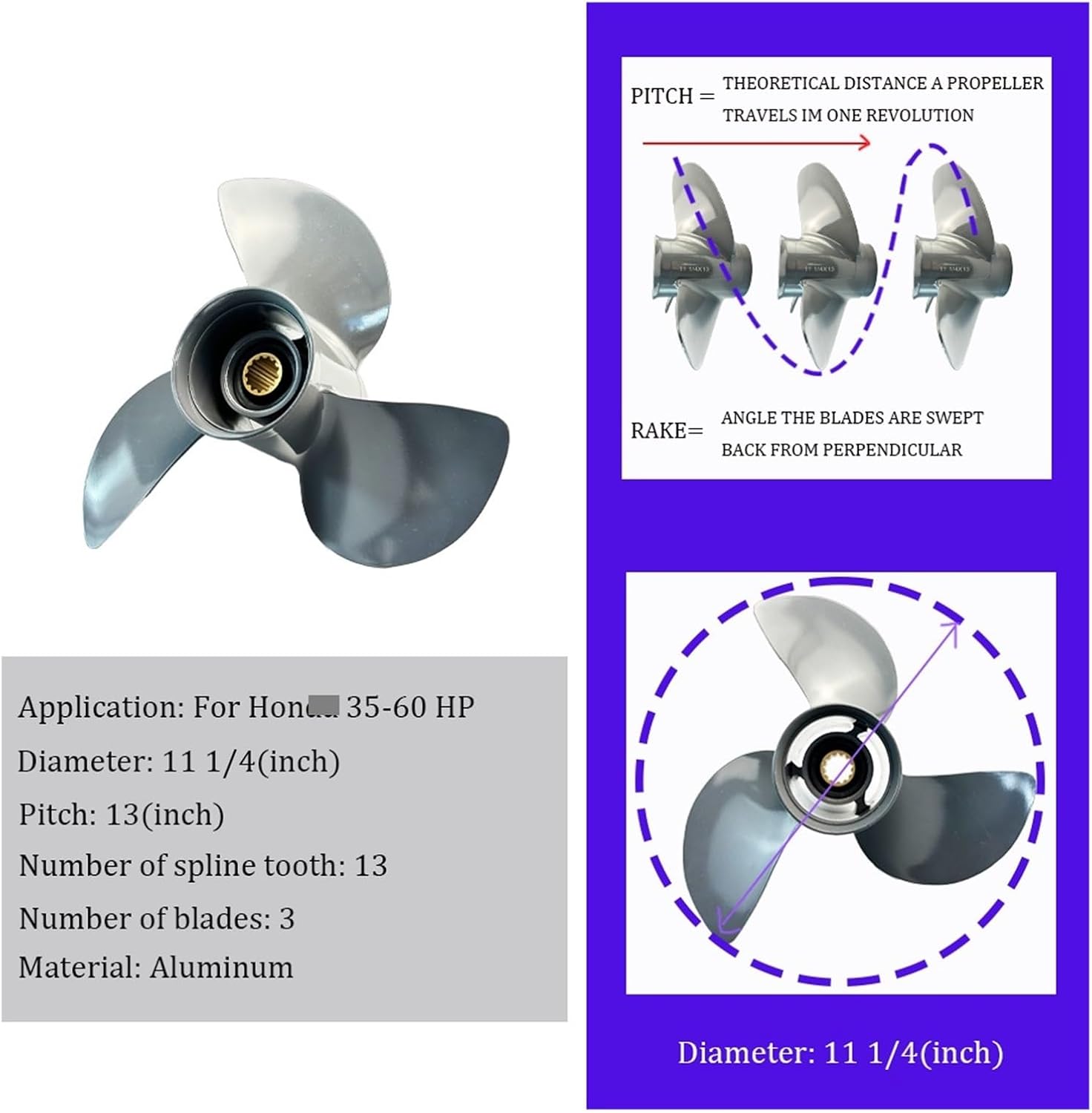 Per elica fuoribordo 11 1/4 * 13 Vite in lega di alluminio per barche 13 Spline 35 40 45 50 55 60 HP 58130-ZV5-000 Motore marino