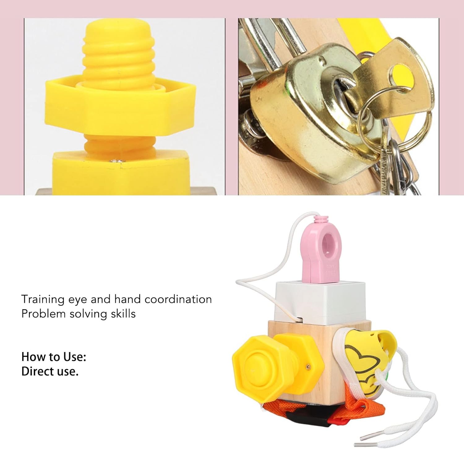 Per materiale in legno: questo prodotto è realizzato in legno premium. È giocabile e autunno - resistente. Il design della sicurezza garantisce che le parti siano saldamente collegate, resistendo alla gestione del tuo bambino. Per i giocattoli: una migliore formazione. Usa le mani e il cervello per sbloccare il giocattolo, coltivare il pensiero logico. Adatto ai bambini di tutte le età, può rafforzare la coordinazione degli occhi e migliorare gradualmente le capacità pertinenti. Per un felice gioco: quando un bambino tiene questo giocattolo, la combinazione di parti che toccano imita scenari di vita reali. Permette ai bambini di comprendere la vita e imparare le abilità di cambiamento di base al proprio ritmo durante il gioco, semplificando le esperienze di vita. Per i giocattoli educativi: ottimo per l'apprendimento: questo giocattolo offre un modo interessante per educare i bambini. È progettato per bambini, bambini in età prescolare, studenti di famiglia e bambini autistici. Mantiene i bambini impegnati, soddisfa la loro curiosità durante il gioco e aiuta a sviluppare le loro mani indipendenti - sull'abilità. Per [Nome prodotto] di [marchio] - Presente eccellente: ideale come per tuo figlio, può sorprenderli e deliziarli in ogni occasione. - Toy Sensory: un giocattolo tranquillo che offre esperienza sensoriale, aiutando i bambini a stare lontano dai dispositivi elettronici.