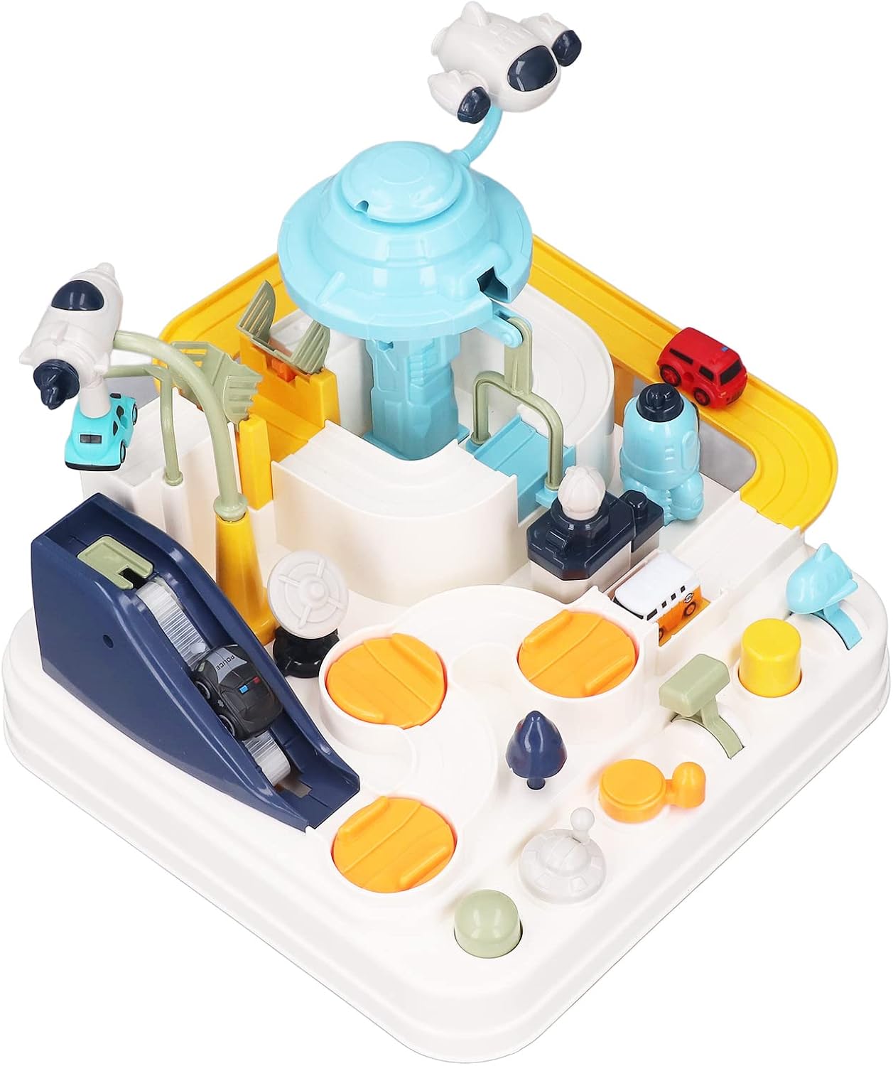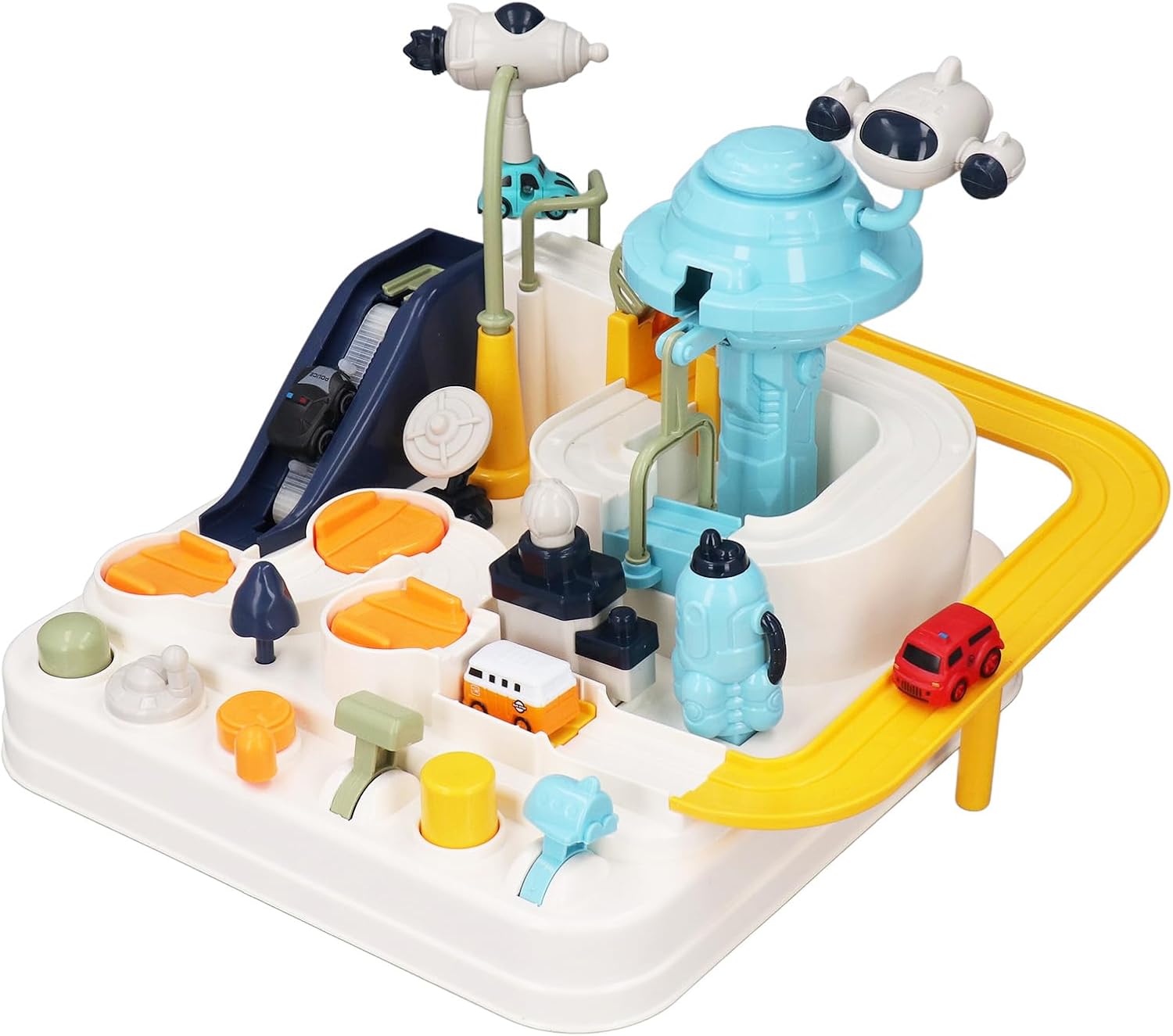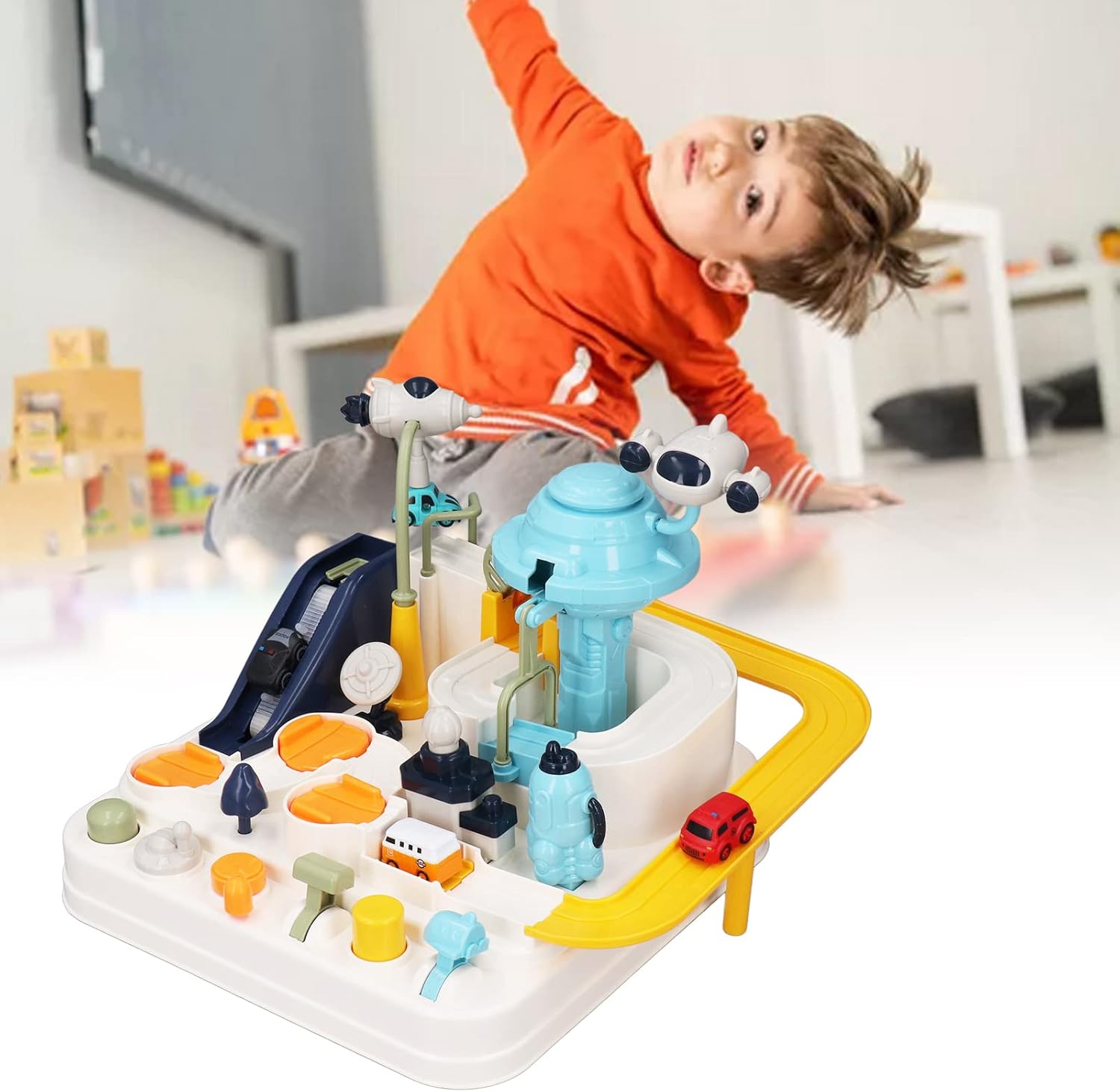 Per il giocattolo per auto Adventure Track: Caratteristica: i bambini possono guidare le macchinine attraverso gli ostacoli e superare ogni livello, aumentando la loro sicurezza. Per i giocattoli educativi: ideale per allenare e migliorare le capacità motorie dei bambini e migliorare la loro capacità di risoluzione dei problemi e la coordinazione manuale. Nome prodotto: Per binario manuale Descrizione: Funzione: Binari di collegamento meccanici integrati. Si tratta di una pista per veicoli a inerzia manuale che non richiede batterie, rendendo facile il gioco per i bambini di età superiore a 3 anni. Nome del prodotto: Per Prudeuducts Marchio: per [Marchio] Descrizione 1: Funzione: Dispone di 6 pulsanti di controllo e 9 sfide diverse, offrendo diverse esperienze di gioco. Descrizione 2: Componenti: il kit comprende il corpo principale, il binario, l'asta rotante, la luce di segnalazione e la gru, che devono essere tutti installati sulla base. Per i giocattoli da pista avventurosi: -Caratteristica: coloratissimi e dotati di 4 mini macchinine, che li rendono ideali per i bambini a Natale e ai compleanni.
