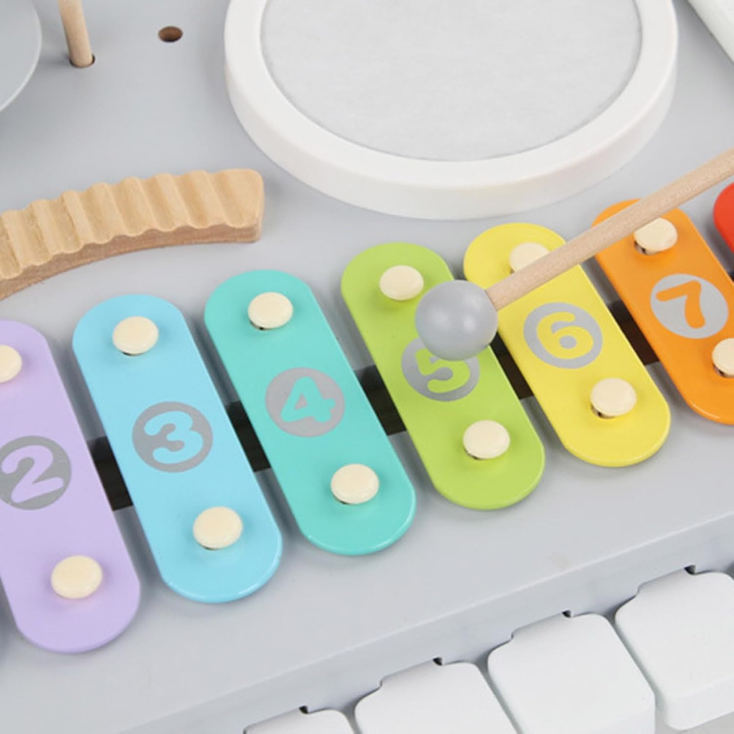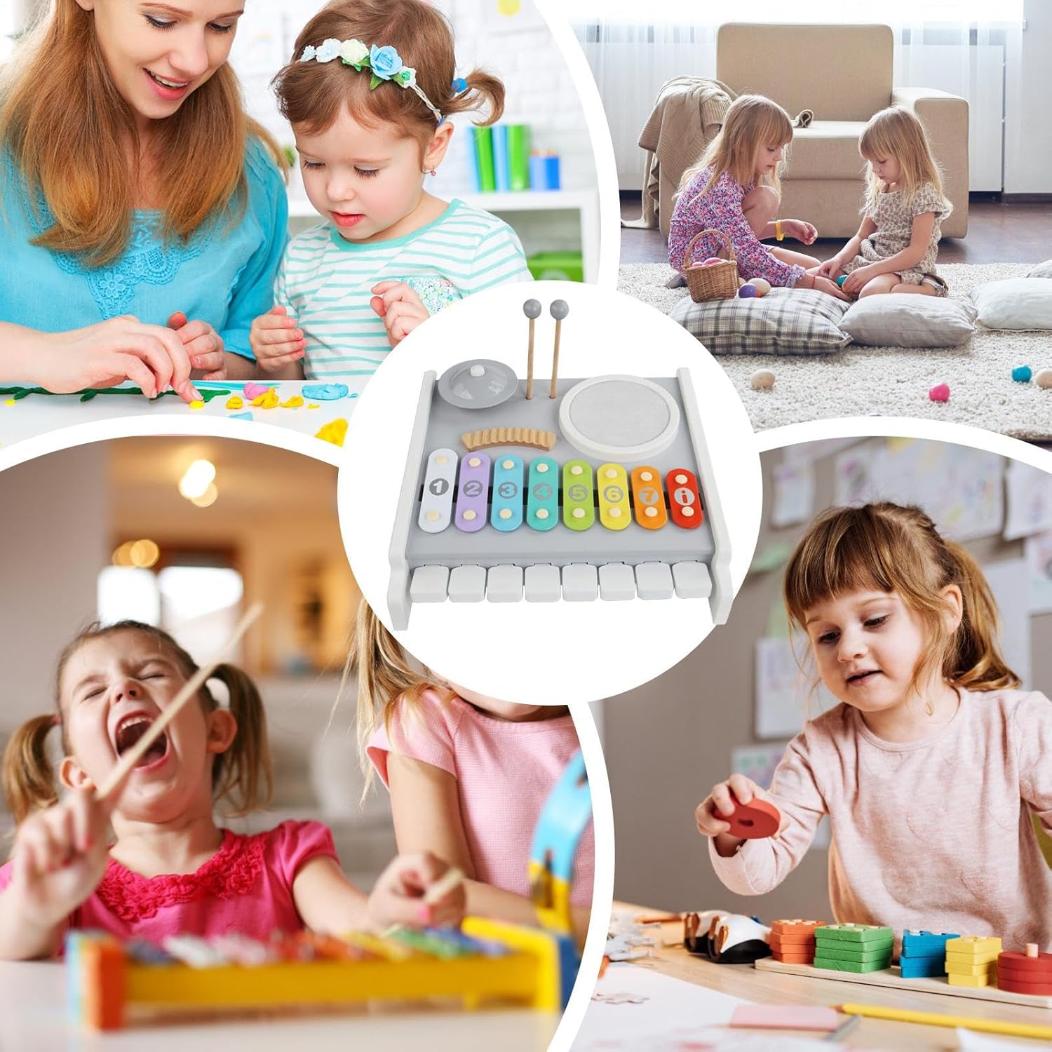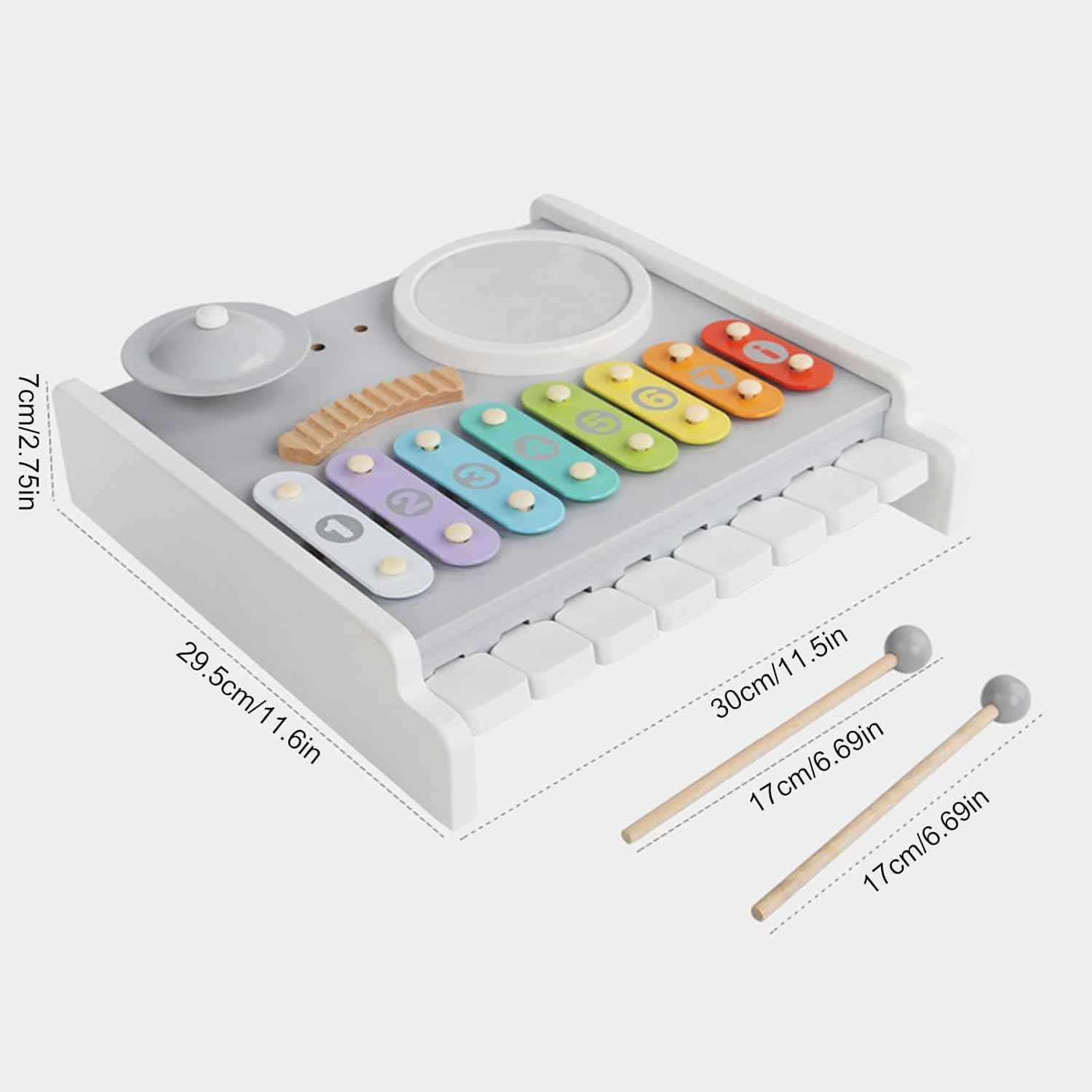 Costruzione in Legno Naturale: Questo per bambini è realizzato in legno naturale con superfici lisce che resistono a macchie e sporco, semplificando la manutenzione mentre offre un esperienza musicale sicura e coinvolgente per i piccoli durante il gioco in ambienti domestici o educativi. Strumento di Sviluppo Musicale: Il per bambini funge da strumento educativo precoce che promuove lo sviluppo musicale nei piccoli, incoraggiando lesplorazione ritmica e migliorando la percezione uditiva. Offre esperienze di gioco interattivo con familiari o coetanei, sostenendo la crescita cognitiva e la coordinazione attraverso attività pratiche e coinvolgenti che rendono lapprendimento naturale e piacevole per i bambini. Gioco di Percussione Interattivo: Progettato per il gioco di percussione interattivo, questo incoraggia i bambini a costruire abilità di sviluppo attraverso il tapping ritmico, che rafforza le capacità motorie fini e migliora la coordinazione occhio-mano in ambienti musicali giocosi, promuovendo l'apprendimento attivo e la coordinazione attraverso l'esplorazione sonora e il movimento. Giocattolo Musicale Multifunzionale: Combinando , tamburo e campanelli, questo per bambini supporta il gioco musicale interattivo fornendo esperienze sonore multiple, rendendolo ideale per migliorare l'apprendimento sensoriale e le interazioni di gruppo divertenti a feste o asili , i bambini possono scoprire la gioia della musica insieme. Sviluppo Sensoriale Stimolante: Con tonalità vivaci e barre tonali etichettate, lo per bambini supporta l'educazione precoce incoraggiando la crescita sensoriale attraverso attività musicali interattive. per il gioco di gruppo o la scoperta autonoma, questo giocattolo educativo aiuta a sviluppare il riconoscimento dei colori e la consapevolezza del suono, promuovendo abilità cognitive e percettive in momenti di gioco piacevoli a casa o all'asilo.