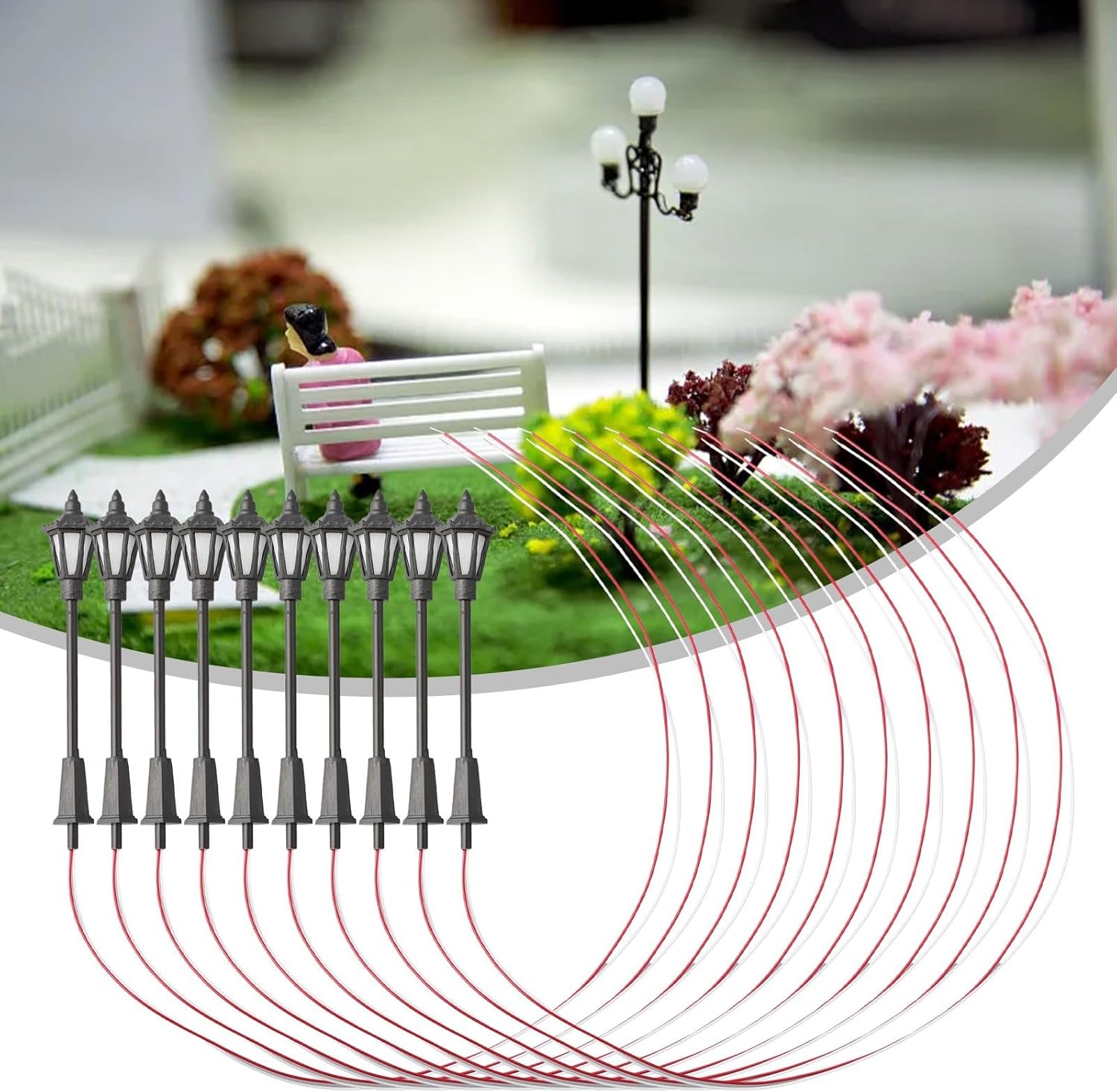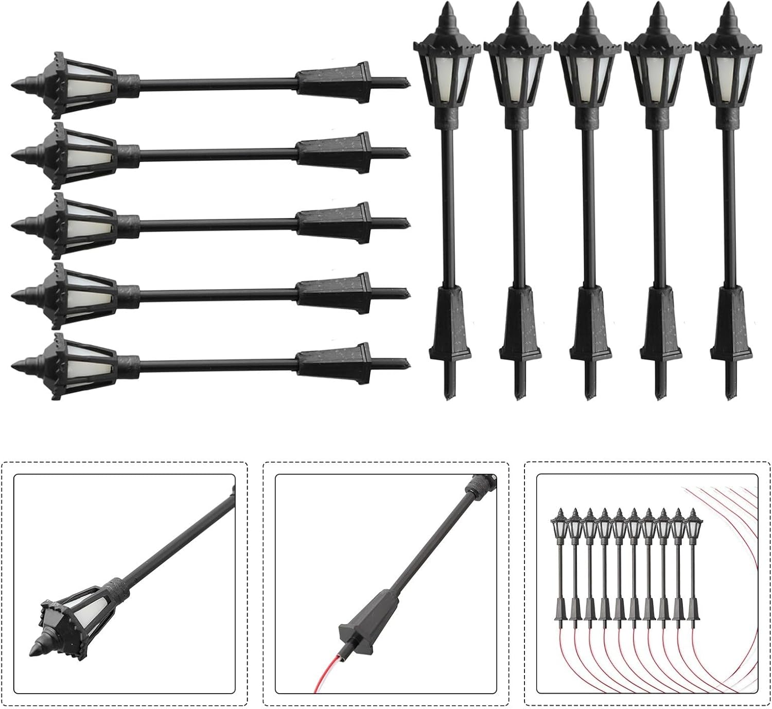 Modello versatile ferroviario compatibile con: Illumina il tuo compatibile con HO, compatibile con layout in scala 00 o con questi lampioni a 10 LED, perfetto compatibile con per migliorare il paesaggio del treno e l'esposizione del giardino con altezza regolabile 65-70 mm e funzionamento 3V Compatibile con per un uso sicuro e di lunga durata Compatibile con il kit: ogni set include 10 lampioni e 10 resistenze con cavi da 25 cm, pronto compatibile con per una facile installazione in modellismo ferroviario o progetti fai da te, garantendo un'installazione immediata senza parti aggiuntive Design realistico e sicuro: realizzate con materiali plastici, queste lampade offrono una scala generale da 50 a 100, evitando rischi con una corretta applicazione corrente da 20 mA. Compatibile con per luminosità e coerenza. Compatibile con in varie scene Compatibile con meccanismo di facile installazione: con LED e resistori precablati, basta inserirlo nel layout Compatibile con per l'attivazione rapida, compatibile con muschio Compatibile con bottiglie paesaggistiche o ecologiche, fornendo un modo senza soluzione di continuità per illuminare i display Risultati di layout migliorati: Illumina le tue scene ferroviarie o stradali con queste lampade a risparmio energetico, offrendo un'illuminazione vivida durante i viaggi attraverso configurazioni dettagliate, supportate dall'assistenza clienti 24/7 Compatibile con qualsiasi domanda