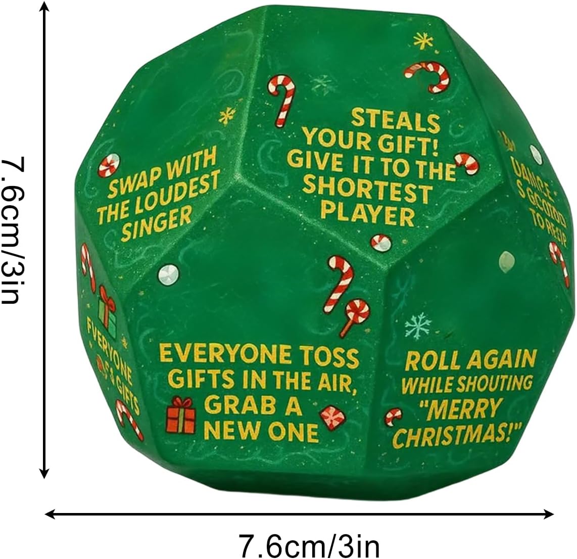 Gioco leggero e protetto: Combina bordi morbidi sicuri per i bambini, la costruzione in materiale ABS e un profilo leggero, garantendo un rotolamento fluido e massima sicurezza per l'utente Sorprese ad ogni lancio: Grazie al design intuitivo a 12 facce e regole semplici, questi offrono un'esperienza che mantiene il gioco avvincente e permette a tutti di partecipare senza sforzo Divertimento Natalizio Versatile: Celebra l'arrivo del Natale con un gioco di adattabile, ideato per feste familiari e in ufficio, garantisce piena partecipazione unendo dinamiche divertenti e competitive per ogni tipo di giocatore Variazione Scambio Regali: Permetti un divertimento inclusivo durante la tua celebrazione natalizia con un versatile gioco di progettato per aggiungere elementi emozionanti scambio di regali, adatto a familiari e ospiti di tutte le età senza necessità di competizione Diffusore di risate e felicità: Questo dado natalizio con il festoso design di Babbo Natale diffonde allegria e gioia delle feste, simboleggiando l', rendendosi un'opzione di regalo indimenticabile per le persone periodo natalizio