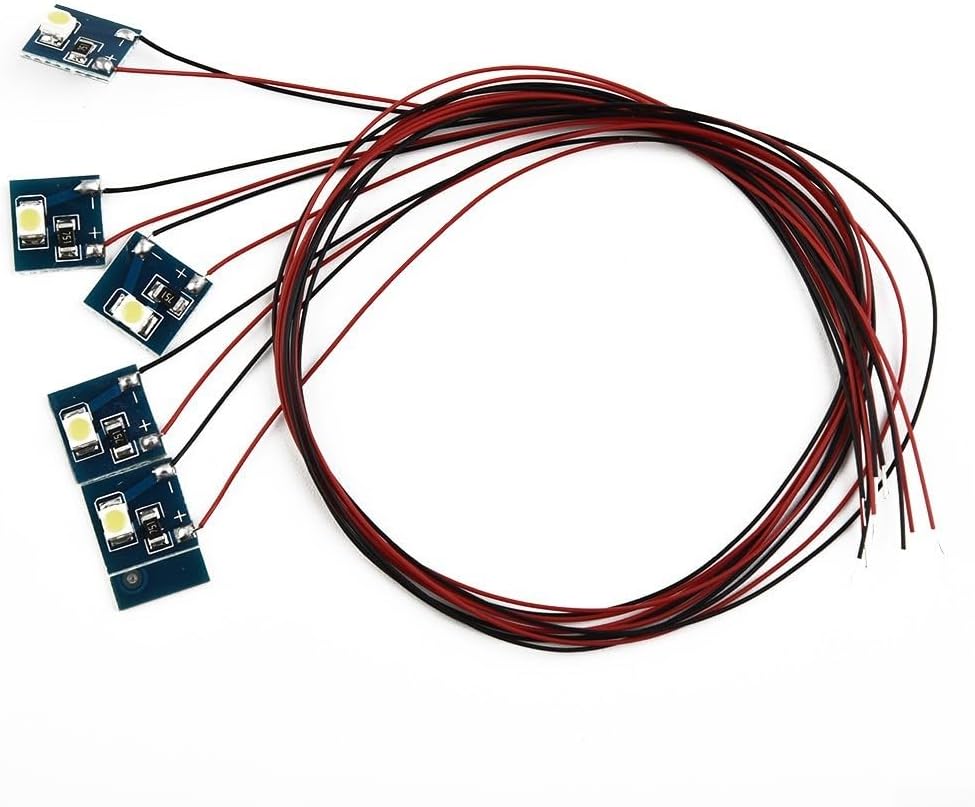 LED pre-cablati: questi LED sono precablati con una resistenza da 1000 Ohm in serie, che li rende pronti per una facile installazione in modellini o scene. Ampia gamma di tensione: progettati per funzionare con una tensione diretta da 12 V a 18 V, questi LED sono compatibili con fonti di alimentazione CA e CC. 【Luminosi e versatili】Con una corrente diretta massima di 20 mA, questi LED forniscono una sorgente luminosa luminosa ed efficiente per illuminare gli interni dei modellini ferroviari. Due opzioni di colore della luce: scegli tra luce bianca calda o bianca fredda, per creare l'atmosfera desiderata nella scena del tuo modello. Quantità conveniente: questa confezione include 5 LED da 12 V, fornendo diverse opzioni di illuminazione per i tuoi modellini.