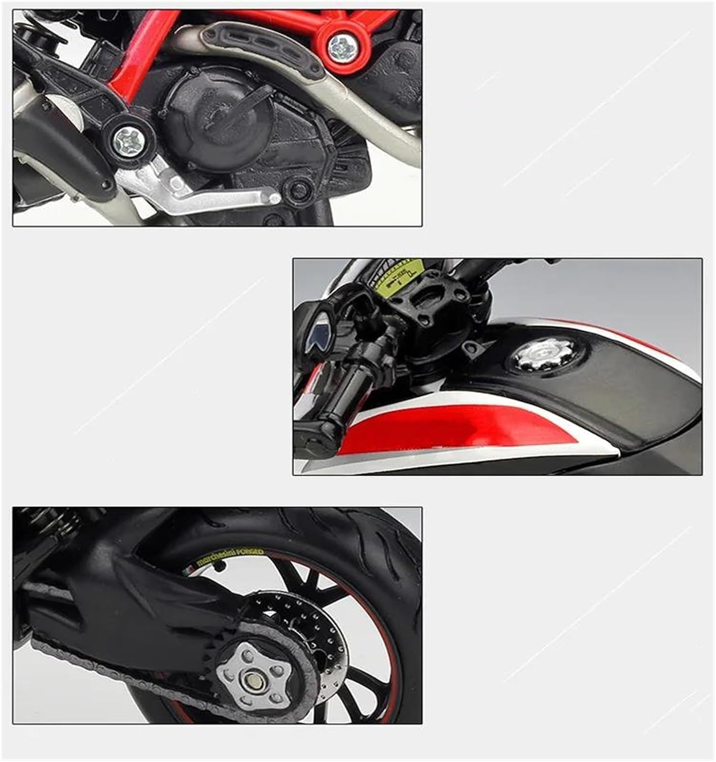 Realizzato in materiale pressofuso per modellini di motociclette e plastica, la parte dello pneumatico è in gomma. Il design accattivante, con linee del corpo fluide e potenti, delinea un corpo naturale e stratificato. Credo che diventerà la scelta ideale per le amanti delle modelle. Dettagli complessi come il supporto girevole e la ruota anteriore girevole arricchiscono ulteriormente il realismo e il fascino di questa motocicletta giocattolo. L'eccellente abbinamento dei colori esalta l'aspetto estetico del modello di motocicletta, mentre i dettagli realistici e la simulazione proporzionale lo rendono perfetto per la decorazione di collezioni. Durante il processo produttivo, effettuiamo costantemente test per garantire la qualità del prodotto. Per qualsiasi domanda, non esitate a contattarci.