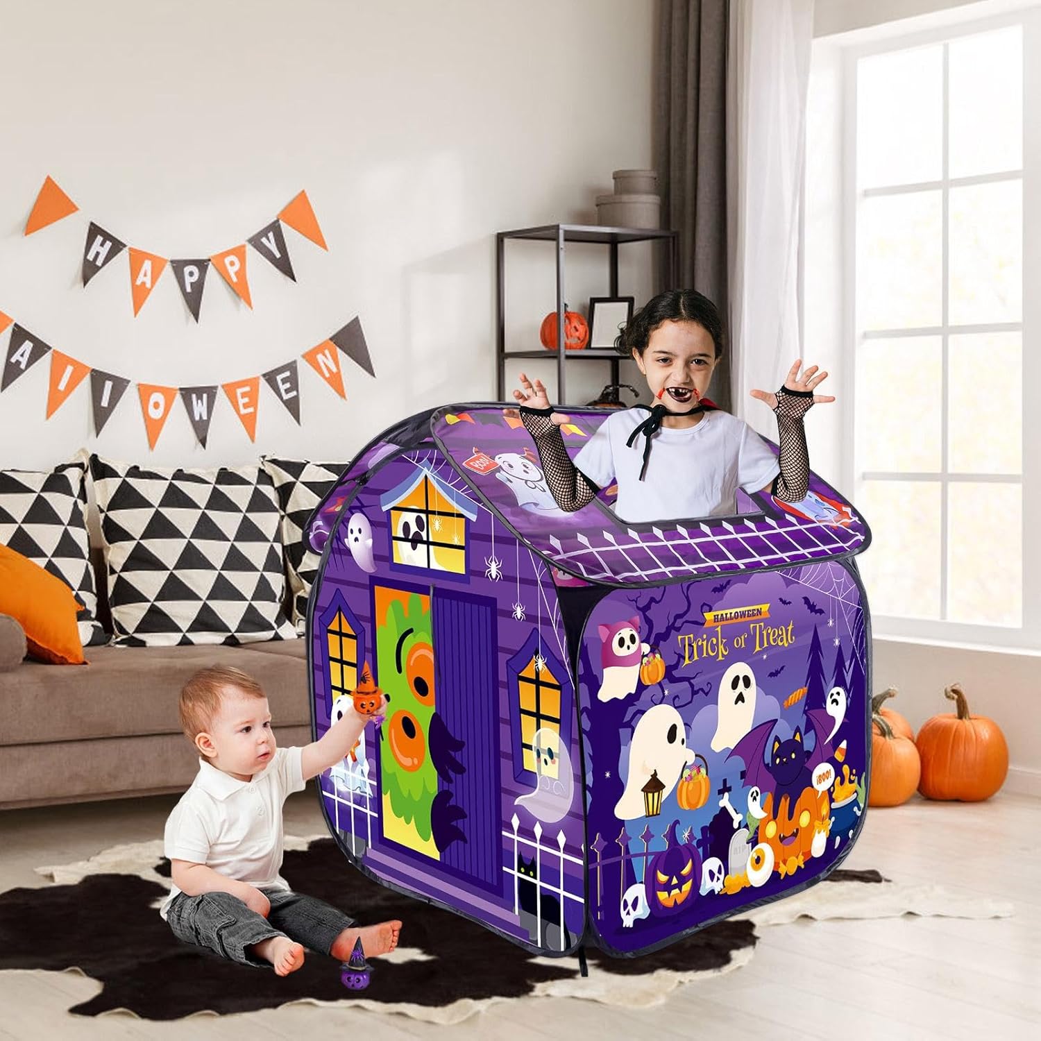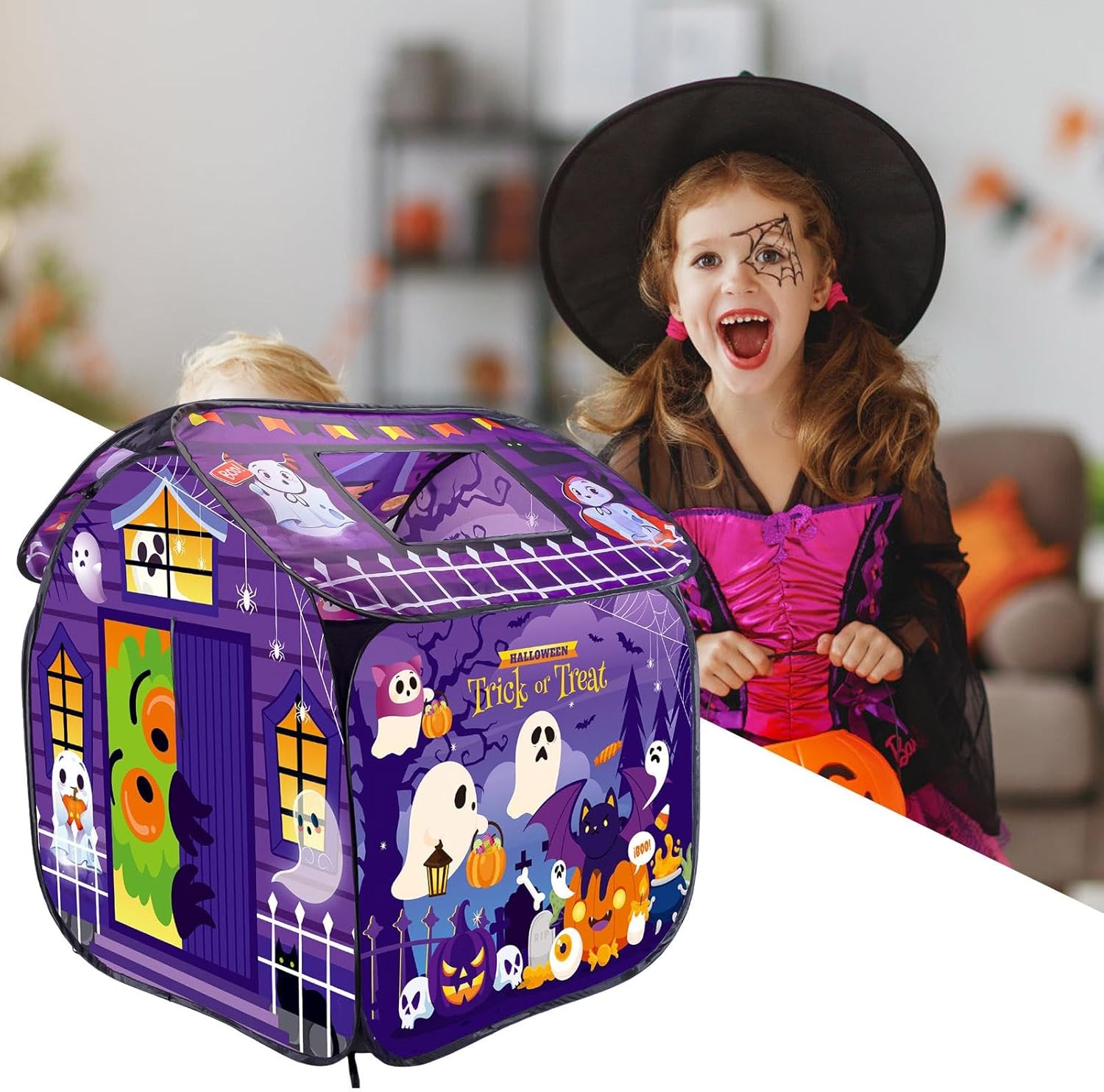 Eccitazione all'aperto: goditi il brivido dei giochi all'aperto con la nostra tenda teatrale. Costruita con tessuti eccellenti, questa tenda presenta colori resistenti allo sbiadimento, stabilità robusta ed è progettata per resistere alla prova del tempo. Porta sicurezza e divertimento alle avventure all'aria aperta del tuo bambino Design di ventilazione: il design con apertura superiore della nostra tenda da teatro garantisce un'eccellente circolazione dell'aria e un'eccellente ventilazione. I genitori possono facilmente monitorare le divertenti attività dei loro piccoli mentre si sentono rilassati e a proprio agio. Progettato da esperti per una piacevole esperienza di gioco Stimolare la creatività: incoraggiarli a giocare a giochi interessanti e fantasiosi in questa tenda da gioco, promuovendo la creatività e l'immaginazione quando svolgono il ruolo di un piccolo mago o di un piccolo fantasma Veloce e pratico: installa e piega la tenda da gioco in pochi minuti senza attrezzi necessari. Goditi più divertimento e avventura con facilità grazie al suo design compatto e portatile Regalo speciale: rendi memorabili compleanni, Halloween e feste in famiglia con questa tenda teatrale. Pratico e fantasioso, è l'opzione regalo ideale per la famiglia, gli amici e per godersi un momento amichevole insieme