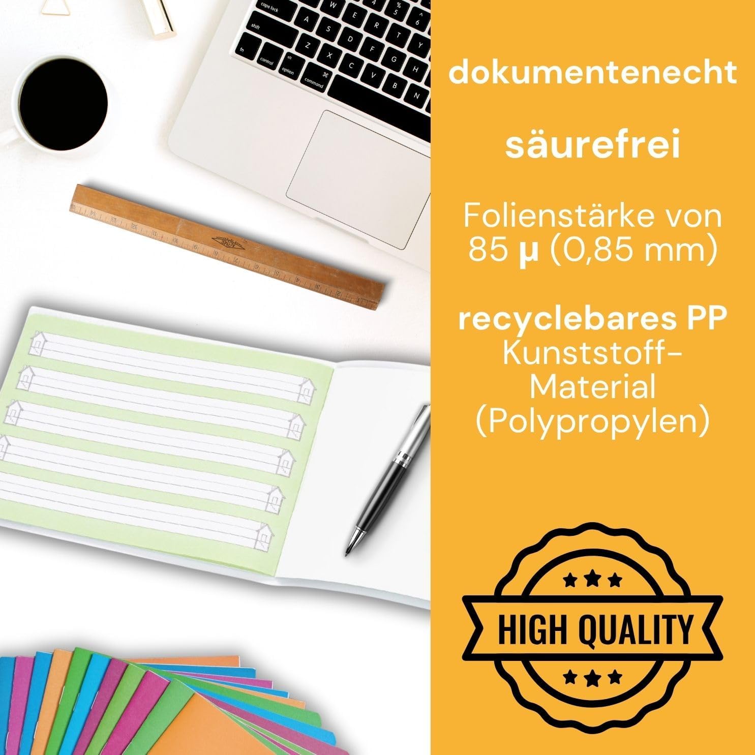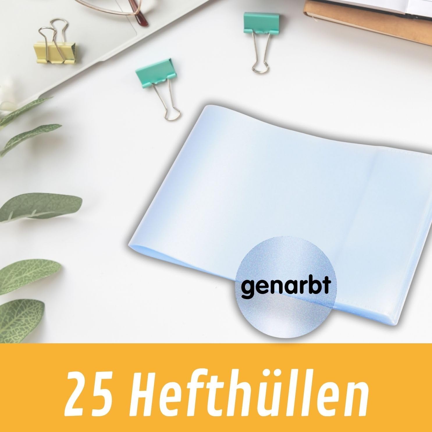 ★ Caratteristiche forti ★ robusta busta protettiva con uno spessore di 0,085 mm (85 my), materiale ecologico e riciclabile in plastica PP (polipropilene), capacità ideale per 16-32 fogli (max. 48 fogli), grana e trasparente ★ Formato ideale ★ Protezione per quaderni (formato orizzontale) con una dimensione laterale 213 x 151 mm (8,38 x 5,94 pollici), dimensioni da aperto 426 x 151 mm (16,77 x 5,94 pollici), adatta per quaderni, libri (copertina morbida) in formato DIN A5, con pratico inserto per quaderno. Nastro (52 mm/2,04 pollici), flessibile e lavabile ★ Colore: 25 buste trasparenti per quaderni, buona visibilità dei motivi e della scritta grazie alla pellicola di plastica, trasparente, goffrata ★ Protezione perfetta ★ Custodia per quaderni/libri come aiuto efficace per proteggere quaderni scolastici e lavorativi, cucitrici, quaderni e libri da polvere, sporco, umidità, pieghe, crepe e orecchie da asino ★ Versatile ★ Cover resistente e facile da usare per scuola, casa, ufficio, università, università e ufficio