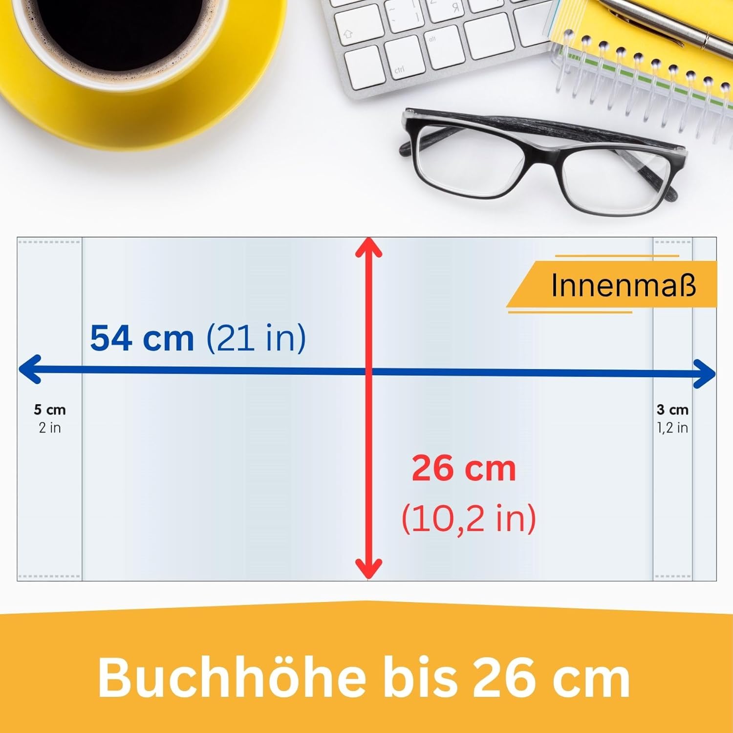 - Nota – Altezza del libro fino a 26 cm – si prega di misurare l'altezza del libro prima di ordinare, per evitare la restituzione. Protezione stabile per libri scolastici e quaderni – Busta extra forte in pellicola PP 145 my – trasparente, robusta, resistente agli strappi e allo sporco. Ideale per libri di scuola, lavoro o libri di testo. Formato su misura per molti libri – Dimensioni: 26 x 54 cm – copertina variabile per larghezze fino a 54 cm – sinistra con copertina rigida (5,6 cm), regolabile in modo flessibile a destra (fino a 3 cm). Vetro trasparente e lavabile, ideale per l'uso quotidiano. La pellicola trasparente e incolore garantisce una visione completa del titolo e della copertina. Facile da pulire, resistente ai documenti e durevole. Versatile – per scuola, università e archivio – Adatto per classi scolastiche, università, biblioteche o casa – protegge in modo affidabile da sporco, umidità, pieghe e crepe. Prodotto in modo sostenibile e di alta qualità, plastica riciclabile (polipropilene), priva di plastificanti, Made in EU, durevole e rispettoso delle risorse.