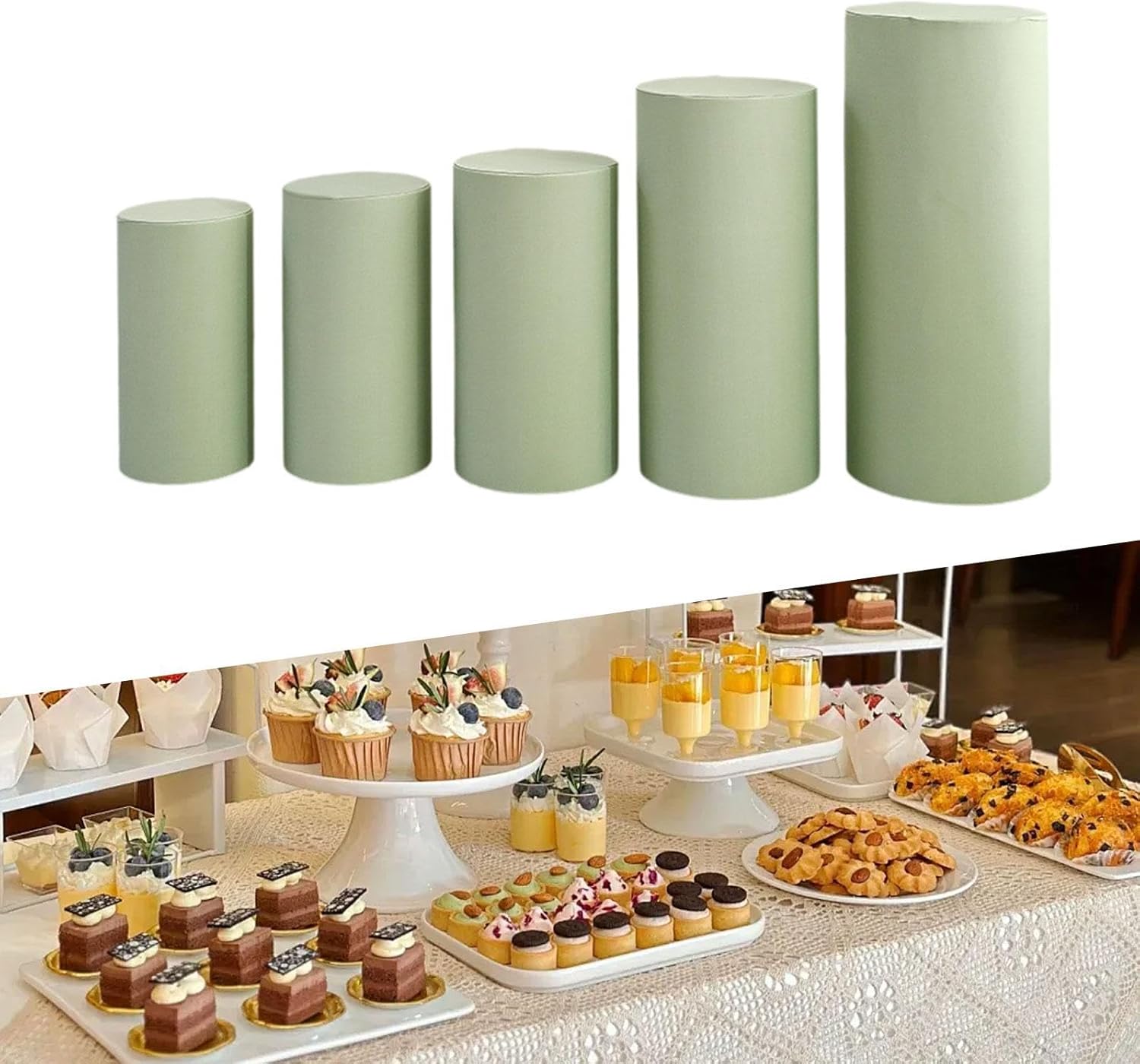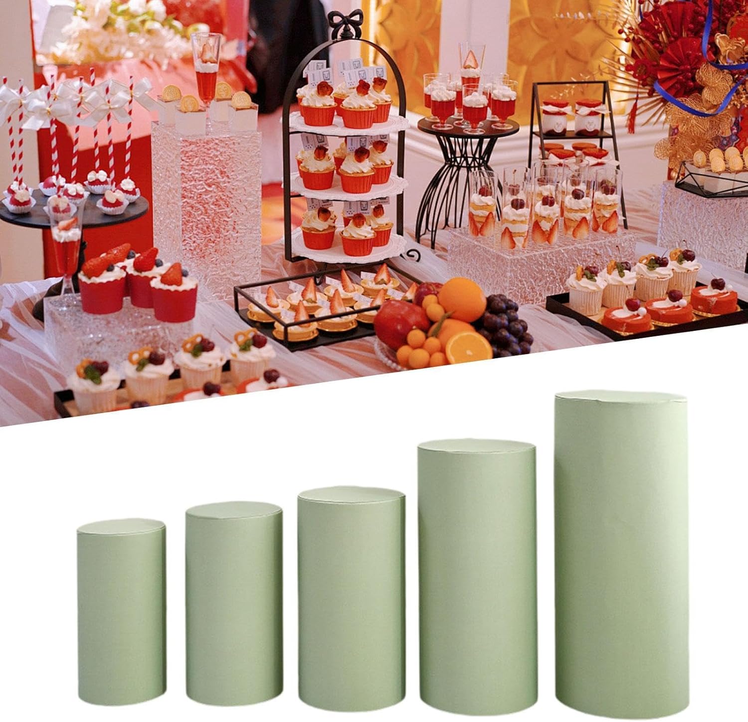 【Il pacchetto include】: questo prodotto è una copertura del piedistallo per dessert cilindri, riceverai 5 coperture per piedistalli, adatti per le decorazioni che questo prodotto include solo e non include lo stand 【Dimensioni del prodotto】: coperture per pilastri per bastoncini adatti per supporti da dessert di dimensioni 90x40cm, 75x36cm, 60x33cm, 55x30cm e 50x27cm 【Applicazioni ampie】: versatili in uso, le copertine del bastone cilindro possono essere riutilizzate per diverse occasioni come matrimoni, compleanni, feste, feste di laurea, attività festive o altre occasioni speciali 【Tavoli da dessert Decorazione】: per lo stabilimento del bastone cilindro per le feste non sono solo funzionali, ma aggiungono anche un tocco di eleganza all'arredamento del con il loro elegante design e materiale di qualità 【Materiale di qualità】: del piedistallo del dessert cilindro sono leggere, possono essere utilizzate ripetutamente e sono facili da indossare e decollare, rendendoli una scelta ideale per o modifiche speciali durante eventi speciali