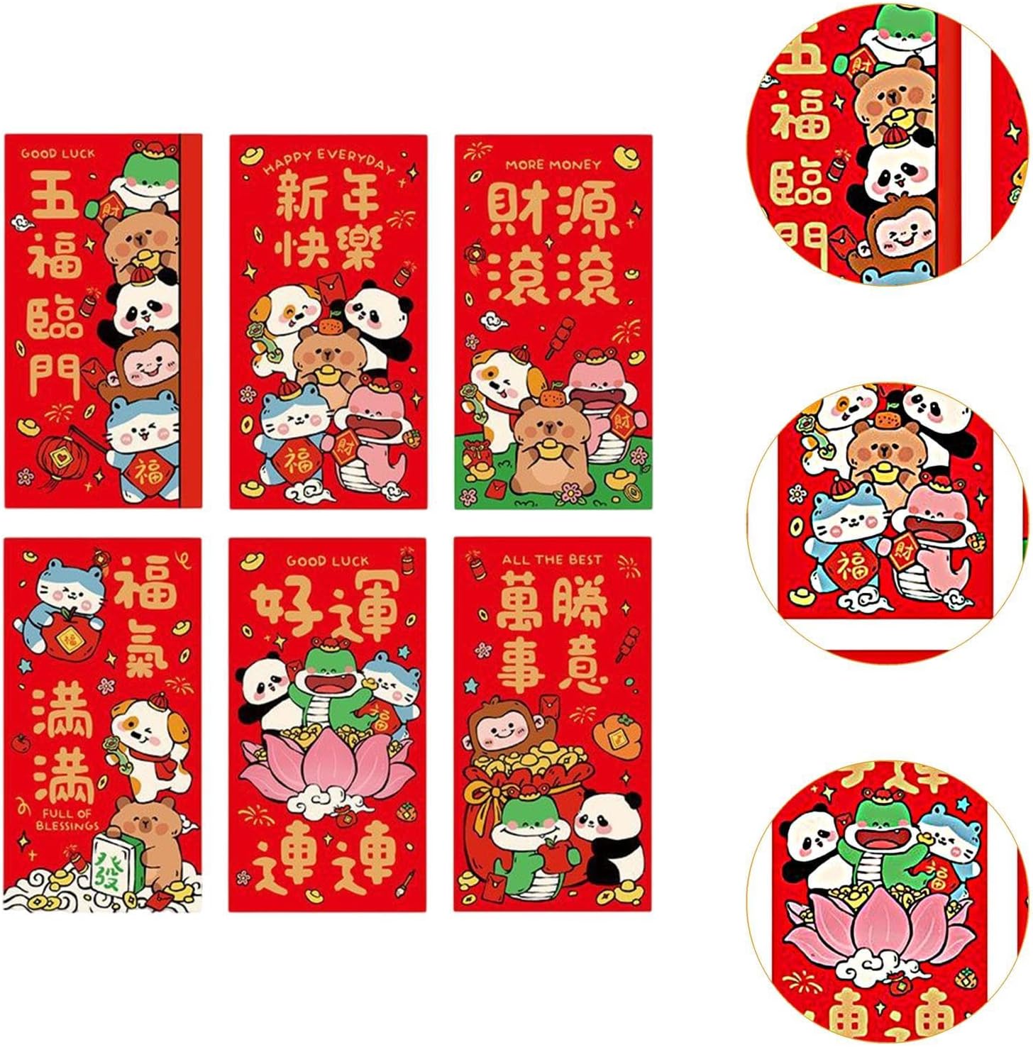 【Capacità di grandi dimensioni】: Misurando 17 cm x 9 cm, questi Hong Bao di Capodanno di grandi dimensioni possono facilmente contenere più denaro, soddisfacendo diverse quantità di denaro fortunato che desideri donare durante le celebrazioni 【Colori vivaci】: dominate da un rosso intenso, che simboleggia gioia e buona fortuna nella cultura cinese, queste buste di Capodanno sono ulteriormente impreziosite da testo dorato ed elementi decorativi. Questa sorprendente combinazione di colori assicura che si distinguano tra le altre buste rosse 【Design unico disegnato a mano】: queste buste rosse presentano un tipo disegnato a mano con adorabili illustrazioni di animali dei cartoni animati. Ogni busta è decorata con auguri festivi, creando un'atmosfera giocosa e celebrativa ideale per il capodanno 【Uso versatile】: progettate come opzione universale, queste tasche rosse sono adatte a varie occasioni di Capodanno. Che si tratti di regali per i membri più giovani della famiglia o di scambi con gli amici, scelta ideale per tutte le tue esigenze festive 【Set di confezioni convenienti】: Ogni set include 6 buste dal design unico, che offrono sia varietà che valore per i soldi. Ciò li rende ideali per acquisti all'ingrosso per soddisfare le tue esigenze di buste rosse durante le festività di Capodanno