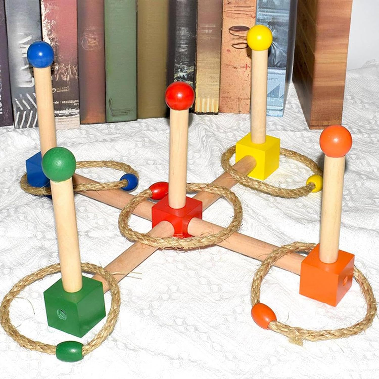 【Costruzione in legno di alta qualità】: realizzato in legno di qualità con colori vivaci per bambini e una struttura robusta, il gioco del lancio degli anelli garantisce durata durante il gioco 【Design per bambini】: presenta forme lisce e bordi arrotondati per una presa comoda, gioco di lancio in legno che promuove la coordinazione occhio-mano riducendo al minimo i rischi di graffi o lesioni 【Sviluppo delle abilità】: i colori vivaci attirano l'attenzione, supportando al contempo la concentrazione, le capacità motorie fini e le capacità di risoluzione dei problemi attraverso un gioco interattivo ispirato 【Compatto e portatile】: con una base da 1,57 pollici x 7,87 pollici e anelli da 12 cm / 4,72 pollici di diametro, è ideale sia per uso interno che esterno, perfetto per giardini, sale giochi o viaggi senza occupare spazio in eccesso 【Set di attività completo】: include 5 bastoncini, 4 bielle e 4 anelli per configurazioni di gioco versatili che incoraggiano il lavoro di , l'interazione sociale e le creative