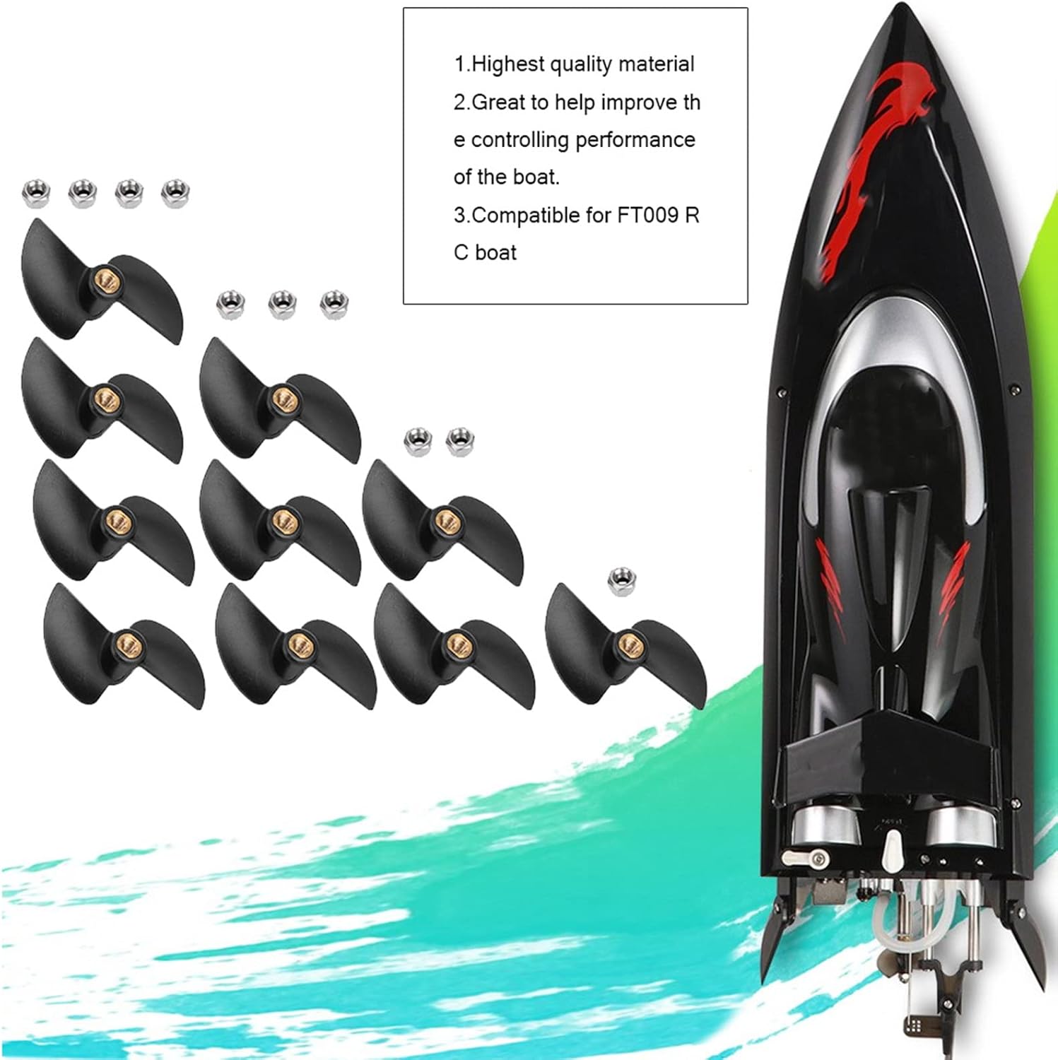 MATERIALE IN NYLON RINFORZATO: le nostre eliche sono realizzate in materiale di nylon rinforzato di alta qualità e presentano elasticità e resistenza alla pressione. Ciò aumenta la durata e la longevità delle eliche grazie alla lavorazione squisita. MATERIALE AD ALTE PRESTAZIONI: Le nostre eliche soddisfano le specifiche originali standard, si adattano perfettamente, sono facili da installare e migliorano notevolmente le prestazioni di governo della tua barca. Sperimenta le grandi prestazioni della barca con le nostre eliche superiori. Installazione senza problemi: queste eliche offrono un processo di installazione semplice e veloce. Una volta installate, rimangono saldamente in posizione e forniscono una sostituzione diretta ed efficace per eliche vecchie o rotte. APPLICAZIONE VERSATILE: Le nostre eliche forniscono una forte spinta e sono quindi adatte per imbarcazioni subacquee telecomandate. Questa confezione contiene 10 pale dell'elica per barche RC FT009, compatibili con i motoscafi con telecomando senza spazzole FT009. DESIGN LEGGERO: le nostre eliche sono progettate con una struttura leggera e compatta per garantire che non aggiungano ulteriore sforzo alla tua barca e garantire un funzionamento sicuro.