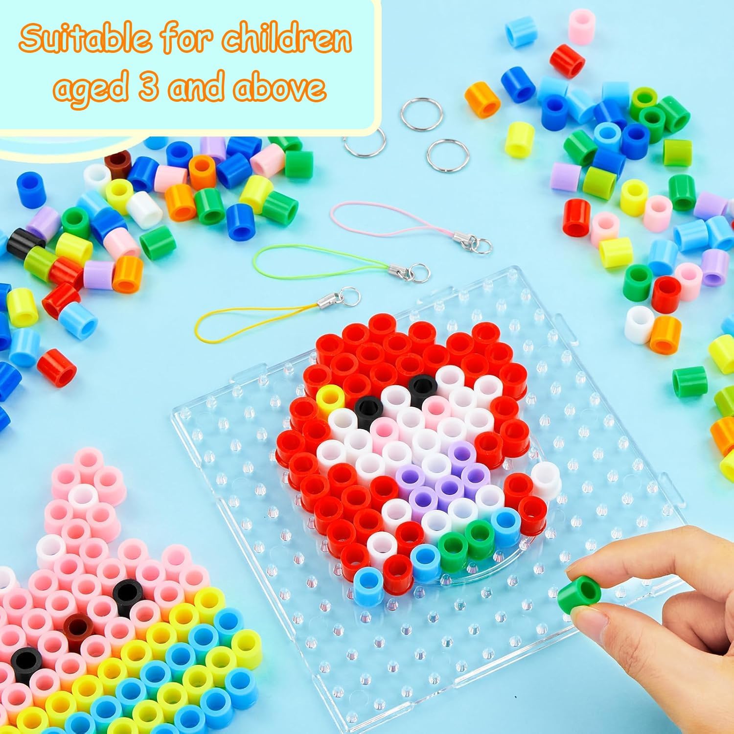Contenuto della confezione: il set di perline da appendere contiene: 1000 perline da 10 mm, 1 tavola trasparente per perline, 10 modelli, 5 portachiavi, 5 cordoncini, 5 catene di perline, 5 cerchi grandi, 5 cerchi piccoli, 5 magneti rotondi morbidi, 5 fogli di carta per stampa a caldo. Sicuro e affidabile: il nostro set di perline da stirare è realizzato in materiale PE di alta qualità, resistente alla rottura. Facile da usare: in base al modello o alle proprie esigenze, posizionare le perline sul modello, quindi coprire le perline posizionate con carta da stiro e stirare delicatamente fino a quando le perline non si sciolgono. Lasciare raffreddare. Temi carini: 10 diversi modelli realistici e carini. I bambini possono progettare le loro decorazioni uniche con queste grandi perline da stirare colorate. Applicazione universale: questo è un regalo ideale per i bambini che amano l'arte. Ispirerà la creatività e l'immaginazione del tuo bambino e creerà ricordi meravigliosi per te e il tuo bambino.