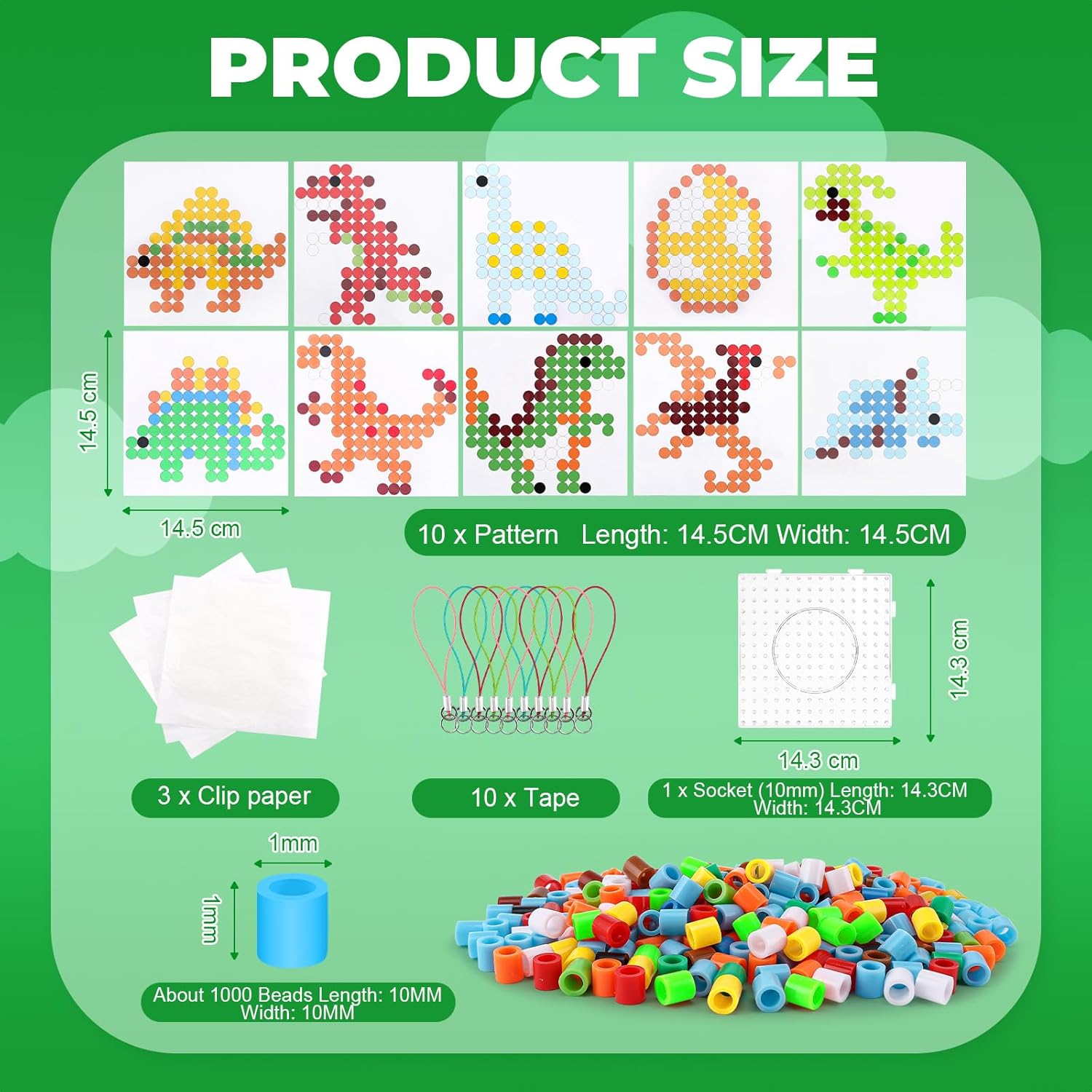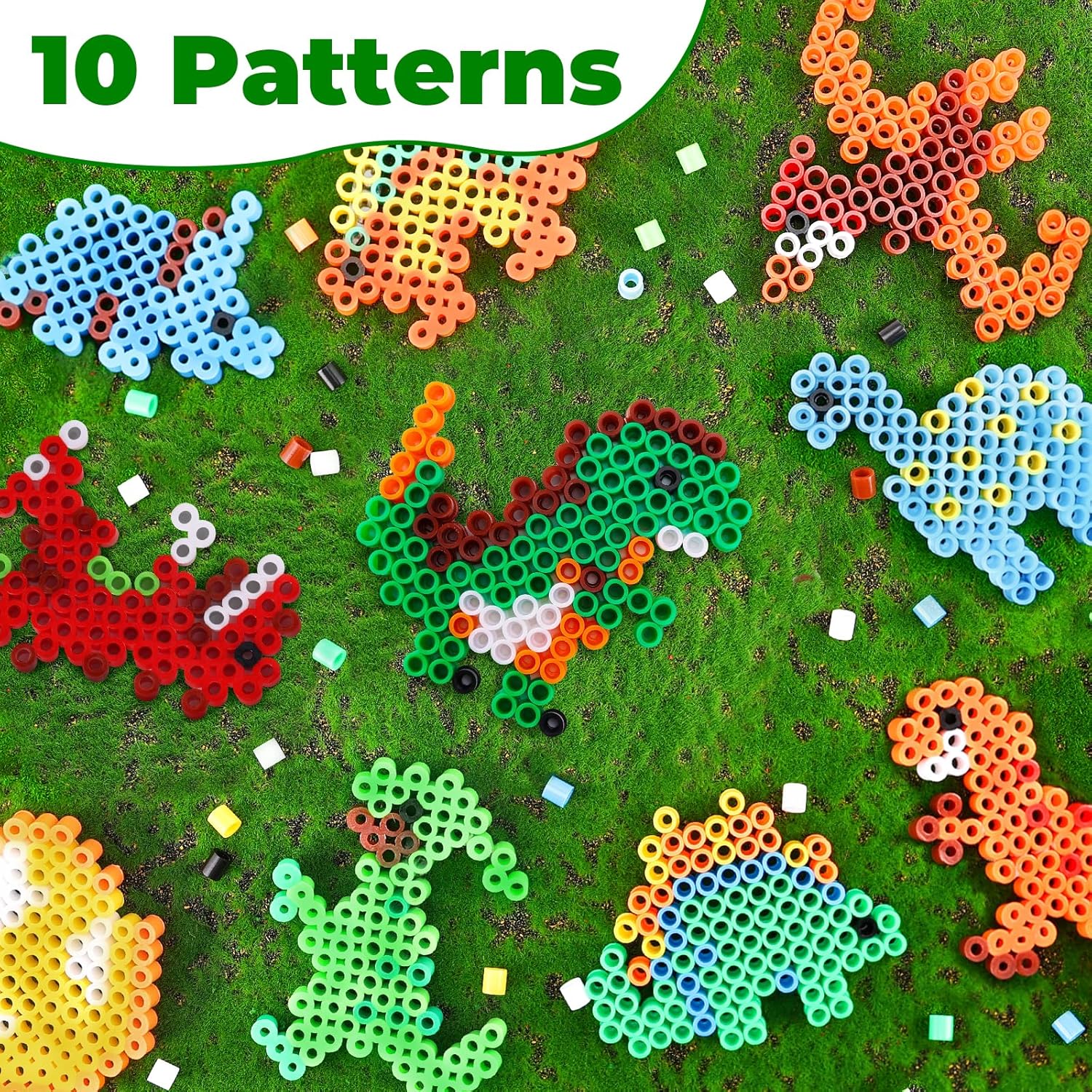 🦖 Set Esteso: Il grande set di perle da stiro contiene ca. Perfetto per artigianato creativo con bambini di 3 anni. 🦕 Materiale di Alta Qualità: Le perle da stiro da 10 mm sono realizzate in plastica robusta che non si muove o si scioglie durante la stiratura. Durevole, sicuro e perfetto per le mani piccole. 🦅 Morif di Dinosauro: Con 10 modelli di dino unici come Tyrannosaurus rex, Velociraptor, Brachiosaurus e altro ancora. I bambini possono creare le proprie opere d'arte Dino e far scattare la loro immaginazione. 🌳 Regalo Ideale: Il set è un ottimo regalo per i compleanni dei bambini, le vacanze o solo nel mezzo. Non importa se ragazzo o ragazza - ogni bambino sarà elettrizzato! 🔥 Promuove la Creatività e le Competenze: Supporta lo sviluppo della percezione del colore, del coordinamento degli occhi a mano e delle capacità motorie. Perfetto per i bambini a imparare scherzosamente ed essere creativi. Anche un hobby rilassante per gli adulti!