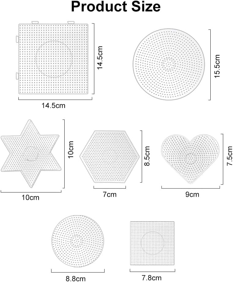 【Il set comprende】7 modelli di perle calde, tra cui 1 grande quadrato, 1 grande cerchio, 1 piccolo cerchio, 1 piccolo cuore, 1 piccolo esagono, 1 piccolo quadrato e 1 stella. Questi modelli di diverse dimensioni e forme sono sufficienti per soddisfare le esigenze creative dei bambini. 【Materiale di alta qualità】Questi modelli di miscelazione di fagioli sono fatti di materiale PS di alta qualità, che è ecologico, sicuro, atossico e inodore. Il bordo della scanalatura non è facilmente rotto, fuso o piegato durante la stiratura e può essere utilizzato per molto tempo, adatto per l'uso dei bambini. 【Facile da usare】è molto semplice da usare, basta posizionare le perline sul modello, creare modelli se necessario, coprire con carta da stiro e utilizzare un ferro da stiro per unire le perline insieme. Grazie alla sua trasparenza, i bambini possono osservare il modello completato in qualsiasi momento durante la produzione, aumentando così il loro interesse. 【Giochi di mente】Questi modelli consentono ai bambini di creare modelli diversi basati sulle proprie idee, che non solo migliorano la loro creatività e immaginazione, ma anche esercitano le loro abilità pratiche e cognitive. 【Come regalo】Questo set di assi da stiro è il regalo perfetto per i bambini. È possibile giocare e interagire con loro, e fare vari mestieri. È un regalo eccellente per compleanni, Halloween, Natale, feste, attività di campeggio indoor e outdoor, e tutte le vacanze.
