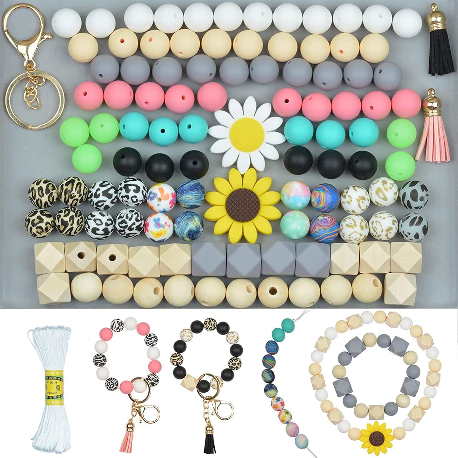 Diversi colori e quantità sufficienti sono sufficienti per soddisfare i requisiti del processo. Queste belle perline sono in silicone, non facili da indossare e sbiadire, morbide e lisce e sicure da usare. È possibile utilizzare per vari oggetti artigianali, ciondoli per borse e decorazioni da parete. Godetevi il divertimento di . Queste perline possono realizzare vari oggetti artigianali, come bracciali, portachiavi, collane, orecchini, cavigliere, pendenti. La confezione include: 105 perline, 2 perline a forma di girasole, 2 nappe, 2 clip