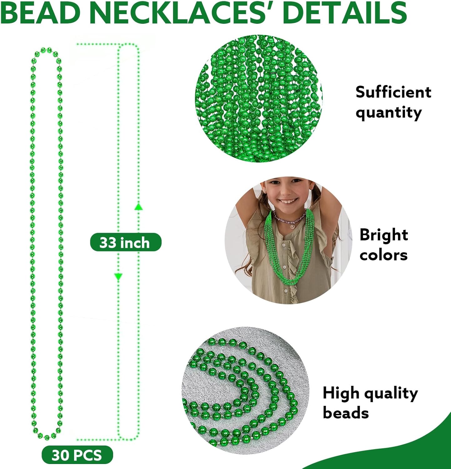 Biubumtu Perline Mardi Gras, 30 collane di perline, collana di perline da 83,8 cm, accessori per feste e parate, set di accessori per Mardi Gras, Natale, San Patrizio