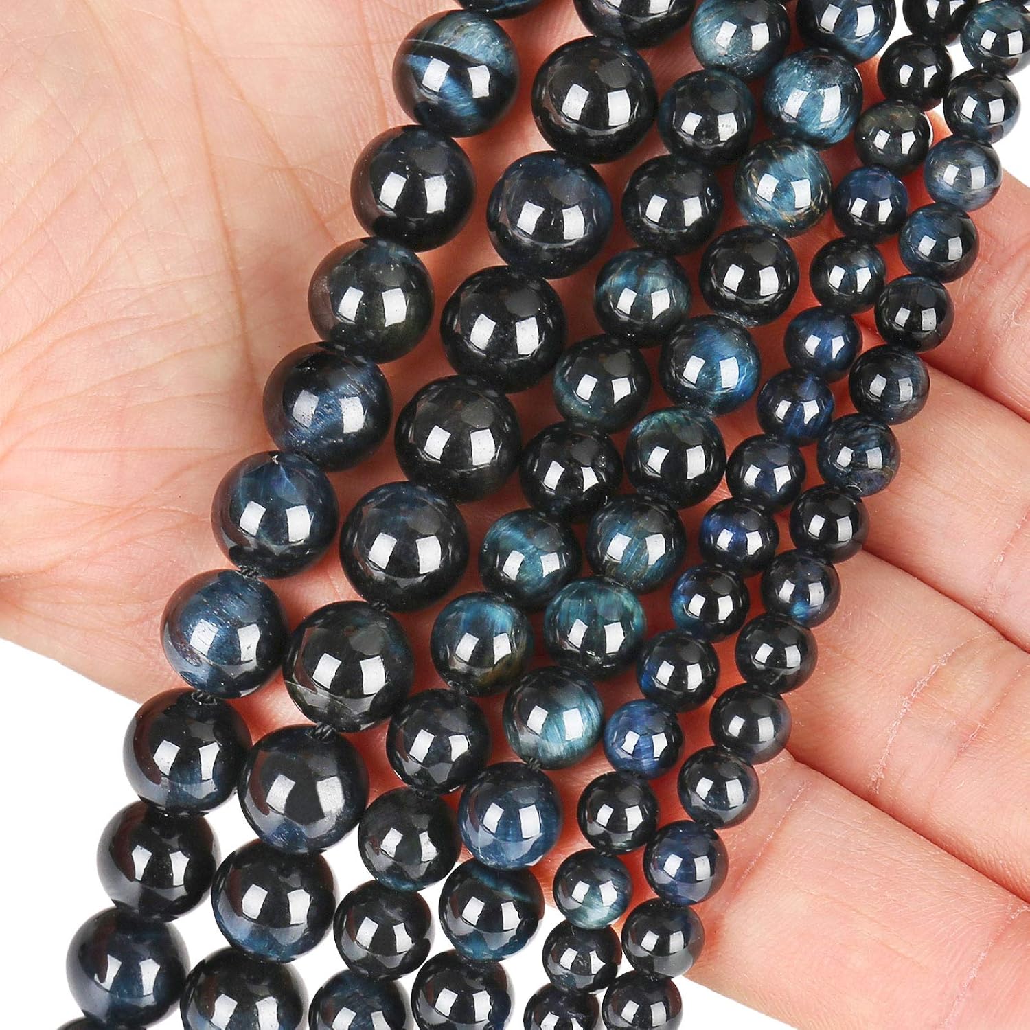 Perline naturali blu nero occhio di tigre, perline sfuse rotonde di grado AAA, 6 mm, 60 pezzi, opzioni di lotto, perline semi preziose per la creazione di gioielli