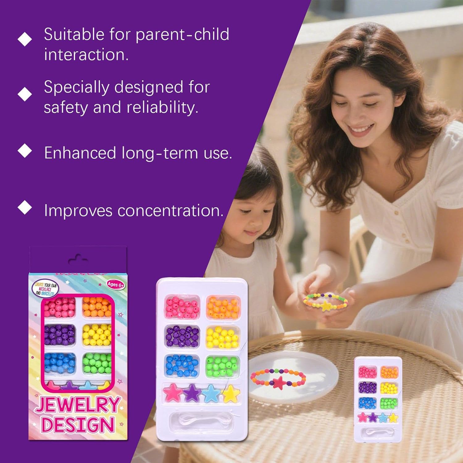 Sviluppo delle abilità semplificato: progettate per bambini dai 3 anni in su, queste perline includono un manuale illustrativo che promuove la rapida padronanza delle abilità e l'assemblaggio senza attrezzi, fornendo un'attività di rafforzamento della fiducia per tutti i principianti Opzioni di colore vivace: le perline per braccialetti presentano una selezione di colori vivaci perfetta per l'uso quotidiano, mentre attirano le preferenze estetiche dei bambini e offrono un'opportunità di condivisione sociale attraverso design creativi Regalo creativo: l'organizzazione ordinata degli scomparti migliora il design giocoso di queste perline per braccialetto, creando un fascino istantaneo per il bambino pur essendo perfettamente adatto come regalo di vacanza pronto per essere presentato o per uso personale Standard di sicurezza approvati dai genitori: progettate con proprietà antigraffio e superfici raffinate, queste perline per braccialetti consentono una maggiore usabilità e favoriscono la fiducia nei genitori sulla sicurezza dei loro bambini durante la manipolazione Sviluppo motorio fine: questo set di perline enfatizza la pratica interattiva della coordinazione dei colori, combinando un design flessibile con una varietà di perline colorate per ispirare il gioco creativo e promuovere lo sviluppo delle abilità motorie in modo naturale