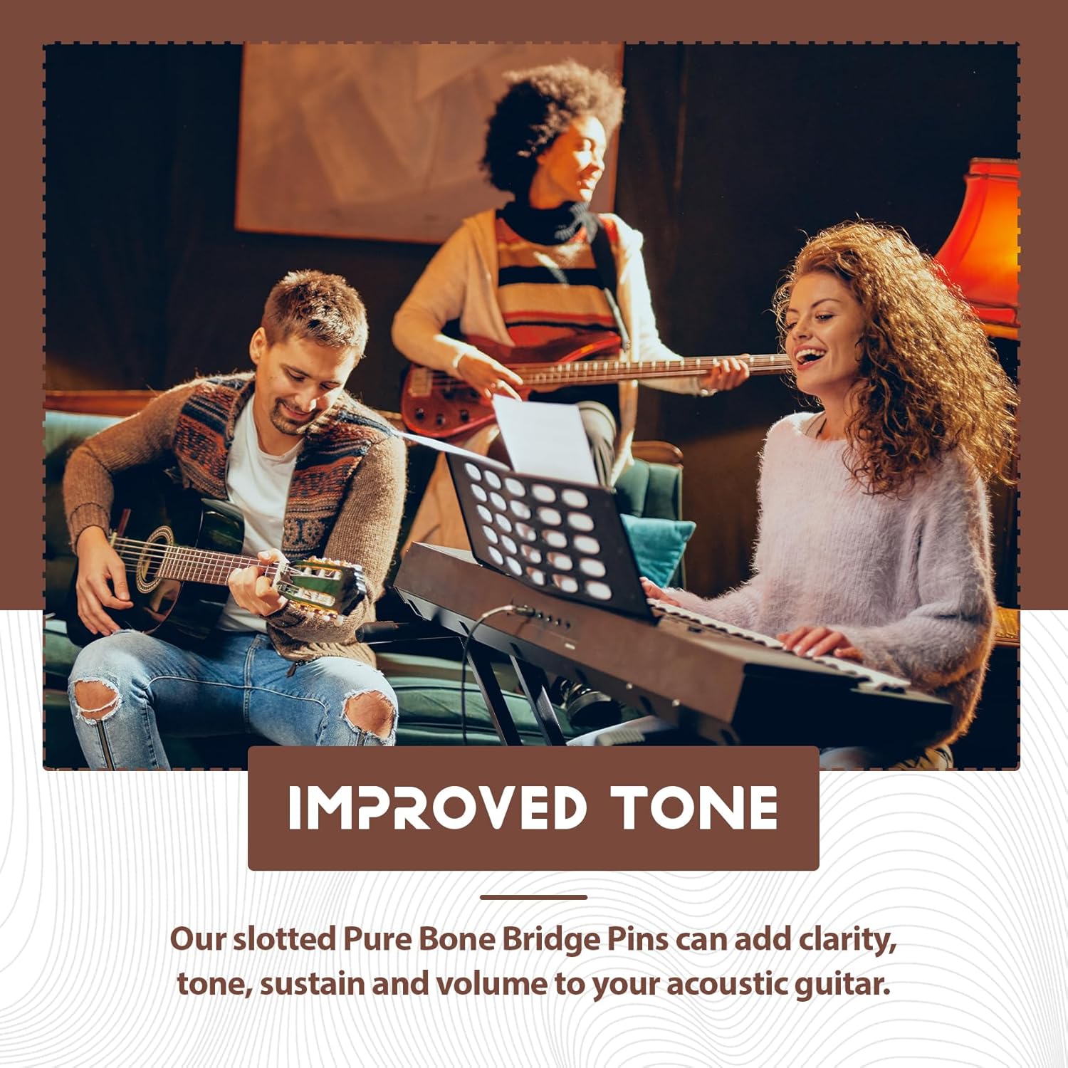 3. FATTO PER DURARE - A differenza dei perni del ponte in plastica o legno, l' non si rompe o si gonfia con l'umidità, causando la rottura del ponte. 1. TONO MIGLIORATO - I nostri perni a ponte in puro possono aggiungere chiarezza, tono, sostegno e volume alla tua chitarra acustica. 2. ESTETICA MIGLIORATA - Migliora l'aspetto della tua chitarra con i nostri perni per in di bue finemente realizzati con inserto in abalone. 4. FACILE DA RIMUOVERE - Rispetto ai perni a basso profilo, i nostri perni a ponte in puro sono dotati di un colletto pronunciato per una facile rimozione. 5. Questi perni del ponte possono sostituire quelli persi o rotti, sono un ottimo accessorio per la tua chitarra acustica.