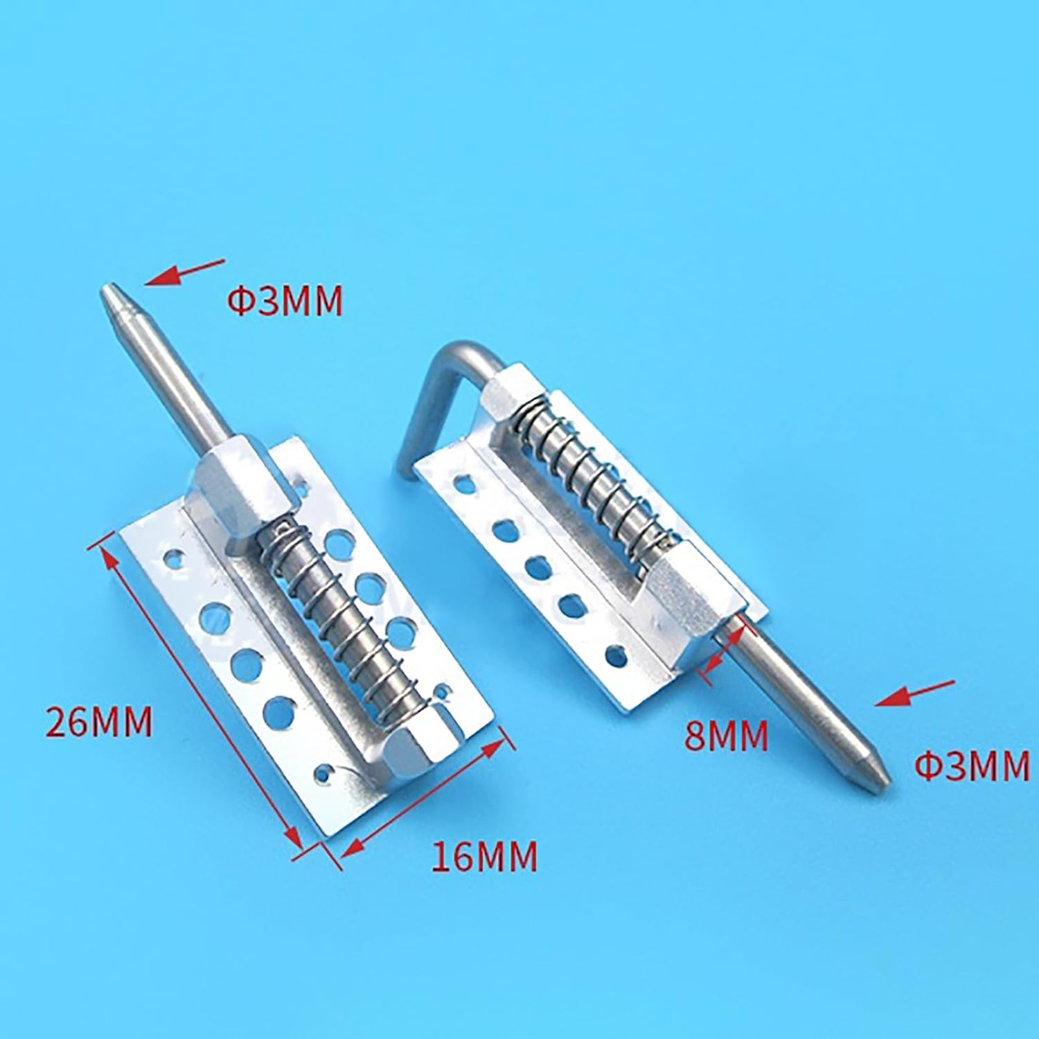 Perno di bloccaggio a molla for tettuccio for aerei RC e droni Dimensioni: 26 mm di lunghezza, 16 mm di larghezza, 8 mm di altezza; diametro del perno 3 mm Leggero, circa 5,4 g; costruzione in lega di alluminio Disponibile con testa dritta o piegata Ideale for aerei F3A e altri modelli di aeromobili o portelli for UAV