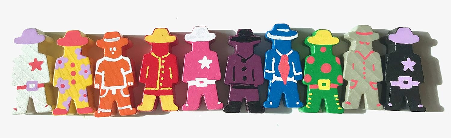 Spieltz Materiale di gioco per giochi da tavolo: persone con cappello/cowboy/agricoltori/lavoratori in legno in 10 diversi colori: bianco, giallo, arancione, rosso, rosa, viola, blu, verde, grigio, nero. Confezione da 50 pezzi (5 figure di ogni colore) Dimensioni: 15 x 30 x 8 mm. I personaggi sono più grandi dei coni standard e hanno un'ottima stabilità. Sono anche facili da afferrare. Personaggi fai da te: le pedine sono piatte nella parte anteriore e posteriore, possono essere incollate individualmente con adesivi o foto. Dipingere i personaggi del gioco: i personaggi si possono dipingere bene, preferibilmente con buone penne acriliche o pennarelli a base d'acqua con punta fine. Piacevoli da usare, poiché sono piatti sul tavolo durante la lavorazione. In questo modo possono essere creati personaggi speciali e individuali. Materiale: legno proveniente da foreste sostenibili. Vernici a base idrosolubile. Prodotto in Germania. Prodotto secondo le severe direttive della norma di sicurezza europea EN-71 (sicurezza dei giocattoli), è conforme alla direttiva 2005/84/CE (ftalati).