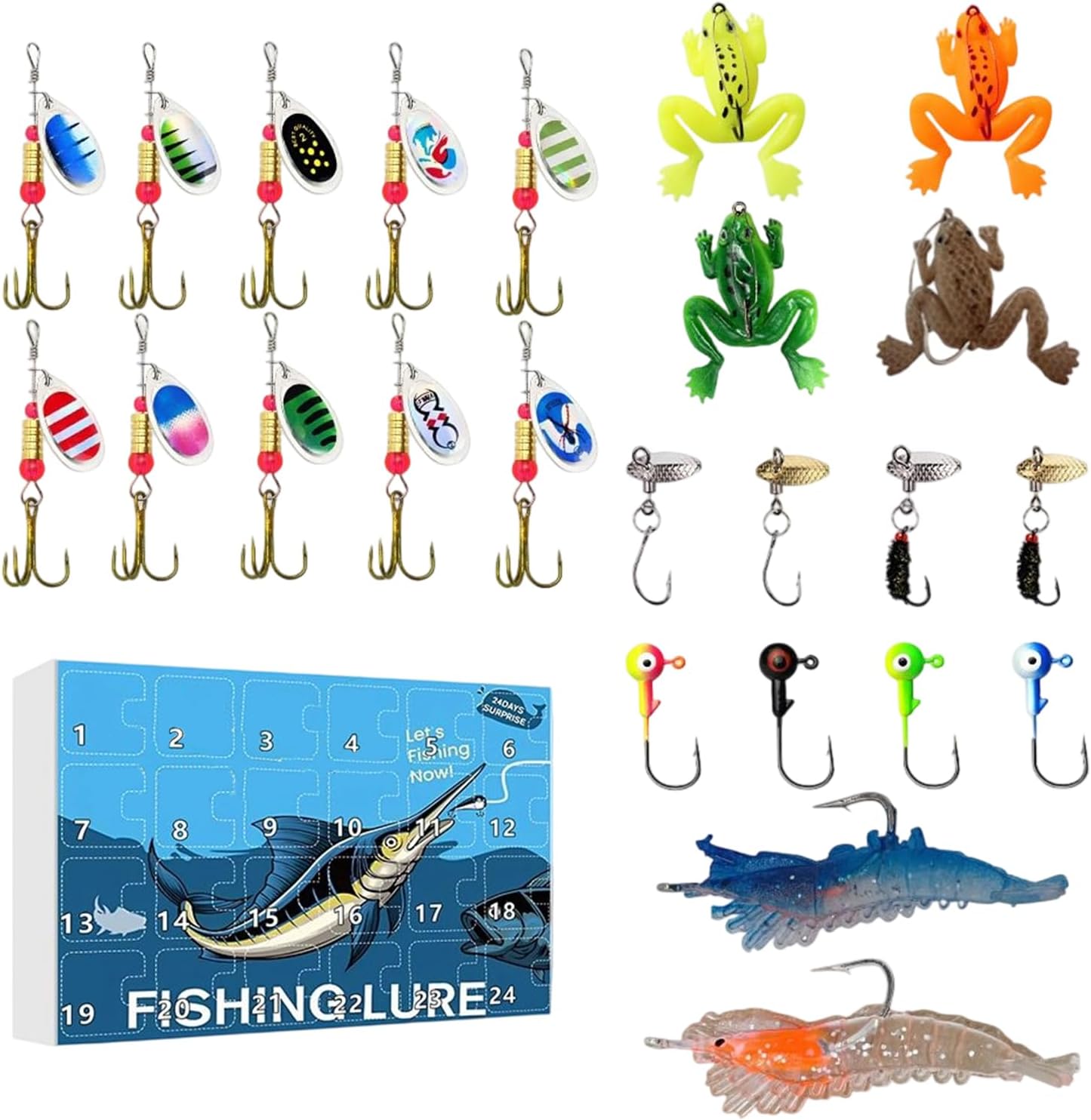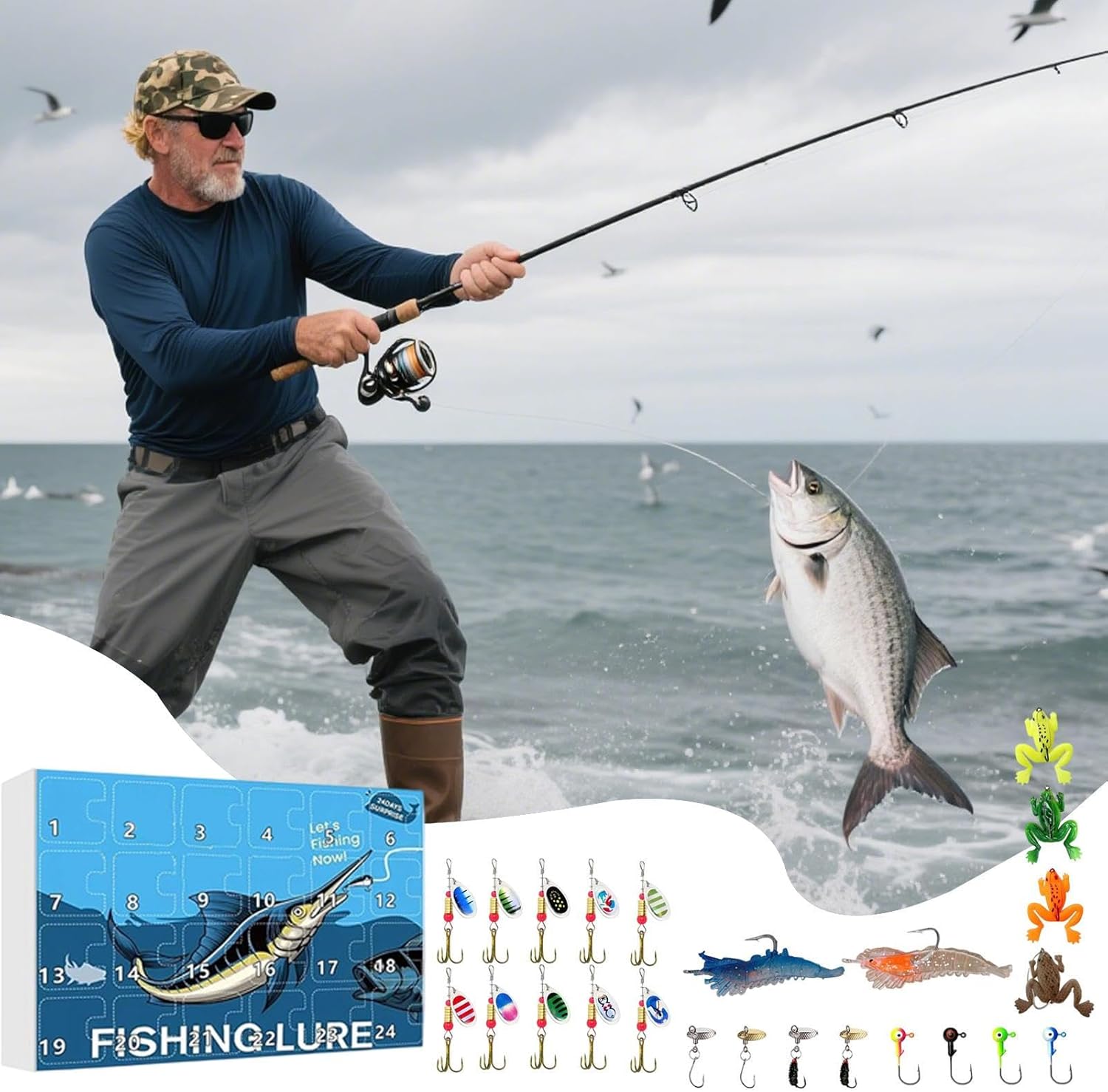 Pesca natalizia interattiva: goditi un calendario festivo per il conto alla rovescia con un'esperienza di pesca giocosa che offre nuove sorprese ogni giorno e cattura lo spirito magico delle festività natalizie. Soluzione compatta per la pesca: con un ricco contenuto progettato per i pescatori, questo calendario dell'Avvento offre uno spazio portatile che include esche da pesca e accessori, soddisfacendo le esigenze di base e garantendo una preparazione senza sforzo per le battute di pesca. Scelta ideale del regalo festivo: Progettato per le aspettative del regalo di Natale, combina praticità e spirito natalizio come una confezione regalo versatile con ampia applicabilità per diverse fasce d'età durante le festività natalizie Strumento di scoperta basato su scenari: Incoraggia la curiosità con un conto alla rovescia interattivo che ispira la preparazione per avventure all'aria aperta e crea preziosi legami familiari attraverso attività di pesca condivise Ampia usabilità: La combinazione di fascino visivo, design accurato e temi natalizi e di pesca rende questa squisita confezione festiva presentata come calendario dell'Avvento un'opzione regalo versatile e divertente.