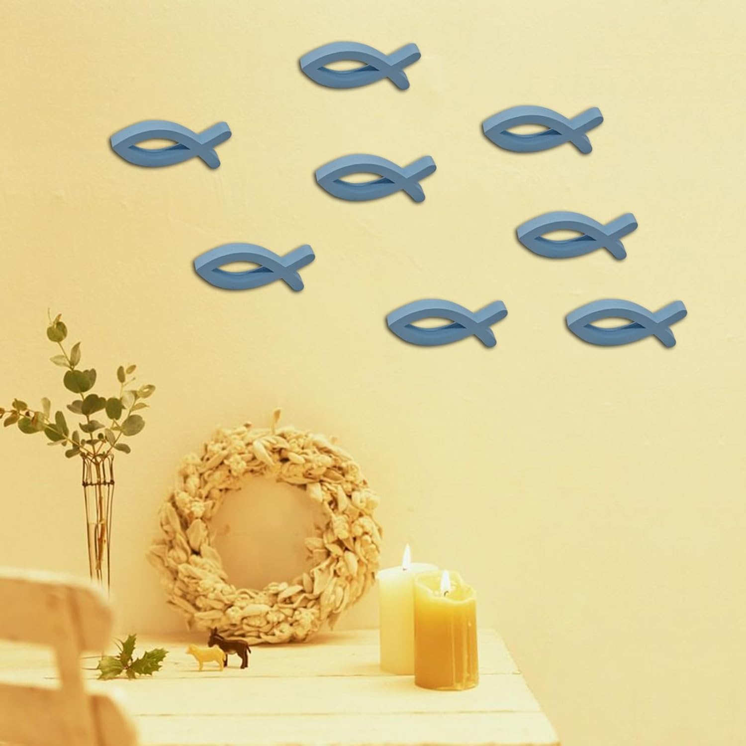 Materiali in legno, questi ciondoli sono resistenti alla ruggine e facili da usare Adatto a coloro che apprezzano i decori religiosi, sono un'ottima aggiunta a qualsiasi collezione Migliora il fascino della tua stanza e sorprendi un amico con questi ciondoli a forma di pesce Queste decorazioni a forma di pesce sono meticolosamente con materiali pregiati Porta ispirazione a qualsiasi spazio con queste decorazioni a forma di pesce