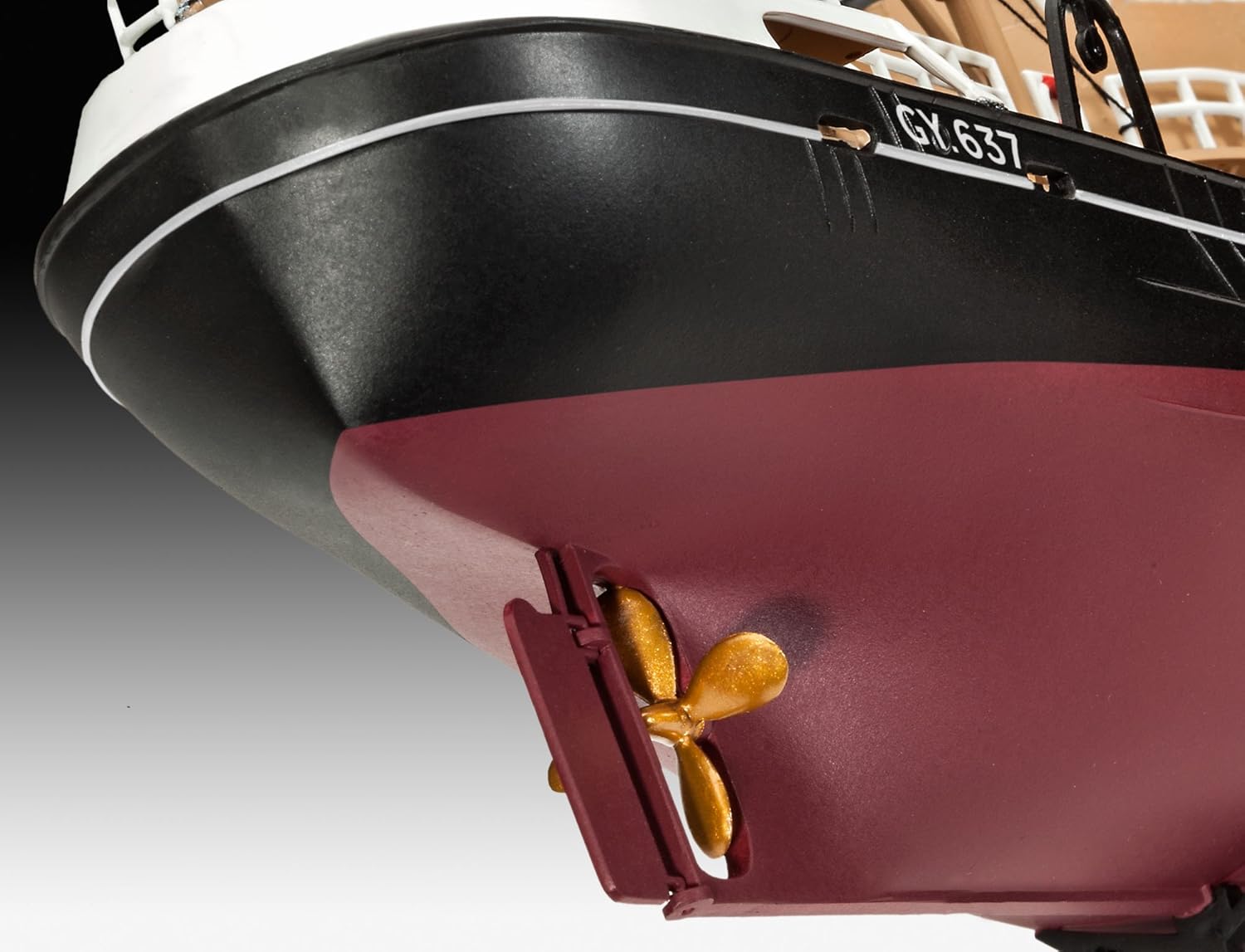Descrizione prodotto: Modello da incollare, assemblare e dipingere. 61 pezzi da assemblare per una lunghezza finita di 37,3 cm. Da Terranova alla Norvegia, le flotte europee di pescherecci da traino sono al lavoro 24 ore su 24, combattendo il mare e gli elementi spietati. Durante una crociera di tre settimane, un peschereccio dedica solo circa una settimana alla pesca vera e propria, mentre il resto del tempo viene impiegato viaggiando da e verso le rive di pesca. Gli attuali pescherecci da traino sono dotati delle più moderne attrezzature di navigazione, ecoscandagli e rilevatori automatici di banchi di pesce, che forniscono informazioni sulla dimensione delle possibili catture. I pescherecci da traino di questo tipo tirano le reti alla loro destra (a tribordo). Equipaggio: 19 uomini. Età minima: 10 anni Contenuto della confezione: modellino cluster smontato, decalcomanie, istruzioni di montaggio