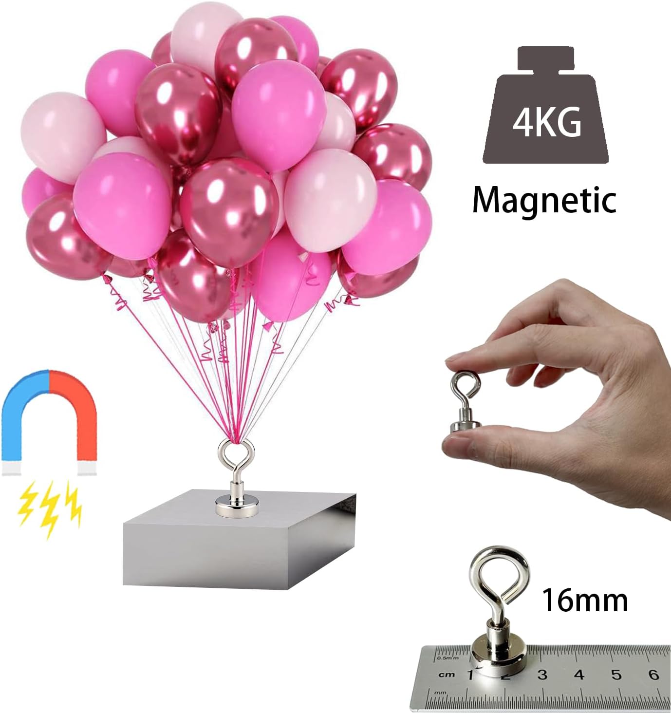 Nota: un peso per palloncino pesa solo circa 12 g. Il centro di questo pendente a palloncino contiene un magnete. Deve essere assorbito dalla superficie di oggetti metallici per essere utilizzato come bilancia. Il suo peso non è in grado di ottenere l'effetto di un palloncino bilanciato. La confezione include: Riceverai 12 pesi magnetici per palloncini e 2 blocchi di ferro (ciascuno da 100g). Come si usa: Il peso magnetico per palloncino può essere fissato a ringhiere, sedie e tavoli in ferro. Può sopportare una trazione massima di 4 kg. (Puoi anche usare prodotti in ferro come dadi in casa per aumentare il peso). Carini: Questi piccoli pesi magnetici per palloncini sono adorabili. Sono piccoli, leggeri e non occupano molto spazio, il che li rende ideali da usare come centrotavola senza oscurare il resto dell'allestimento. Facili da usare: Le nostre basi per palloncini sono facili da montare e da rimuovere. Che tu le usi per disporre i palloncini a una festa o per attaccare post-it al frigorifero, hanno tutto ciò che ti serve!