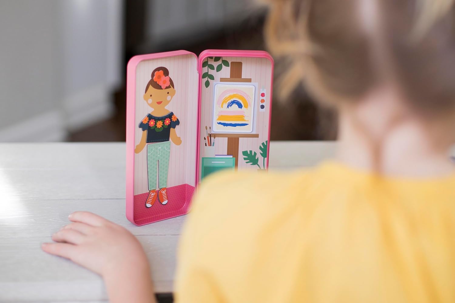 Amante del colore. Sognatore ad occhi Pensatore positivo. Progettato per ispirare i bambini a sognare in grande e brillare luminoso! Si apre per presentare un artista con scena artistica e accessori magnetici inclusi Utilizzando i pezzi magnetici inclusi, accessoriare il tuo artista e la scena artistica Il set include 2 scene con 25 pezzi magnetici Il set viene confezionato in una scatola di latta resistente che è perfetta per il divertimento in movimento!