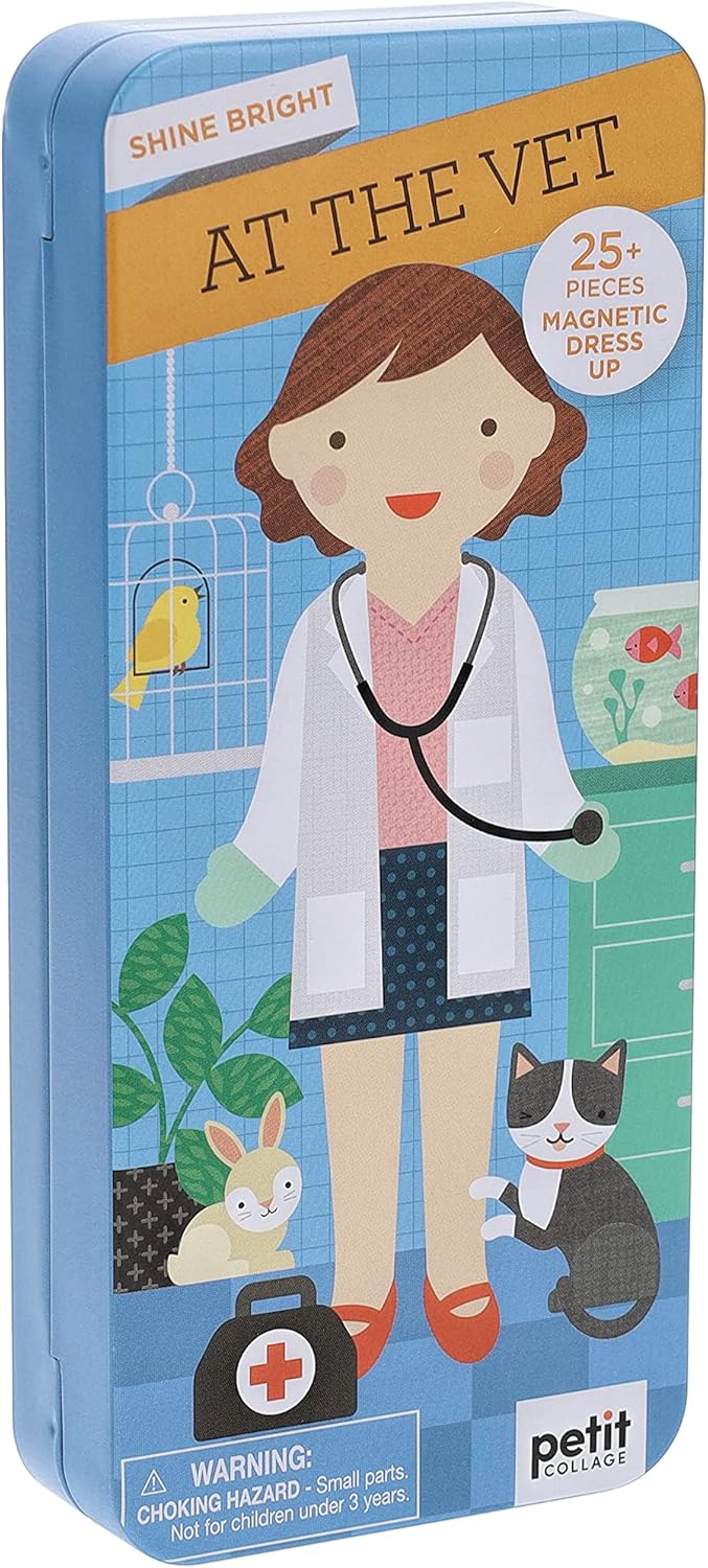 Playset magnetico – Ispira il tuo piccolo amante degli animali a diventare un veterinario con questo set di gioco magnetico luminoso At The Vet Shine di Petit Collage GIOCO IMMAGINATIVO: dotato di 2 scene e 29 pezzi magnetici in una scatola portatile, questo set è progettato per ore di gioco fantasioso, sia a casa che in viaggio. Il tuo piccolo adorerà immaginare storie su tutti gli animali che hanno bisogno di cura! Regalo ideale per bambini: adatto per bambini dai 3 anni in su, questo set magnetico di Petit Collage è un'ottima idea regalo per divertirsi senza schermo per i bambini piccoli Progettato pensando – Con una confezione senza plastica, i nostri set da gioco magnetici Shine Bright sono progettati per incoraggiare i bambini a sognare grandi e brillare luminoso Petit Collage – Petit Collage è un buon design. Combiniamo un'estetica moderna con criteri di sostenibilità per creare prodotti audaci e premurosi per deliziare i più piccoli. Ci sforziamo di rendere i nostri prodotti belli e divertenti in uguale misura