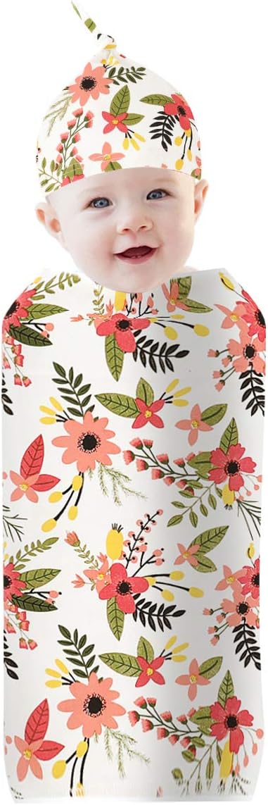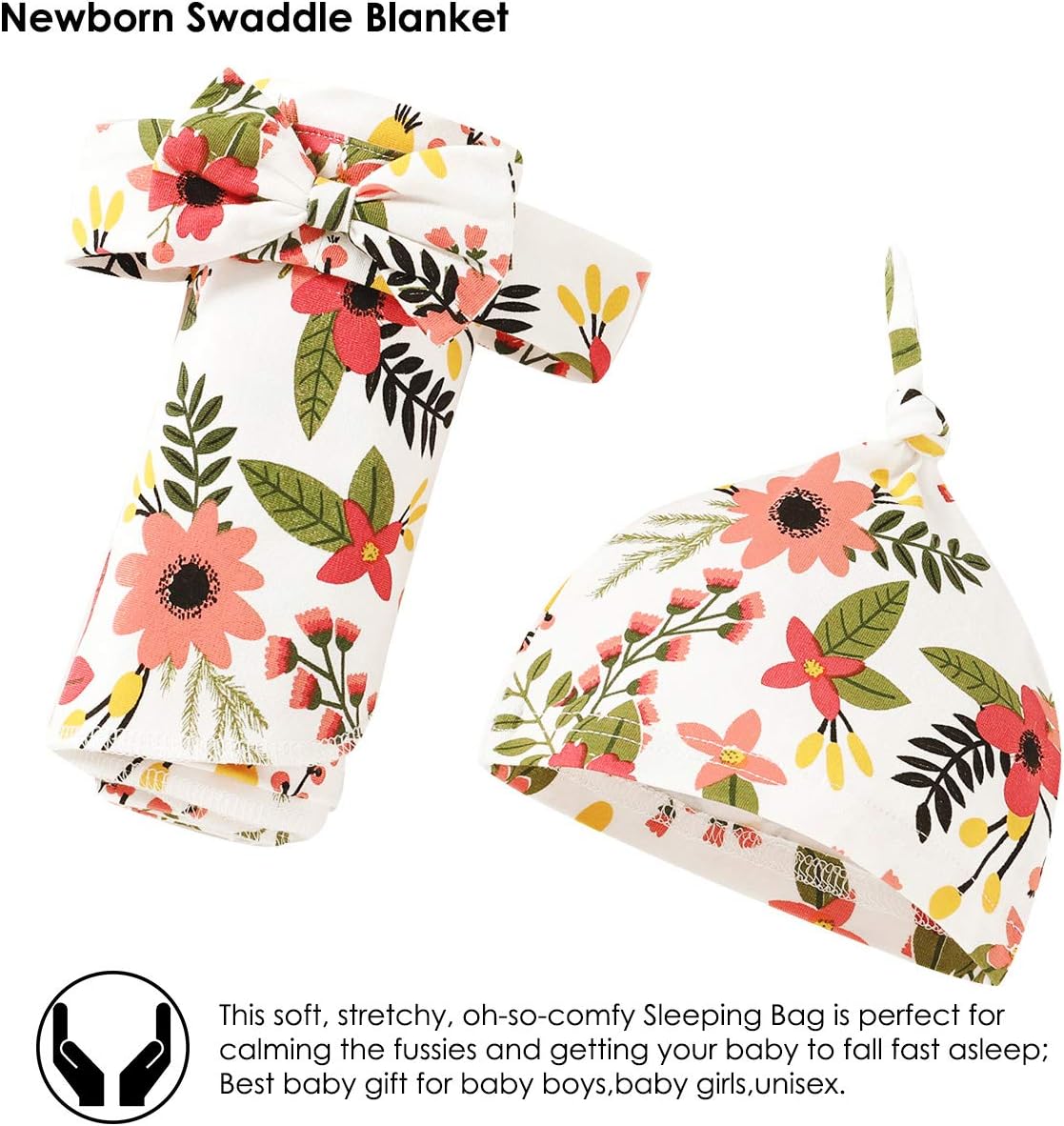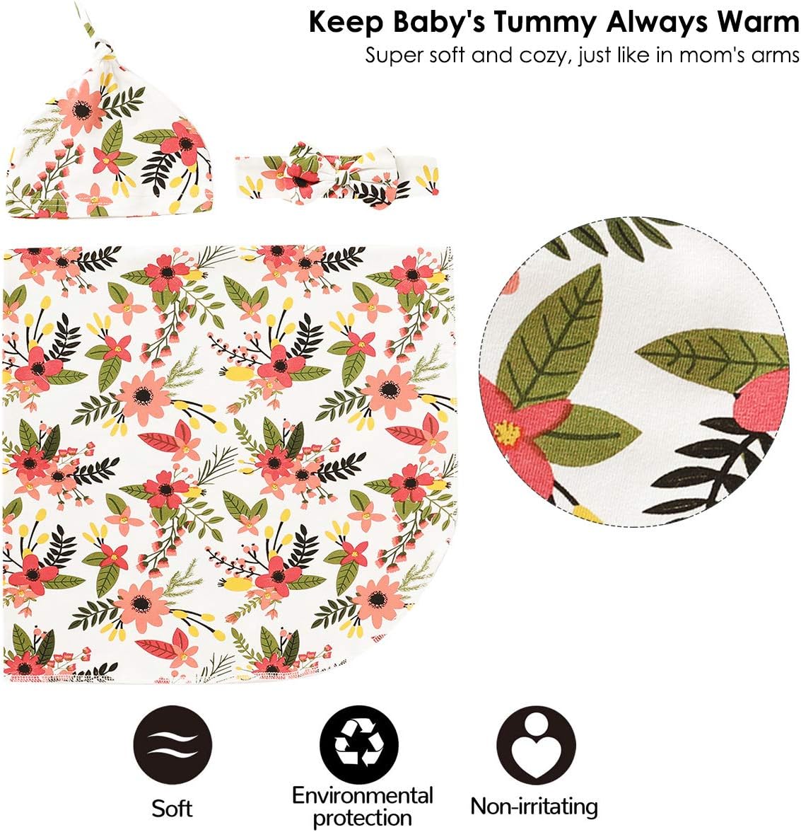RUOLI VERSATILI: progettati per essere versatili, possono essere usati come fasce per bambini, coperte per neonati, telo da bagno, fodere per passeggino, oggetti di scena per foto, regali per baby shower ecc. TESSUTO SUPER SOFT: realizzato al 100% in tessuto di cotone di alta qualità, super morbido, traspirante, confortevole e accogliente, sicuro e delicato per la pelle sensibile del bambino. DIMENSIONE GENEROSA: misura 35,4x29,5, abbastanza grande per luso da parte di neonati, avvolge senza sforzo tutto il corpo del bambino compresi braccio e gambe con semplici passaggi. PACCHETTO INCLUSO: 1pz coperta floreale swaddle, cappello coordinato 1pc e fascia coordinata 1pc, adatto per neonati 0-3 mesi.