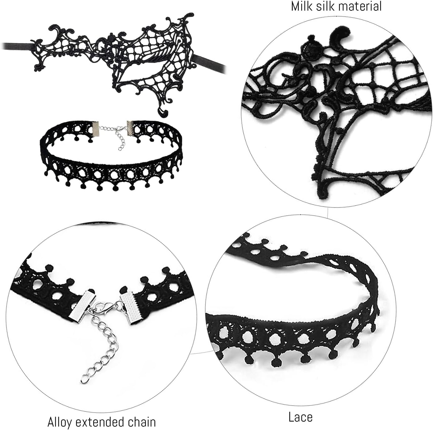 【Contenuto Del Prodotto】 Ottieni 1 Maschera Per Gli Occhi In Pizzo Vuoto E 1 Collare Nero. La Maschera Per Gli Occhi È Di Circa 22*12 Cm E Il Colletto È Di Circa 20 Cm. 【Materiale Del Prodotto】 Questo Prodotto È Realizzato In Pizzo Che È Traspirante, Morbido E Confortevole Da Indossare. Il Materiale Di Alto Livello Non Solo Aumenta L'Estetica E La Moda Del Prodotto, Ma Garantisce Anche La Loro Durata E Comfort A Lungo Termine, Il Che Lo Rende Ideale Per Gli Abiti Da Festa. 【Design Alla Moda】 Questo Prodotto È Unico, Con Maschere Per Gli Occhi A Punta Vuota E Il Colletto Superiore, Che Aggiungono Un Temperamento Misterioso Ed Elee. Il Design A Metà Lato Della Maschera Per Gli Occhi E Gli Squisiti Dettagli Migliori Del Colletto Lo Rendono L'Accessorio Perfetto Per Una Varietà Di Abiti, In Particolare Per Feste A Tema, Mascherate E Altri Eventi. 【Ampliato】 Questo Prodotto Non È Solo Adatto A Feste E Occasioni Speciali, Ma Anche Come Decorazione Quotidiana Per Dare Al Tuo Outfit Un Fascino Unico. Indipendentemente Dal Fatto Che Siano Combinati Con Abiti Da Sera O Abbigliamento Per Il Tempo Libero, Può Mostrare La Tua Personalità E Il Gusto Della Moda Ed È Un Must Nella Collezione Di Accessori Di Ogni Signora. 【Facile Assumere】 Questo Prodotto È Facile Da Pulire E Attendere Dopo L'Uso E Il Materiale Superiore È Facile Da Pulire.