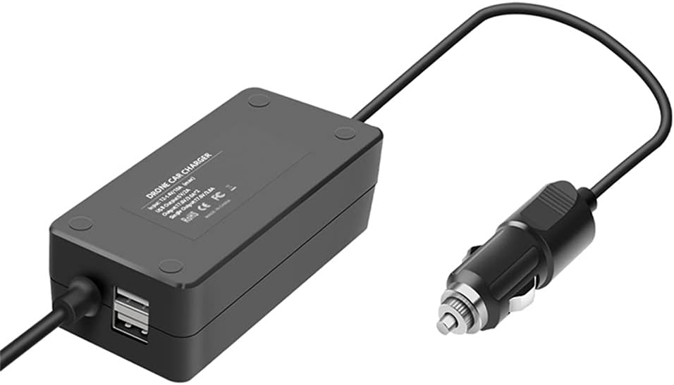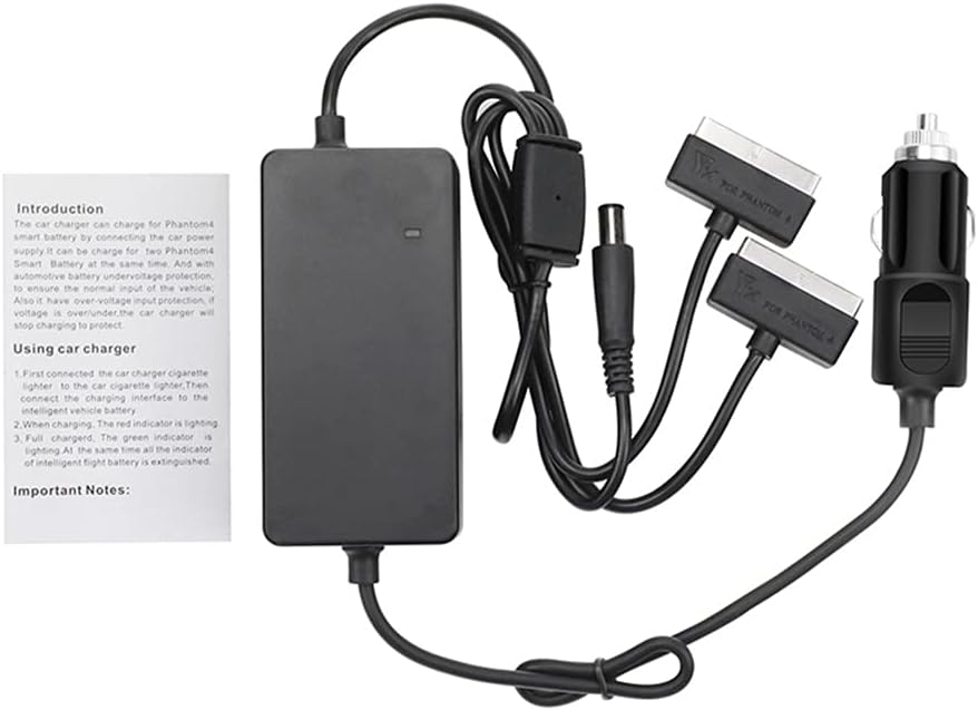 1. Fast Car Charger appositamente progettato per batterie e trasmettitori del drone Phantom 4 serie RC 2. 3 in 1 caricabatteria da auto, carica due Phantom 4 / PRO + batterie avanzate e un telecomando allo stesso tempo. 3. Tempo di ricarica: una batteria circa 70 minuti, 2 batterie circa 100 minuti. 4. Ingresso: 12 – 16,0 V/10 A, uscita DC: 17,4 V 6,6 A (nota: una batteria è 5,5 A; due batterie contemporaneamente sono 3,3 A x 2) 5. Elenco del pacchetto: 1* caricatore rapido per auto (batteria e trasmettitore non incluso)