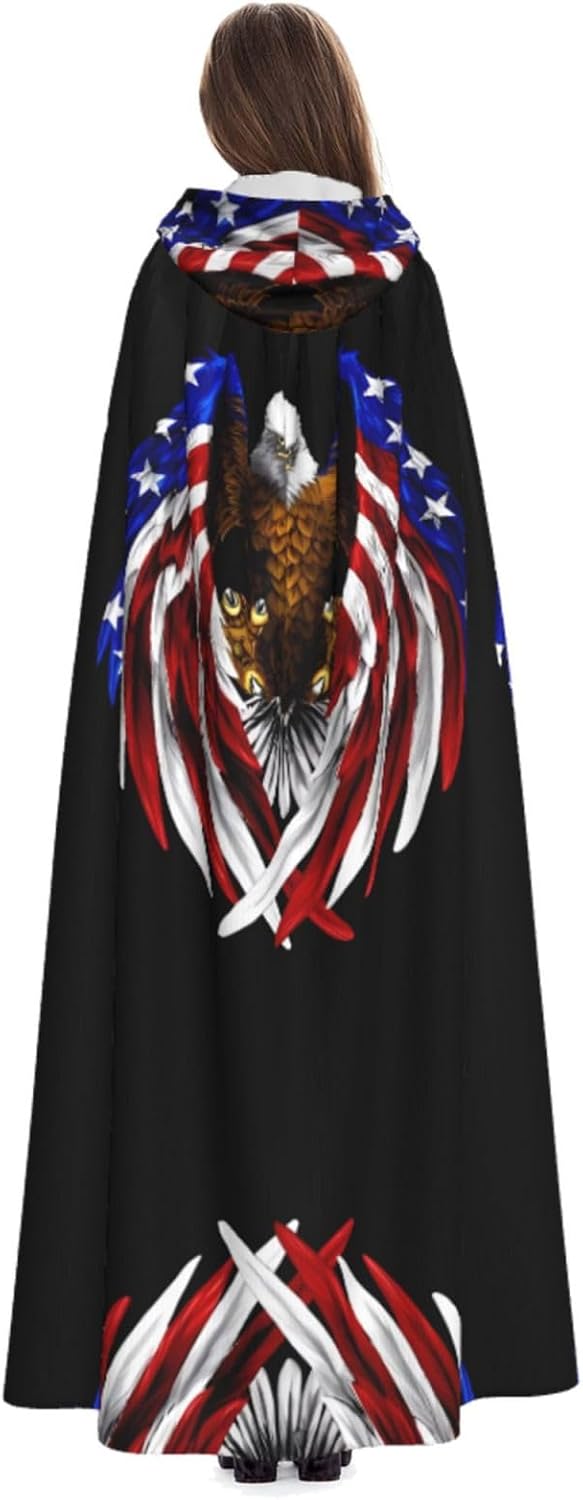 Mantello decorativo per feste con bandiera degli Stati Uniti, con papillon e senza cerniera, adatto per Halloween, cosplay, costume da palcoscenico, mascherata, feste a tema, balli, fumetti, ecc.