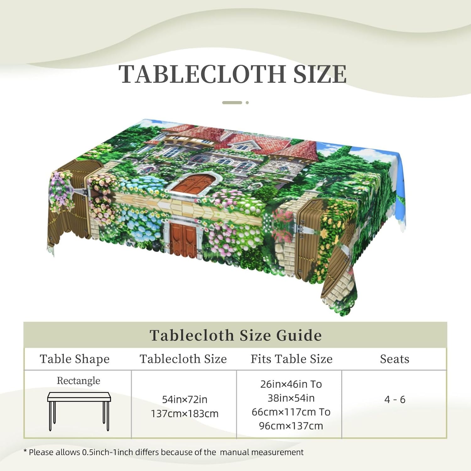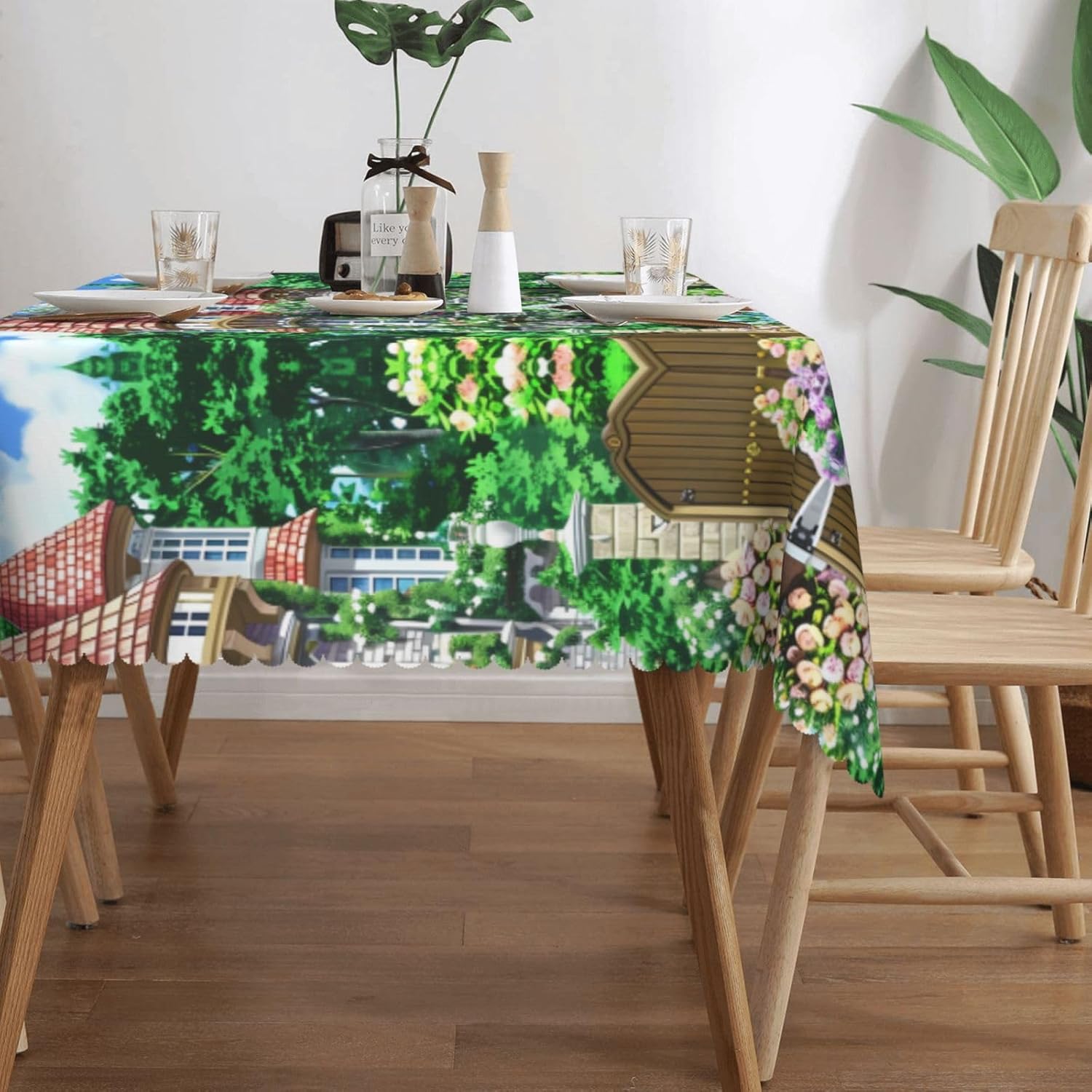 Bellissimo motivo: questa tovaglia è stampata con un bellissimo motivo floreale sulla parete, che illuminerà la tua sala da pranzo, soggiorno e patio con un aspetto fresco. Materiale di alta qualità: questa tovaglia da 137x183 cm è realizzata in tessuto di poliestere di alta qualità, resistente alle pieghe, all'acqua e durevole. Proteggi il tavolo: con questa tovaglia, il tuo tavolo non sarà facilmente macchiato da oli e salse. Inoltre protegge il tuo tavolo da graffi e urti e lo fa sembrare nuovo. Adatto a molteplici occasioni: adatto per ogni occasione a casa, festa, hotel, ristorante, bar, cucina, patio o sala da pranzo. Puoi trovare la tovaglia giusta da abbinare a stoviglie, posate, tovaglioli, tovagliette e altre decorazioni. Resistente e adatta per uso interno ed esterno. Istruzioni per la cura: basta pulire con un panno umido per mantenere la tovaglia fresca e pulita. Lavare in lavatrice in acqua fredda, non candeggiare. Se necessario stirare a bassa temperatura dal rovescio della tovaglia