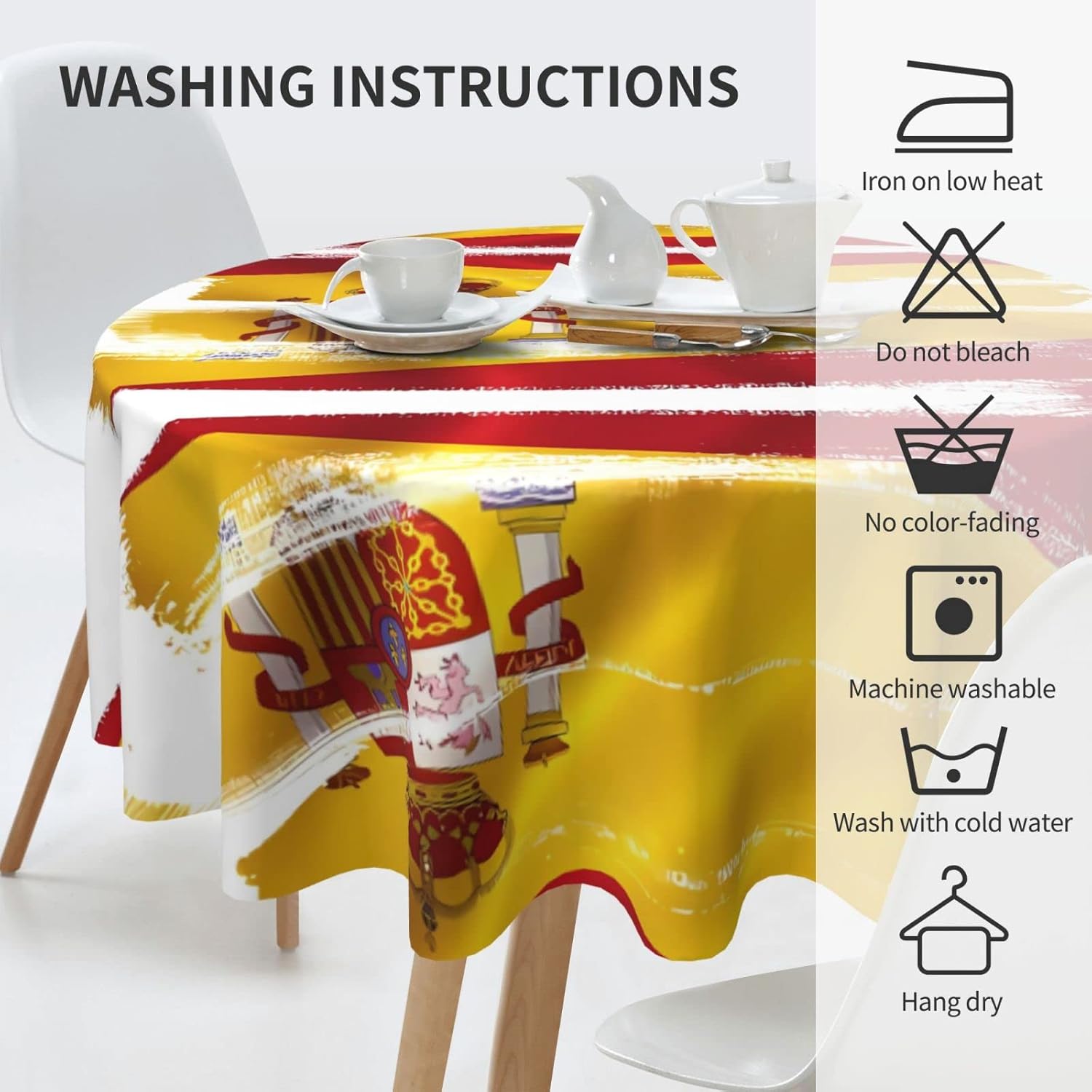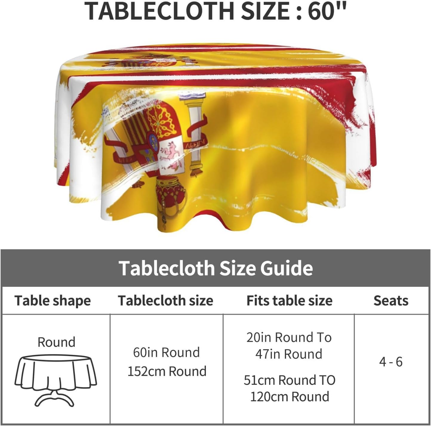 Bellissimo motivo: questa tovaglia è stampata con un bellissimo motivo a bandiera della Spagna che illuminerà la tua sala da pranzo, il soggiorno e il patio con un look fresco. MATERIALE DI ALTA QUALITÀ: questa tovaglia da 60" x 60" è realizzata in tessuto di poliestere di alta qualità, resistente alle pieghe, alle macchie, all'acqua e durevole. Proteggi la tavola: Con questa tovaglia la tua tavola non si sporcherà facilmente con oli e salse. Inoltre protegge il tuo tavolo da graffi e urti e lo fa sembrare nuovo. Adatto a molteplici occasioni: adatto per ogni occasione a casa, festa, hotel, ristorante, bar, cucina, patio o sala da pranzo. Puoi trovare la tovaglia giusta da abbinare a stoviglie, posate, tovaglioli, tovagliette e altre decorazioni. Durevole e adatto per uso interno ed esterno. Istruzioni per la cura: basta pulire con un panno umido per mantenere la tovaglia fresca e pulita. Lavare in lavatrice in acqua fredda, non candeggiare. Se necessario stirare a bassa temperatura dal rovescio della tovaglia.
