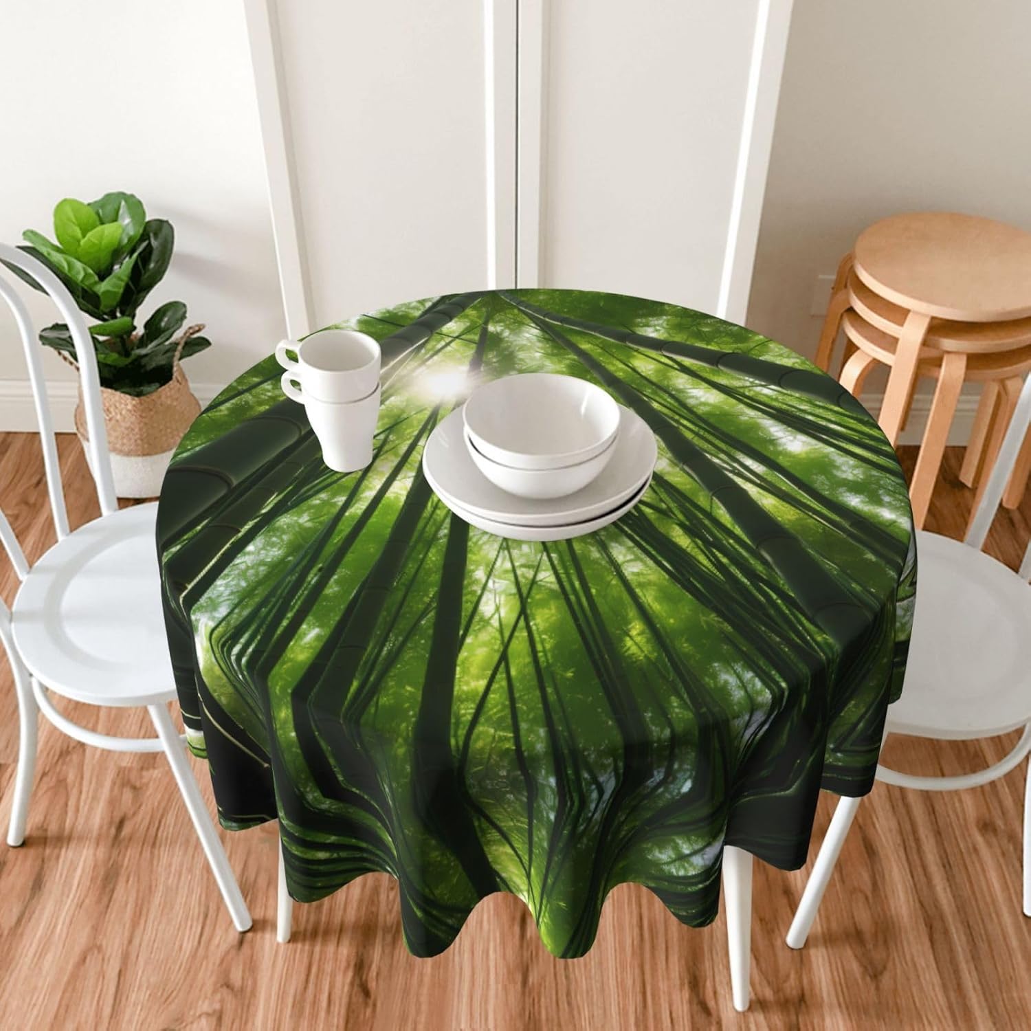 Bellissimo motivo: questa tovaglia è stampata con un bellissimo motivo a foresta di bambù che illuminerà la tua sala da pranzo, il soggiorno e il patio con un look fresco. MATERIALE DI ALTA QUALITÀ: questa tovaglia da 60" x 60" è realizzata in tessuto di poliestere di alta qualità, resistente alle pieghe, alle macchie, all'acqua e durevole. Proteggi la tavola: Con questa tovaglia la tua tavola non si sporcherà facilmente con oli e salse. Inoltre protegge il tuo tavolo da graffi e urti e lo fa sembrare nuovo. Adatto a molteplici occasioni: adatto per ogni occasione a casa, festa, hotel, ristorante, bar, cucina, patio o sala da pranzo. Puoi trovare la tovaglia giusta da abbinare a stoviglie, posate, tovaglioli, tovagliette e altre decorazioni. Durevole e adatto per uso interno ed esterno. Istruzioni per la cura: basta pulire con un panno umido per mantenere la tovaglia fresca e pulita. Lavare in lavatrice in acqua fredda, non candeggiare. Se necessario stirare a bassa temperatura dal rovescio della tovaglia.