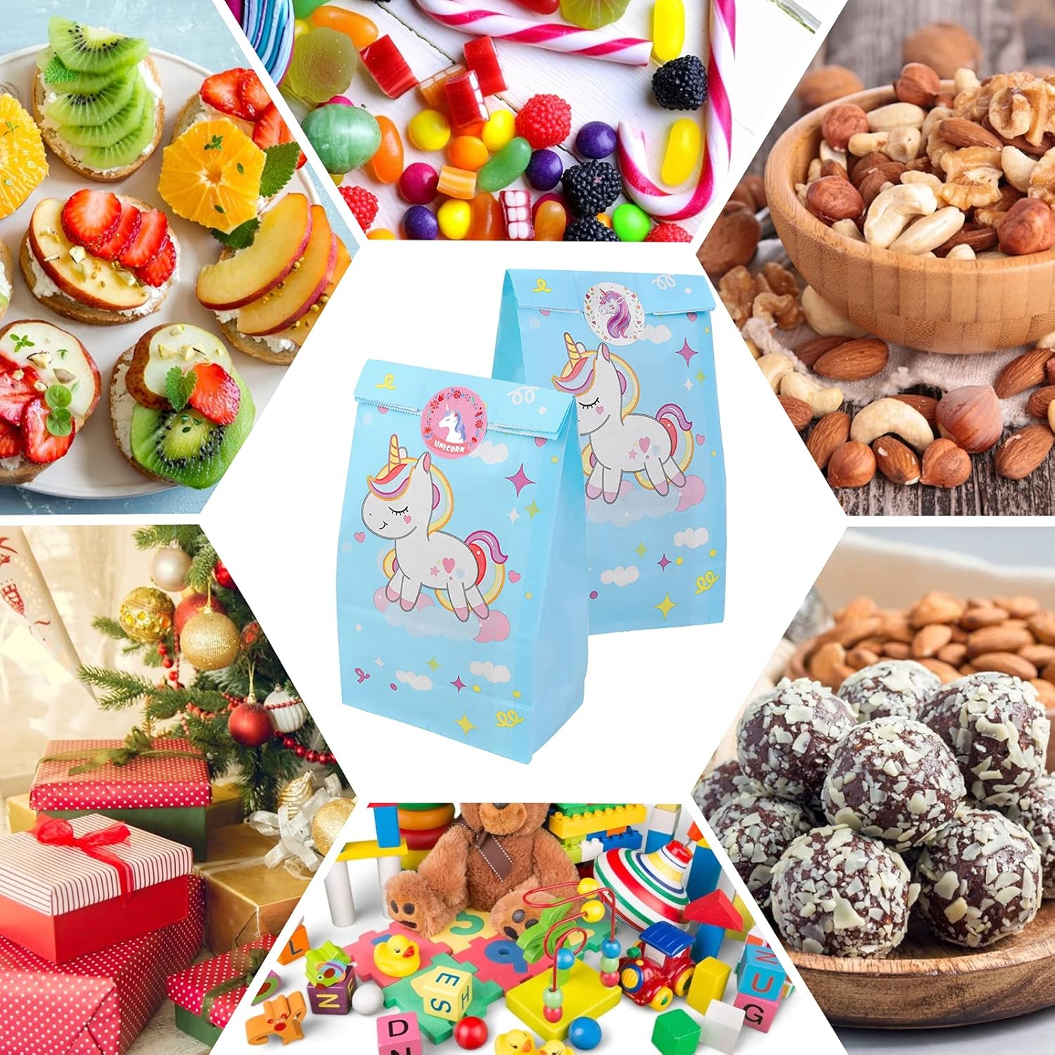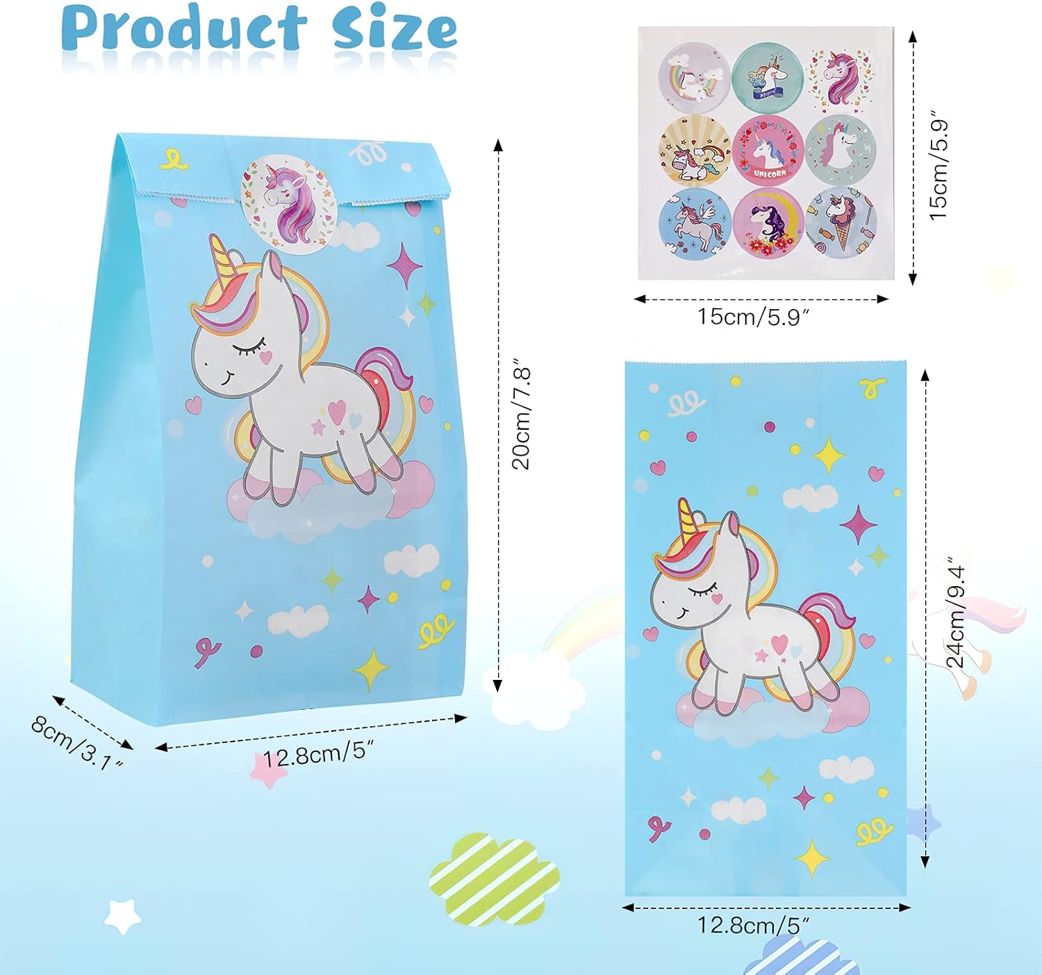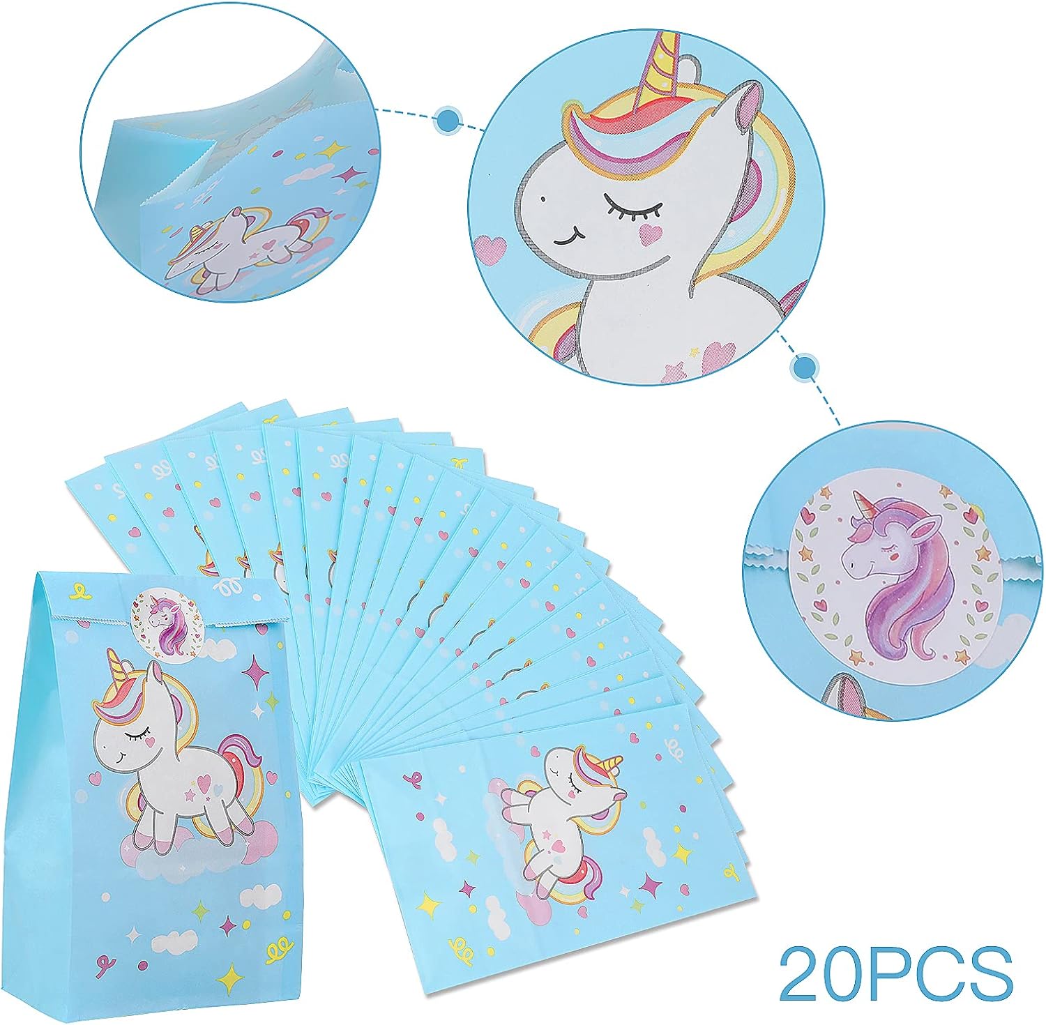 🌈Queste borse da festa con unicorno sono ideali se stai pianificando una festa di compleanno, un baby shower o un altro evento o celebrazione. Porteranno sicuramente sorrisi alla tua famiglia e ai tuoi ospiti. 🌈La confezione include: 20 sacchetti regalo per unicorno e 45 adesivi di ringraziamento con unicorno con disegni di unicorno molto carini e belli. 🌈Sacchetti per feste con unicorno: 24*12,8*8 cm per sacchetto. Questi sacchetti per dolcetti per unicorno sono realizzati in carta kraft riciclabile di alta qualità, il fondo rinforzato lo rende molto resistente e non facile da rompere, inoltre non tossico. 🌈Adesivi di ringraziamento con unicorno: stampati su carta adesiva di alta qualità con 9 graziosi disegni di unicorno e design con finti glitter in un cerchio rotondo da 2 pollici. Sigilla inviti per feste, bottiglie d'acqua, buste, sacchetti per feste con unicorni, sacchetti festivi, sacchetti di bottino, sacchetti di caramelle e altro ancora!