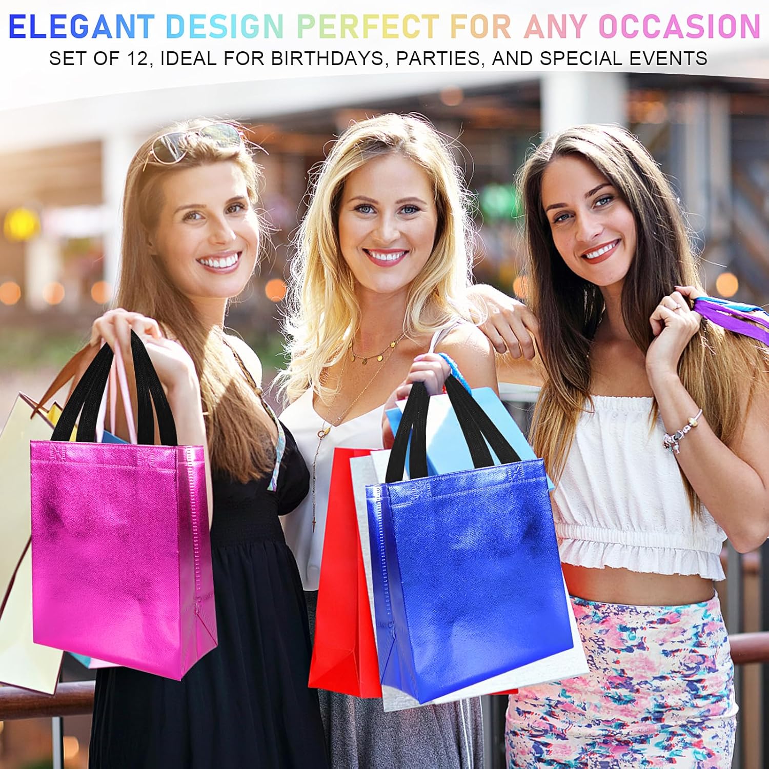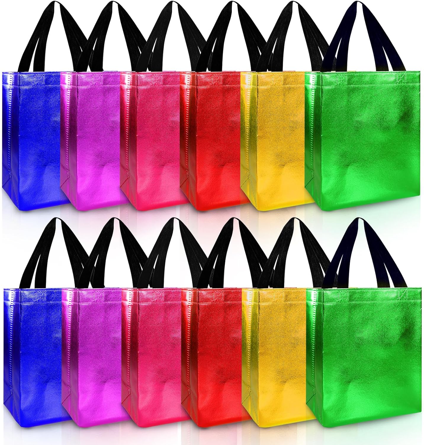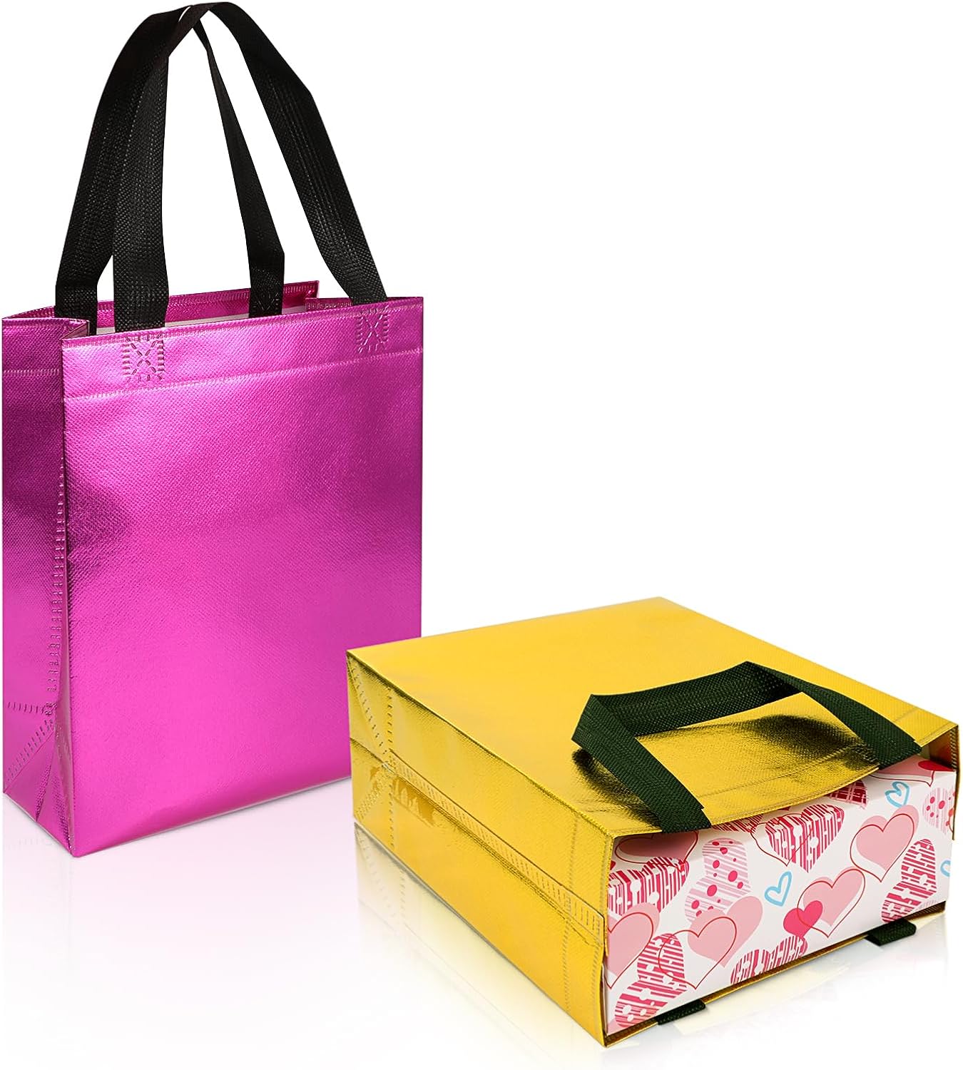 FINITURA METALLICA PREMIUM: migliora la tua esperienza di regalo con i nostri sacchetti regalo metallici, realizzati con una straordinaria finitura metallica che trasuda lusso e glamour. Che si tratti di un compleanno, di un matrimonio, di un baby shower o anche di sacchetti regalo di Natale, queste **carte regalo di compleanno di medie dimensioni** faranno risplendere la tua celebrazione. SPAZIOSE E VERSATILI: Misurando 8 Lx4 L x 10 A pollici, le nostre borse da festa riutilizzabili offrono spazio sufficiente per regali, bomboniere, dolcetti e gadget. Perfetti per varie occasioni, dalle riunioni intime alle grandi feste, questi sacchetti regalo sono una scelta versatile per qualsiasi evento, compreso l'uso come sacchetti per feste riutilizzabili, sacchetti regalo per baby shower, sacchetti regalo per matrimoni o sacchetti per addio al nubilato. MANIGLIE COMODE PER UN FACILE TRASPORTO: Progettate con maniglie robuste, le nostre borse regalo di compleanno garantiscono un facile trasporto e consentono agli ospiti di trasportare regali e dolcetti senza sforzo. Di' addio al fastidio di destreggiarsi tra più oggetti: i nostri sacchetti regalo multipack rendono il trasporto un gioco da ragazzi. VIBRANTE MIX DI COLORI: aggiungi un tocco di entusiasmo alle decorazioni della tua festa con il nostro mix di colori vivaci tra cui viola, rosa, blu, oro, verde e rosso. Sia che tu voglia coordinare un tema specifico o semplicemente aggiungere un tocco di colore, questi sacchetti regalo riutilizzabili completeranno qualsiasi decorazione della festa e sono perfetti come sacchetti regalo per feste in discoteca. ECOLOGICI E RIUTILIZZABILI: Realizzati in tessuto non tessuto di alta qualità, i nostri sacchetti regalo non sono solo durevoli ma anche rispettosi dell'ambiente. Riduci gli sprechi riutilizzando questo sacchetto regalo di compleanno per eventi futuri o riciclandolo in modo responsabile quando non è più necessario. Unisciti a noi e dai un contributo positivo all'ambiente festeggiando con stile con le nostre grandi borse regalo.