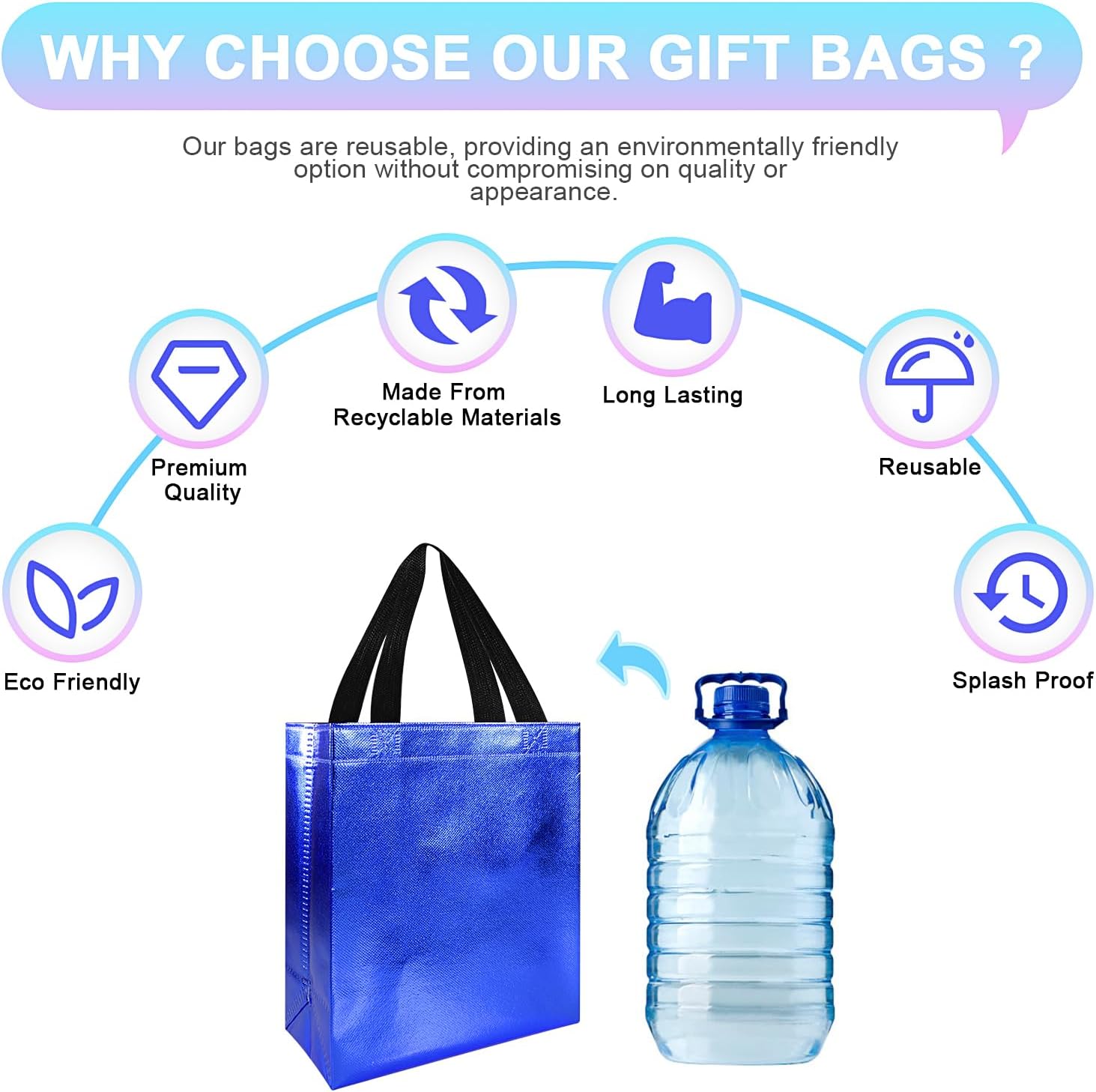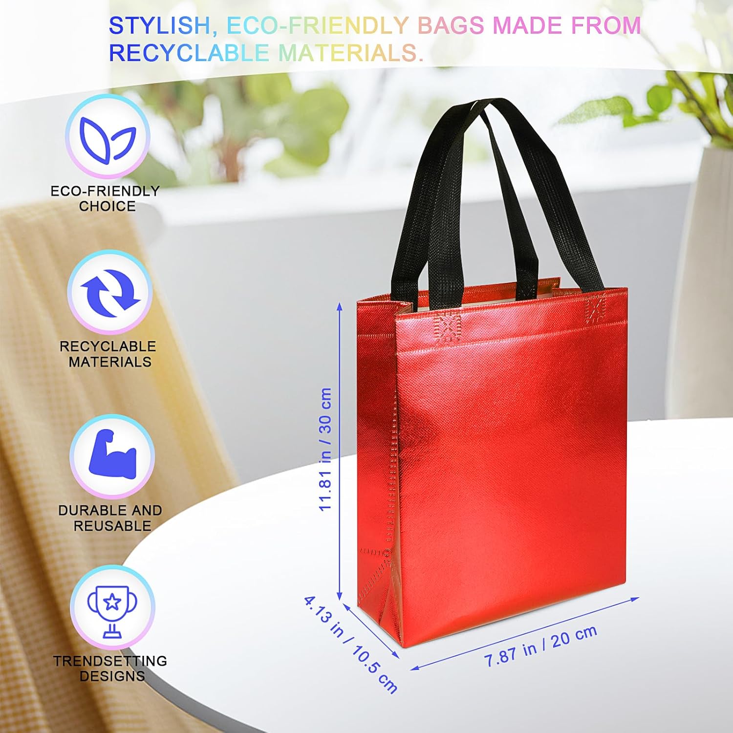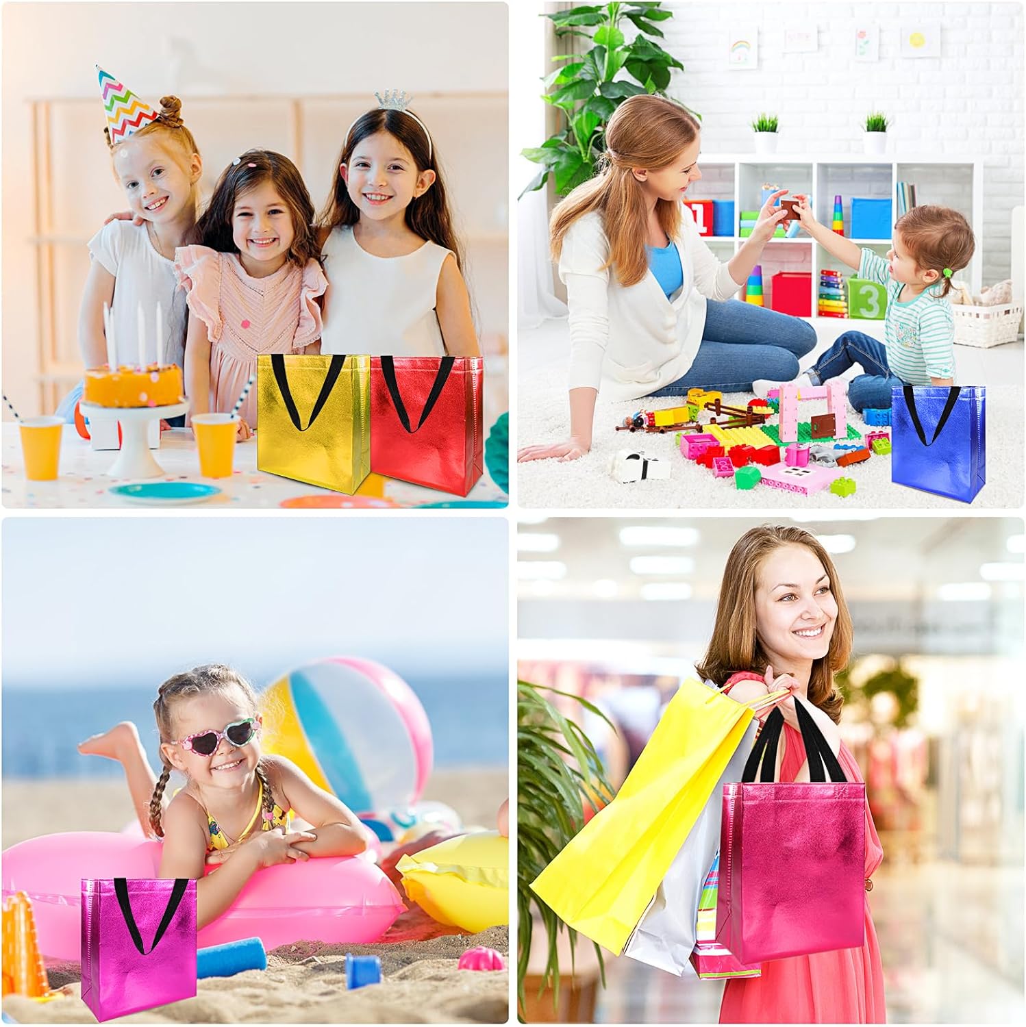 FINITURA METALLICA PREMIUM: migliora la tua esperienza di regalo con i nostri sacchetti regalo metallici, realizzati con una straordinaria finitura metallica che trasuda lusso e glamour. Che si tratti di un compleanno, di un matrimonio, di un baby shower o anche di sacchetti regalo di Natale, queste **carte regalo di compleanno di medie dimensioni** faranno risplendere la tua celebrazione. SPAZIOSE E VERSATILI: Misurando 8 Lx4 L x 10 A pollici, le nostre borse da festa riutilizzabili offrono spazio sufficiente per regali, bomboniere, dolcetti e gadget. Perfetti per varie occasioni, dalle riunioni intime alle grandi feste, questi sacchetti regalo sono una scelta versatile per qualsiasi evento, compreso l'uso come sacchetti per feste riutilizzabili, sacchetti regalo per baby shower, sacchetti regalo per matrimoni o sacchetti per addio al nubilato. MANIGLIE COMODE PER UN FACILE TRASPORTO: Progettate con maniglie robuste, le nostre borse regalo di compleanno garantiscono un facile trasporto e consentono agli ospiti di trasportare regali e dolcetti senza sforzo. Di' addio al fastidio di destreggiarsi tra più oggetti: i nostri sacchetti regalo multipack rendono il trasporto un gioco da ragazzi. VIBRANTE MIX DI COLORI: aggiungi un tocco di entusiasmo alle decorazioni della tua festa con il nostro mix di colori vivaci tra cui viola, rosa, blu, oro, verde e rosso. Sia che tu voglia coordinare un tema specifico o semplicemente aggiungere un tocco di colore, questi sacchetti regalo riutilizzabili completeranno qualsiasi decorazione della festa e sono perfetti come sacchetti regalo per feste in discoteca. ECOLOGICI E RIUTILIZZABILI: Realizzati in tessuto non tessuto di alta qualità, i nostri sacchetti regalo non sono solo durevoli ma anche rispettosi dell'ambiente. Riduci gli sprechi riutilizzando questo sacchetto regalo di compleanno per eventi futuri o riciclandolo in modo responsabile quando non è più necessario. Unisciti a noi e dai un contributo positivo all'ambiente festeggiando con stile con le nostre grandi borse regalo.