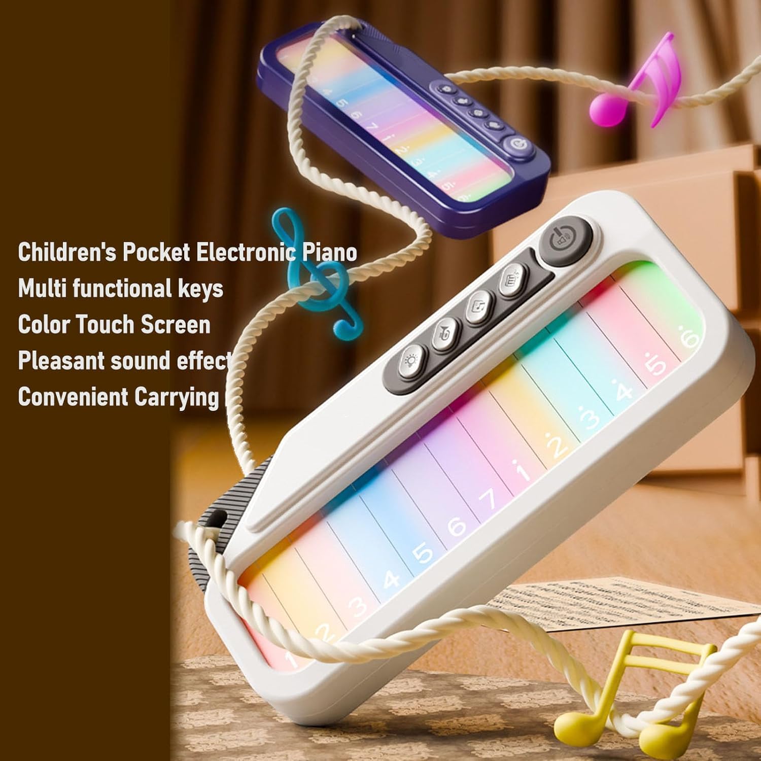 [Piano touchscreen interattivo] Key di illuminazione coinvolgenti con feedback sonori per il gioco di gioco precoce. [Strumento di educazione alla musica per principianti] La tastiera a 8 note introduce concetti ritmici ai bambini di età compresa tra 1-3. [Design portatile ricaricabile] Batteria da 700 mAh integrata per seggiolino auto o intrattenimento per passeggini. [Sviluppo di abilità multi-sensoriale] Luci visive, chiavi tattili e segnali uditivi migliorano il riconoscimento cognitivo. [Kit di avviamento completo] Include 3 batterie AAA con base non slittata per la configurazione immediata in asilo nido o camera da letto.