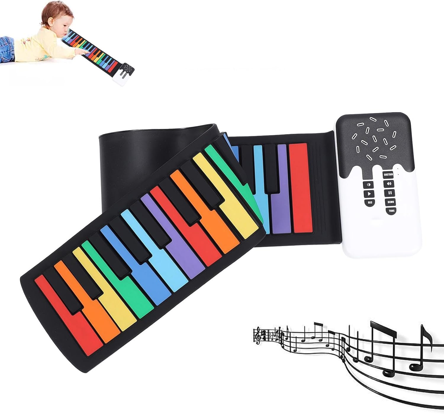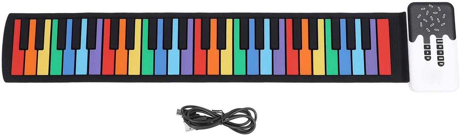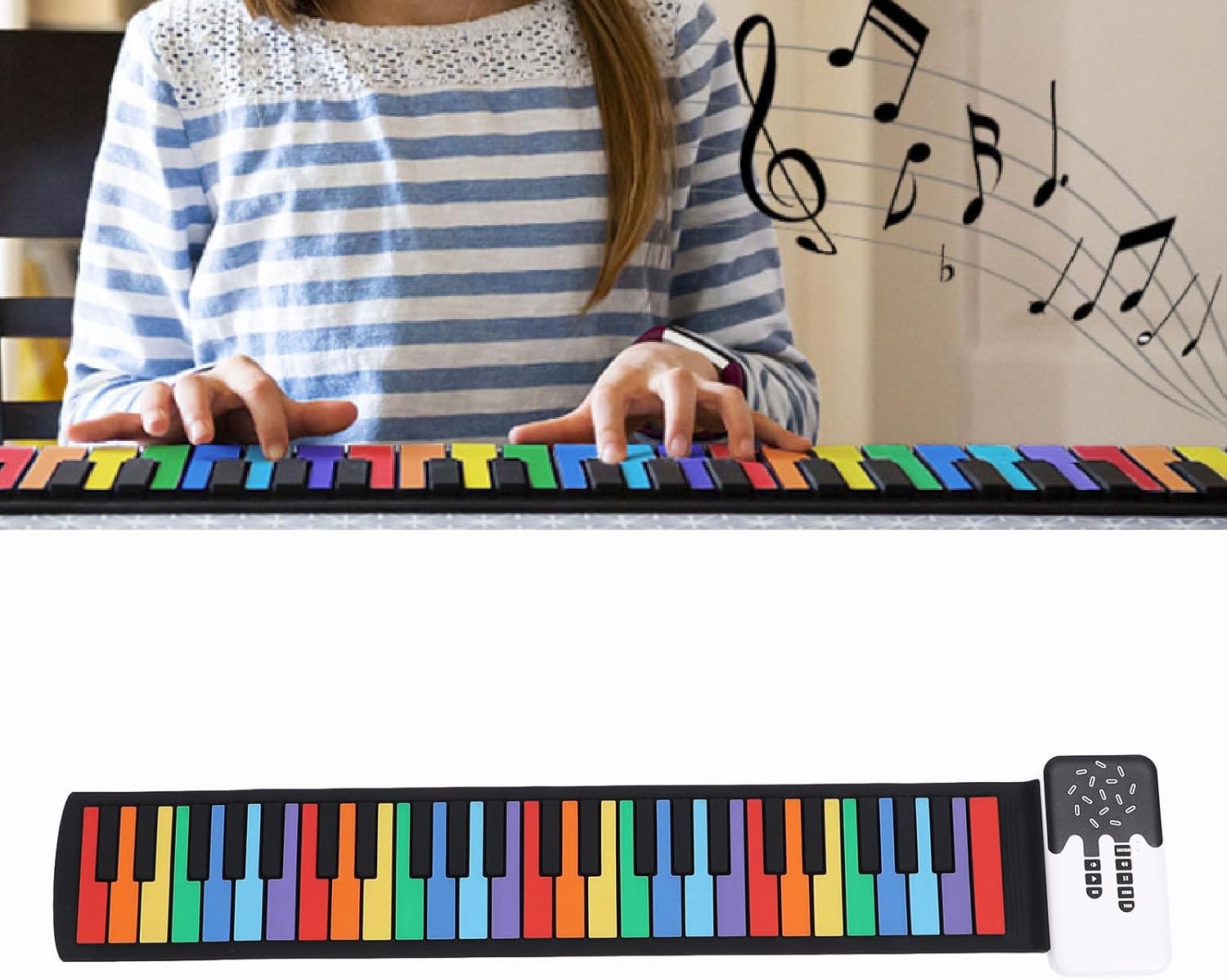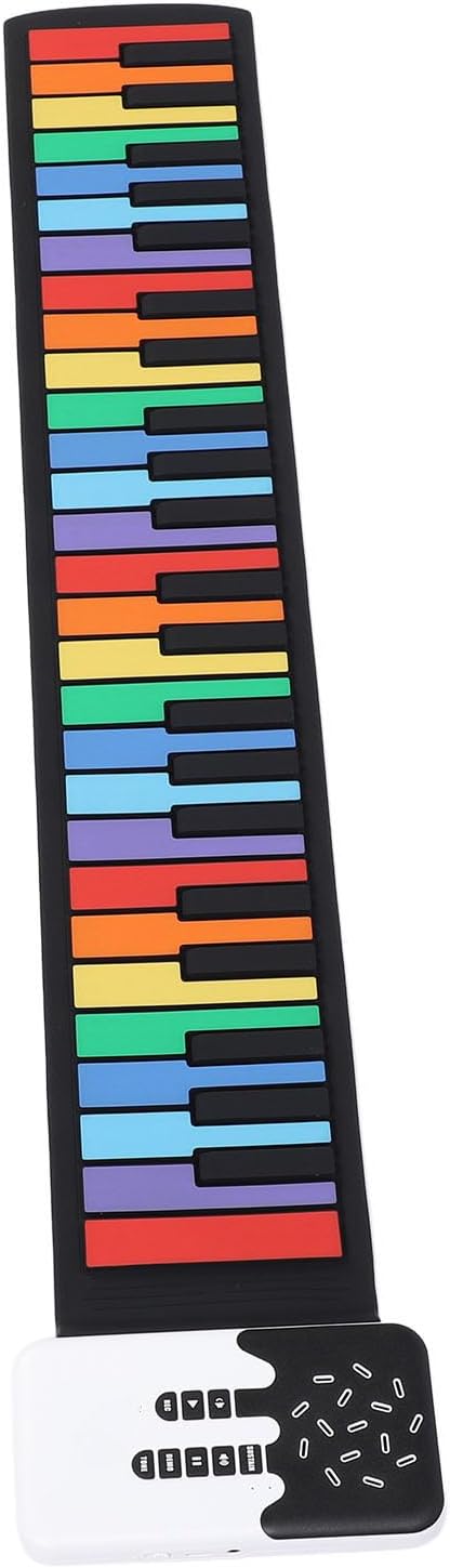 【Design ricaricabile】: viene fornito con batteria ricaricabile da 360 mAh, potenza di uscita di 500 mW. Ideale per principianti e appassionati, porta questo tappetino con te ovunque, anche quando esci all'aperto, puoi suonare sempre e ovunque. 【Tasti del pianoforte colorati】: tastiera del pianoforte pieghevole a 49 tasti con tasti standard colorati, presenta una tastiera simulata con un forte rimbalzo. Con tasti di scelta rapida funzionali per una facile regolazione del ritmo e modalità di sospensione incorporata. 【 e portatile】: realizzato con materiale siliconico , design robusto e resistente all'acqua, leggero e compatto, questo pianoforte avvolgibile può essere arrotolato per un facile trasporto e stoccaggio. 【Connettività versatile】: può essere collegato ad auricolari e altoparlanti esterni, rendendolo adatto a vari ambienti di gioco. Il morbido cuscinetto per pianoforte è flessibile, si srotola facilmente mentre suoni e lo arrotoli e lo riponi nello zaino dopo aver finito di suonare. 【Opzioni audio avanzate】: 8 toni e 6 brani dimostrativi per imparare e ascoltare la musica classica, con un suono chiaro e nitido 'altoparlante integrato. 49 tasti standard ti consentono di riprodurre tonnellate di musica senza occupare spazio.