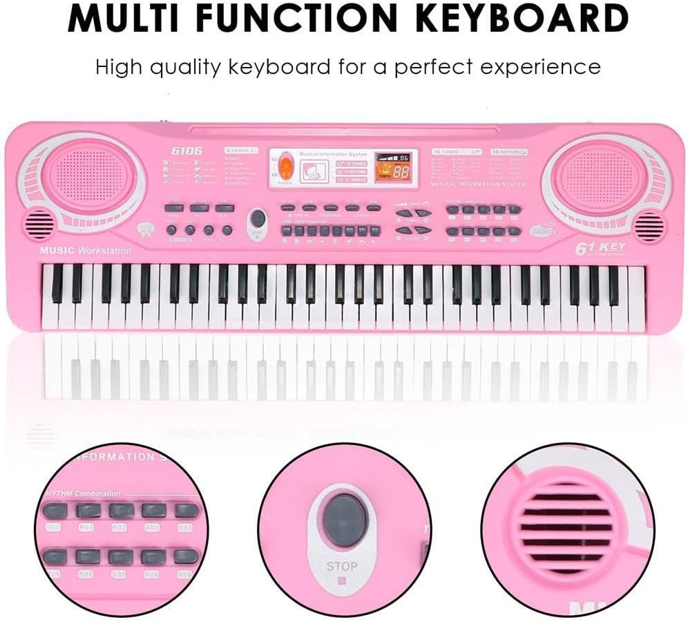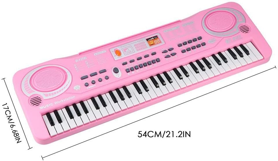 Materiale premium: è realizzato in plastica ABS e componenti elettronici con un totale di 61 tasti, resistenti e robusti Con microfono: la tastiera digitale è dotata di un microfono ad fedeltà, così i bambini possono cantare mentre giocano Educativo: il pianoforte può coltivare i talenti musicali dei bambini, sviluppare le loro capacità musicali, capacità uditive e abilità pratiche Multifunzionale: il pianoforte è dotato di un'eccellente funzione di 16 tipi di legname, 8 tipi di registrazione di strumenti a percussione, 10 tipi di , 6 demo e la regolazione di battiti e volume Regalo perfetto: questo giocattolo carino e divertente è molto adatto come regalo di compleanno o regalo di festa per i bambini, lo adoreranno